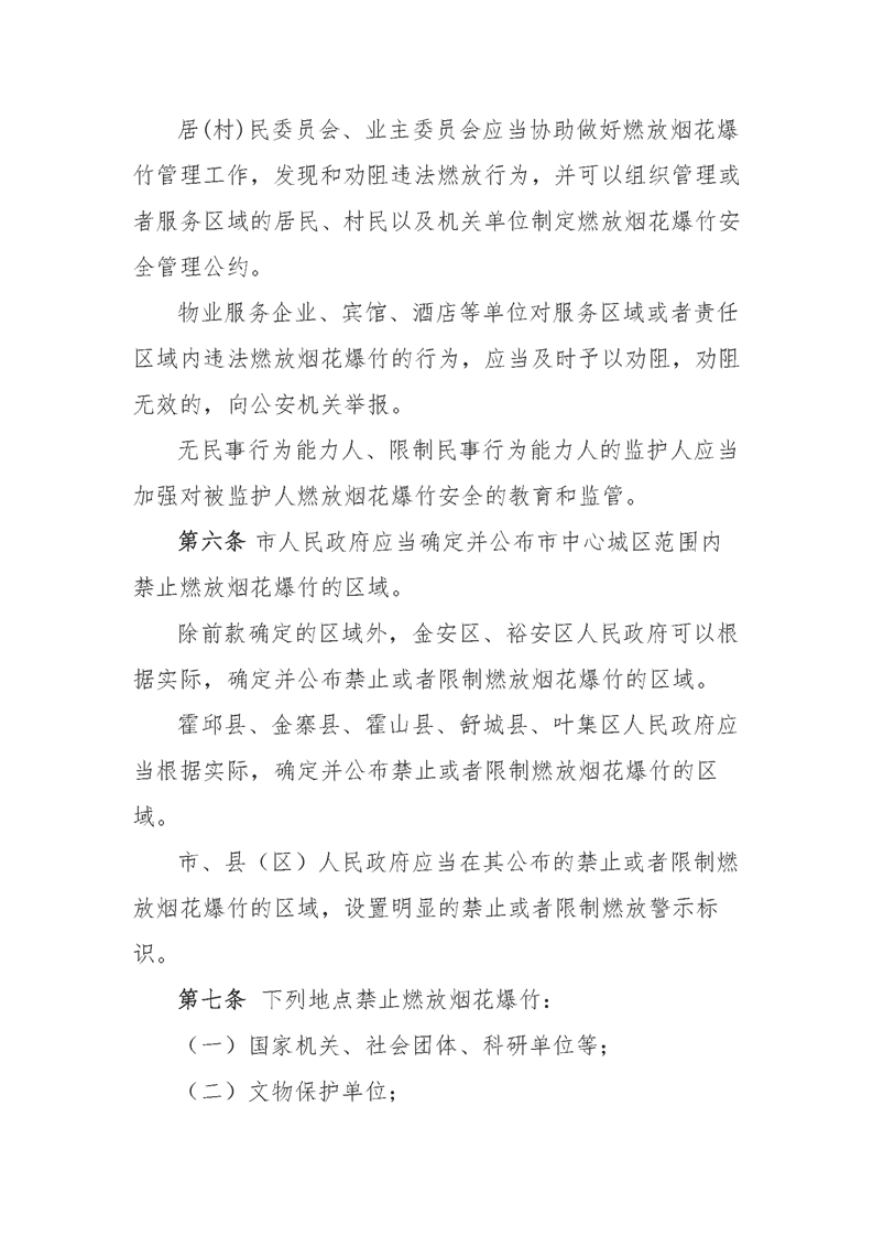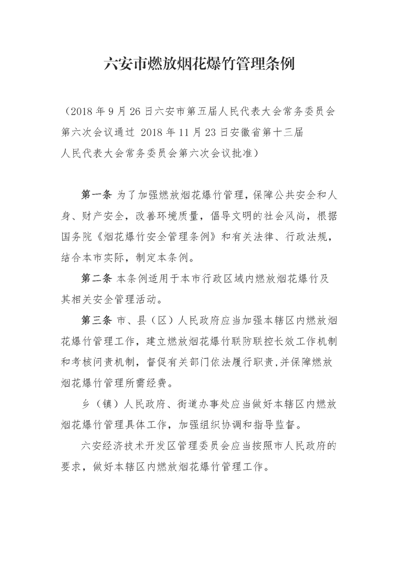 【地方性法规】六安市燃放烟花爆竹管理条例