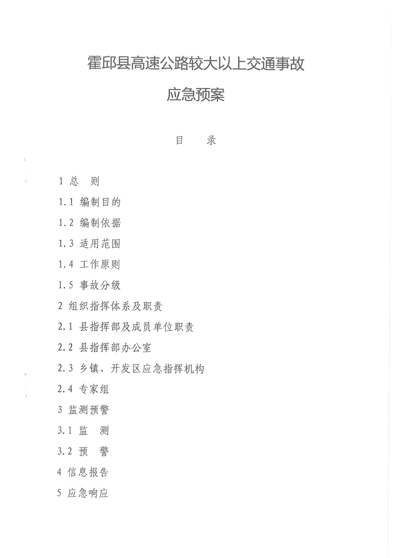 【事故灾难类】霍邱县高速公路较大以上交通事故应急预案