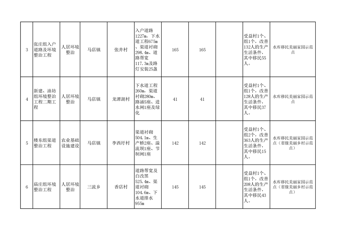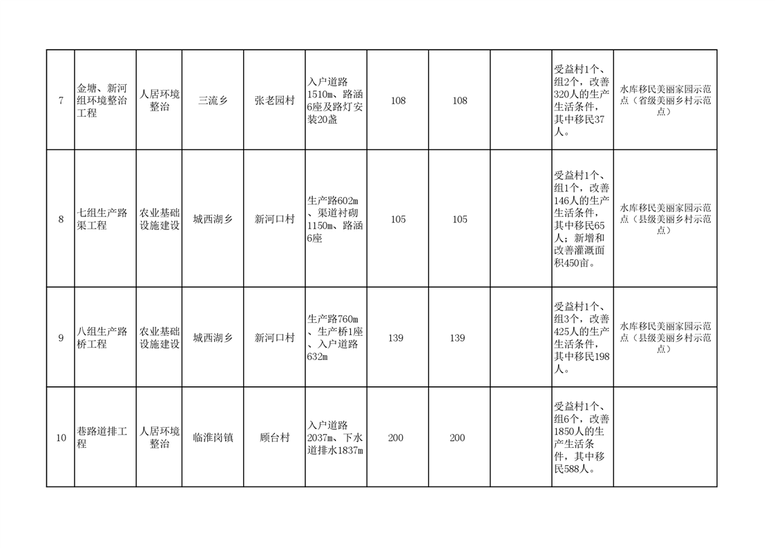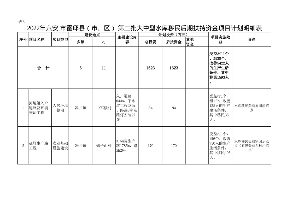 2022年六安 市霍邱县(市、区) 第二批大中型水库移民后期扶持资金项目计划明细表