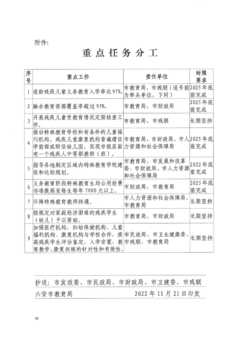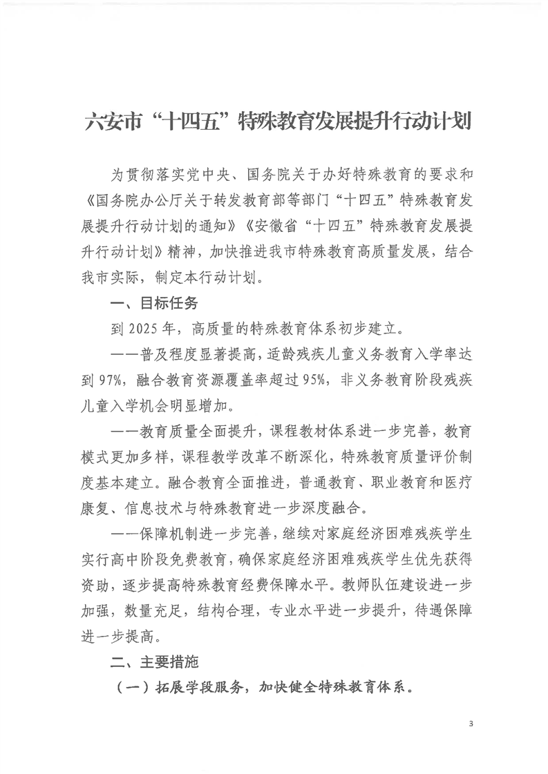 关于印发《六安市“十四五”特殊教育发展提升行动计划》的通知(沿用)