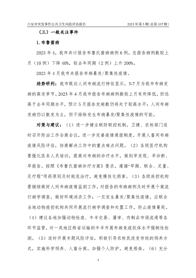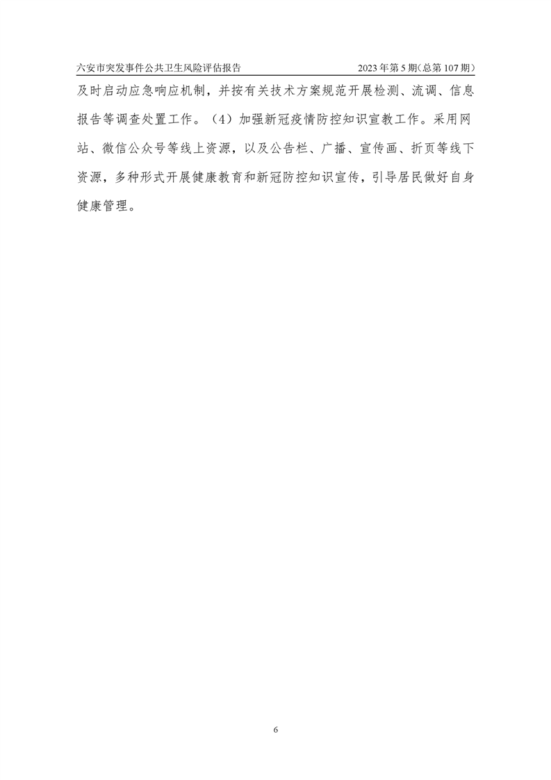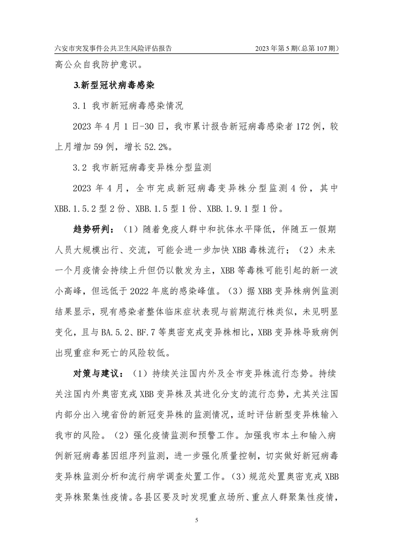 2023年5月份六安市突发公共卫生事件预警信息及对策建议