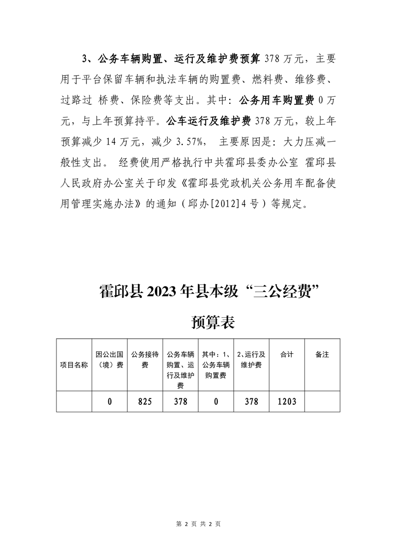 霍邱县2023年县本级一般公共预算“三公”经费预算及增减变化情况