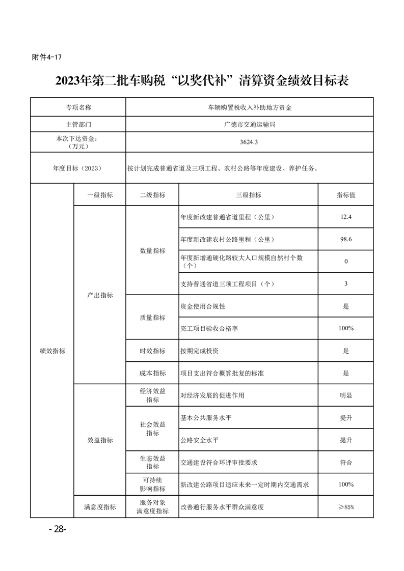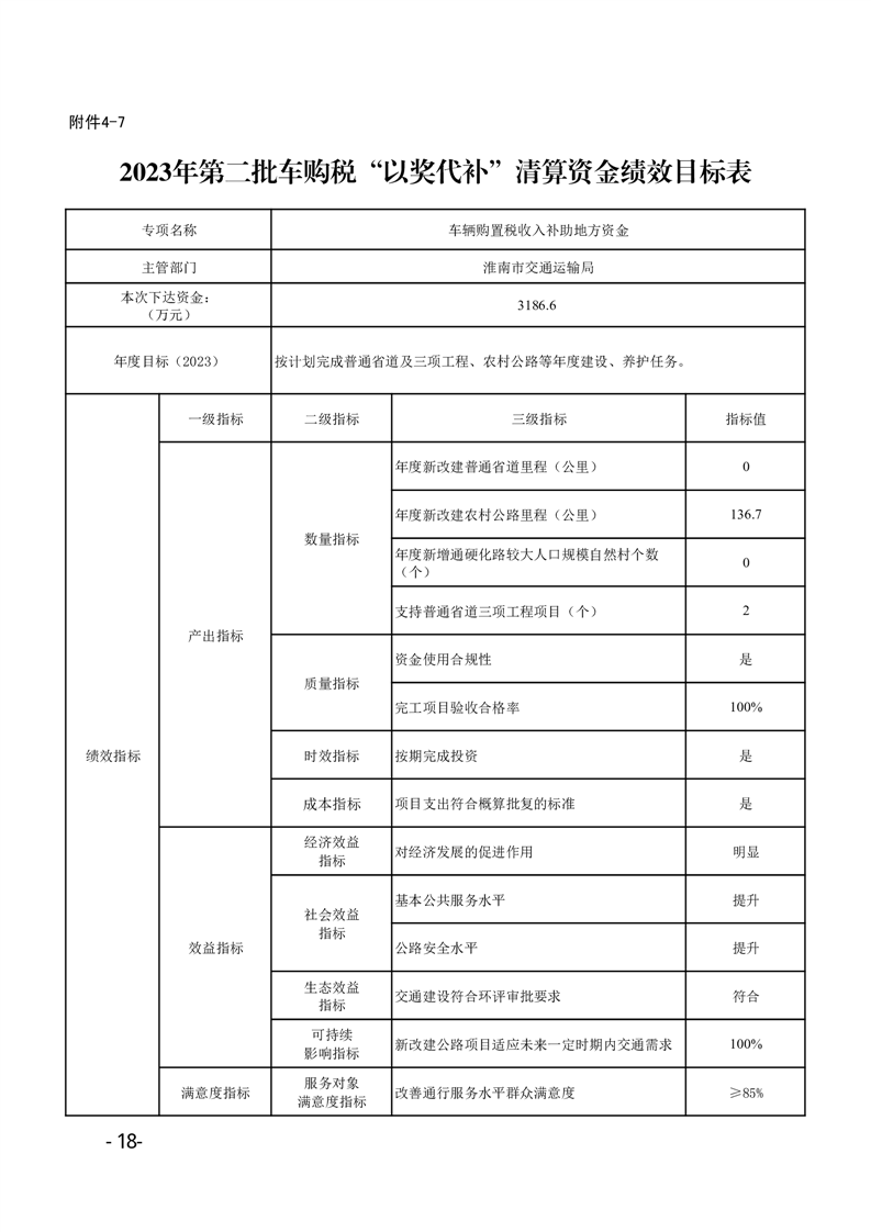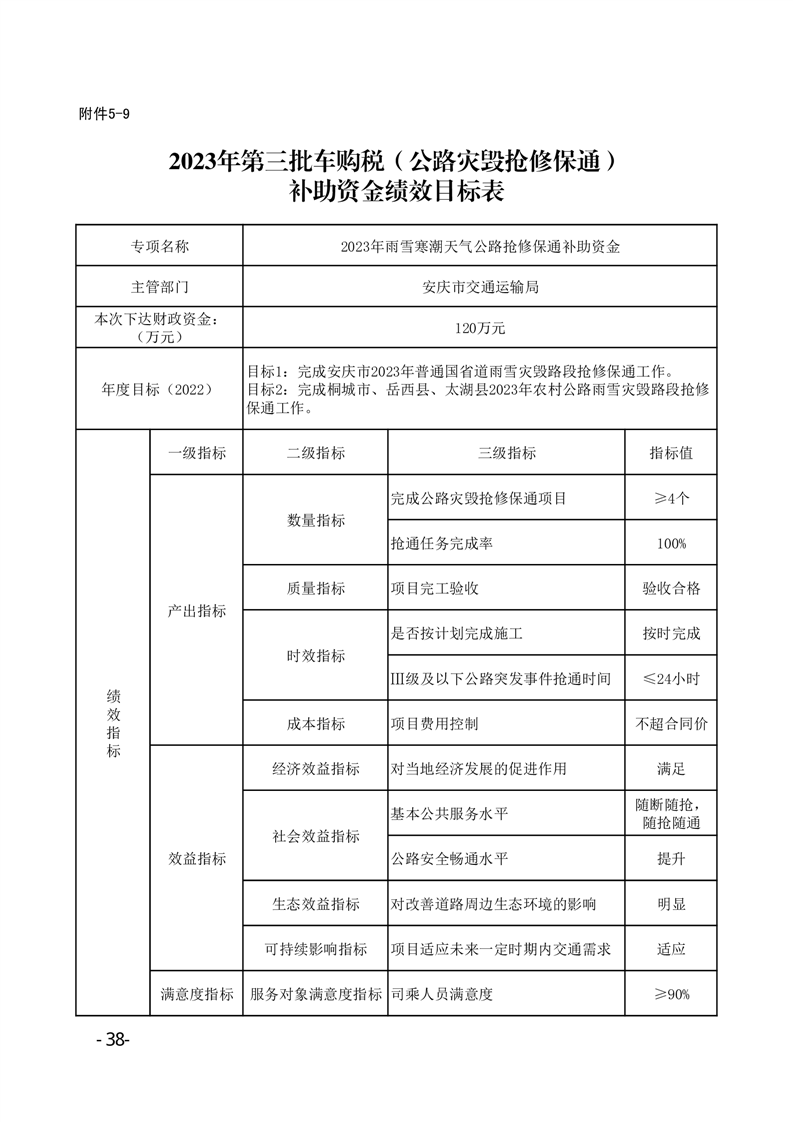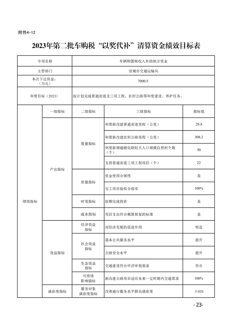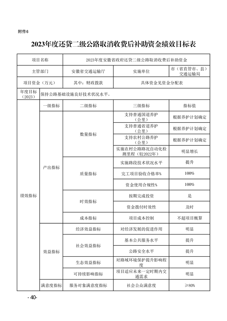 安徽省财政厅安徽省交通运输厅关于下达2023年第二批车购税“以奖代补”清算资金、第三批车购税补助资金和政府还贷二级公路取消收费后补助资金的通知