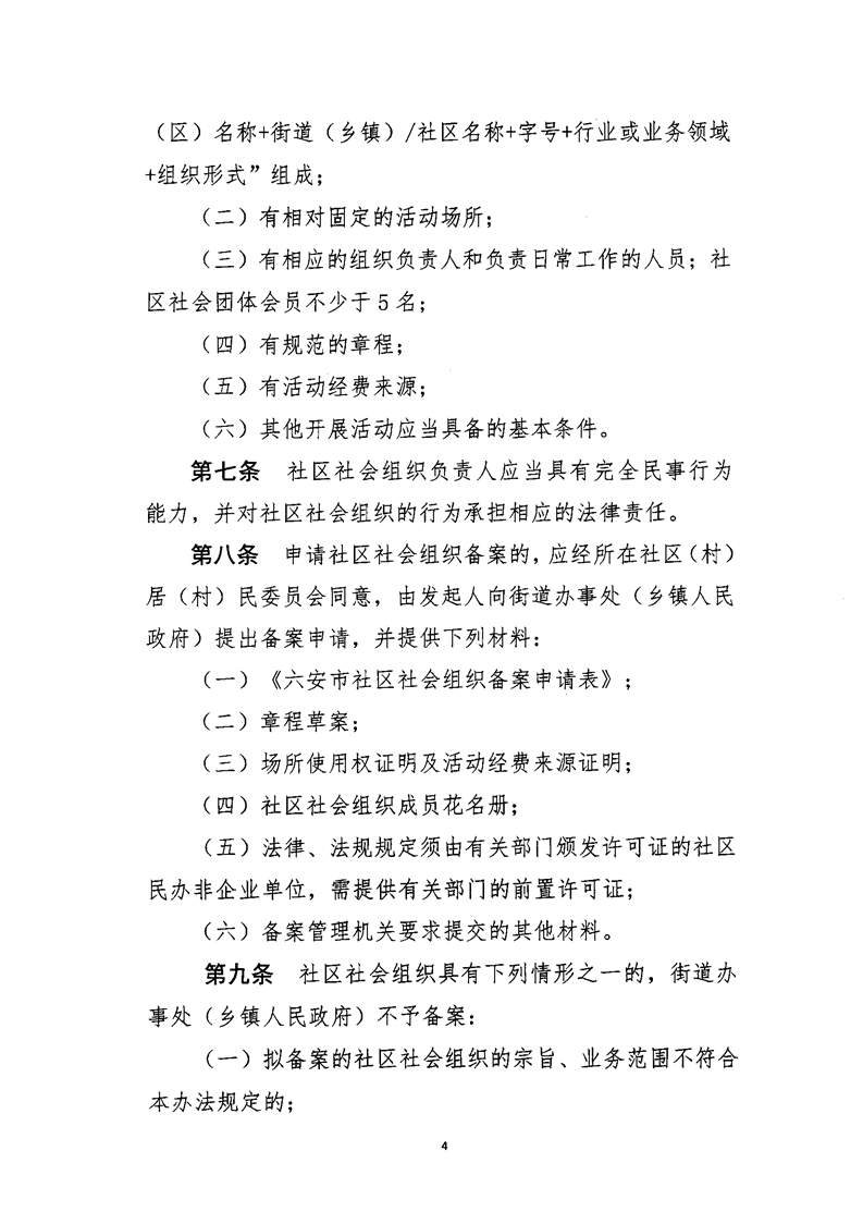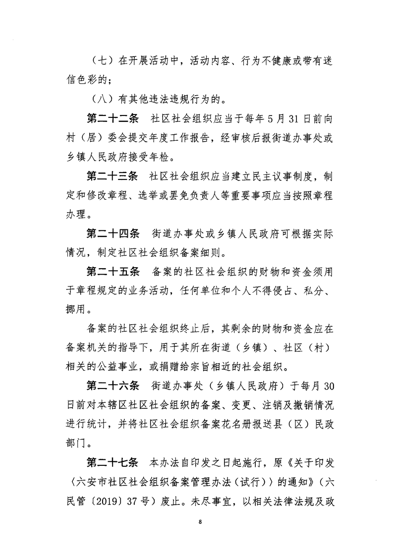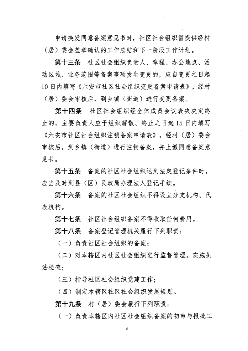 关于印发《六安市社区社会组织备案管理办法》的通知