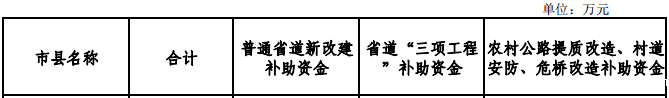 霍邱县2024年车购税“以奖代补”资金(第一批)分配表
