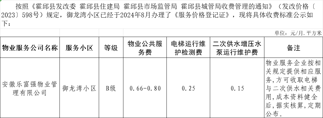 2024年办理《服务价格登记证》物业管理服务收费公示