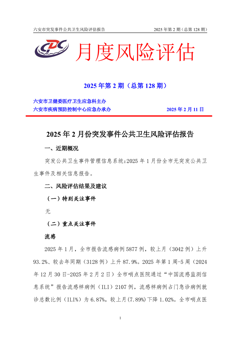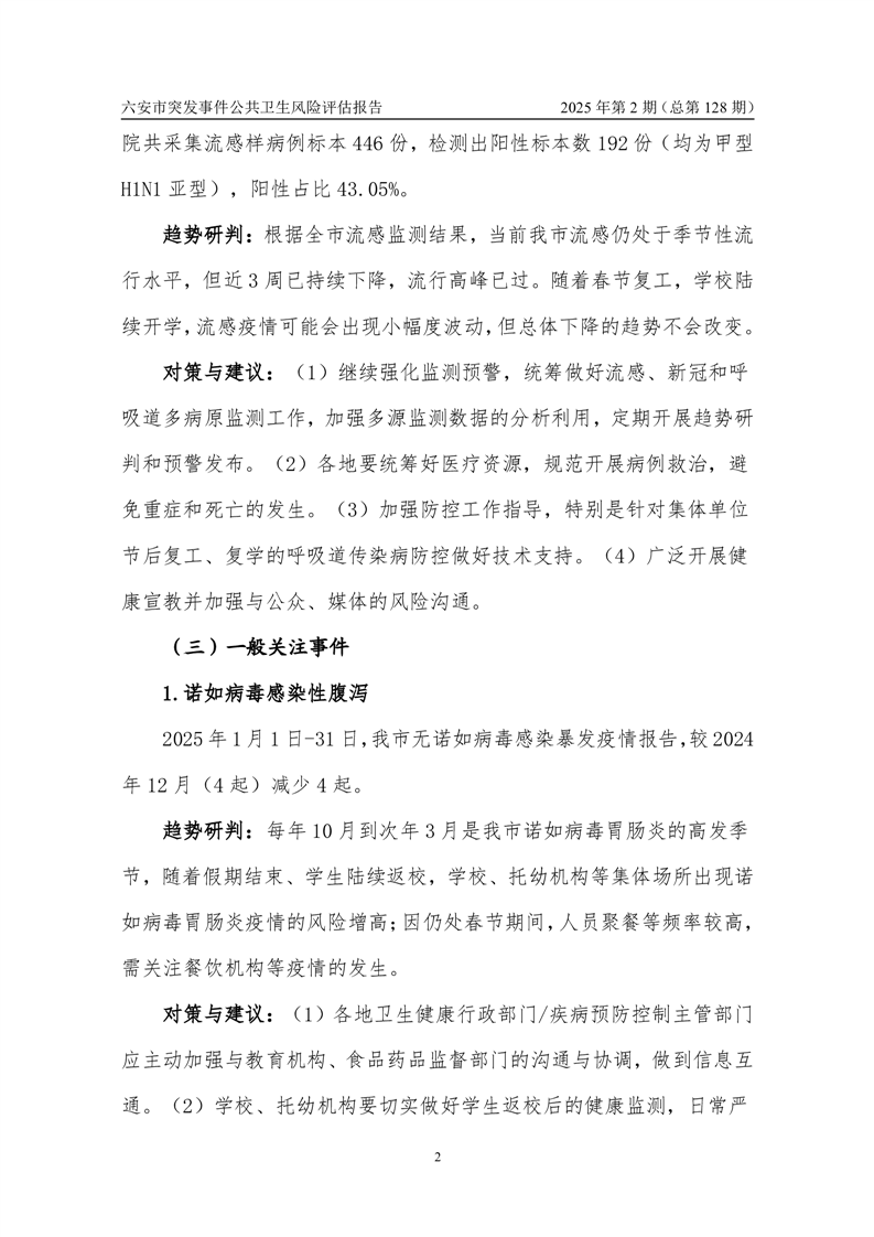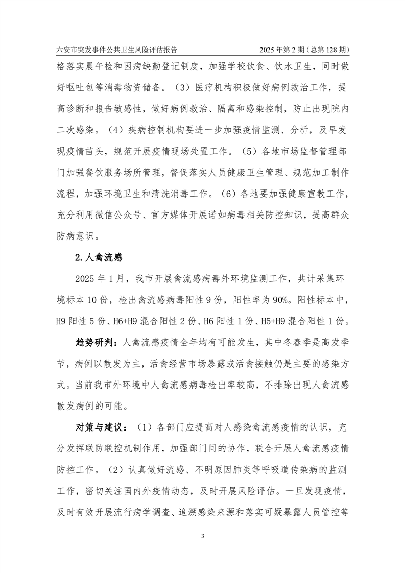 【预警信息】2025年2月份六安市突发公共卫生事件预警信息及对策建议