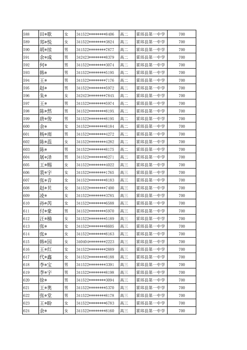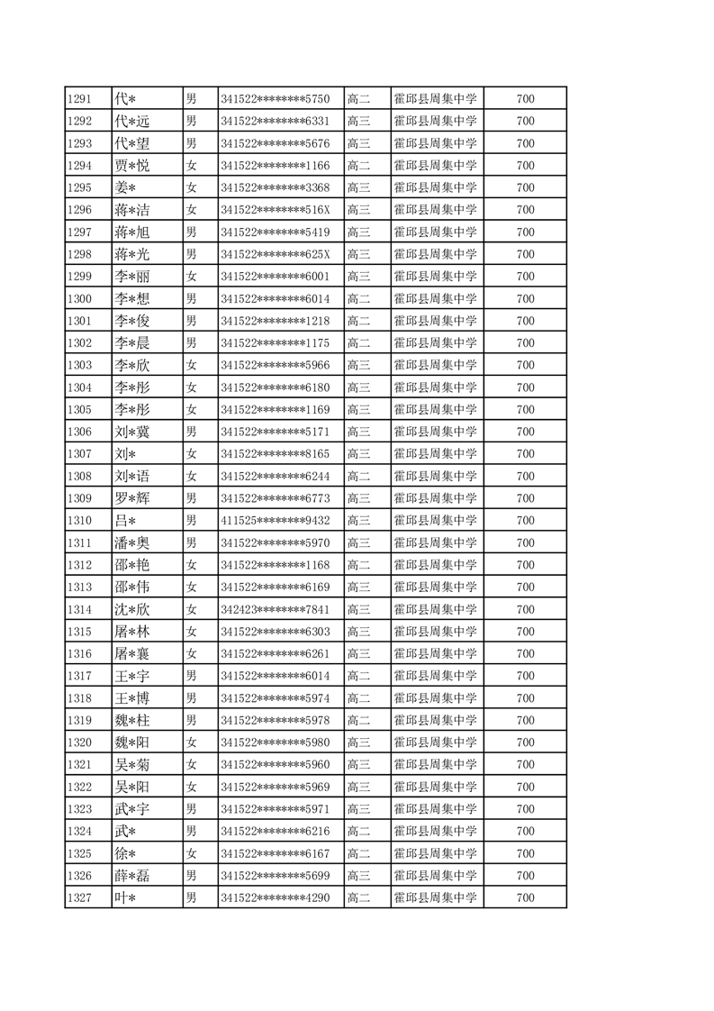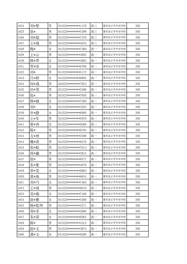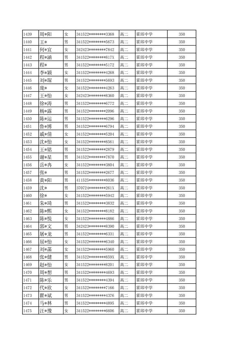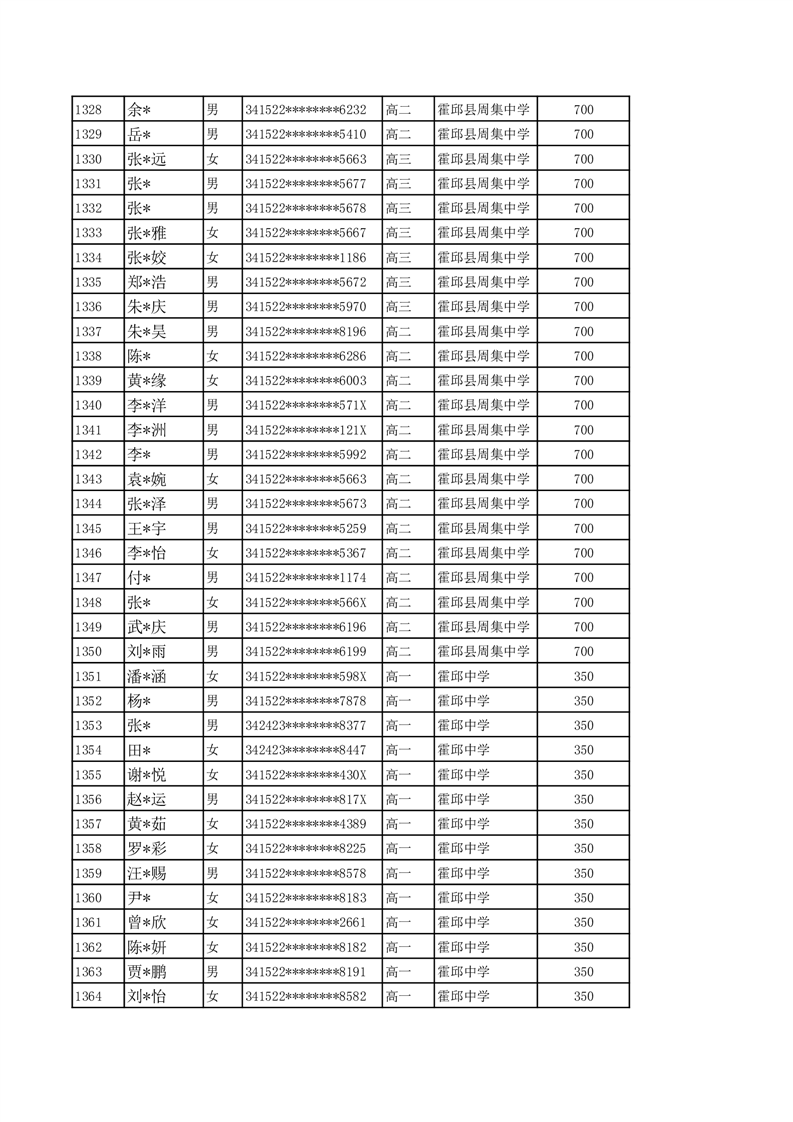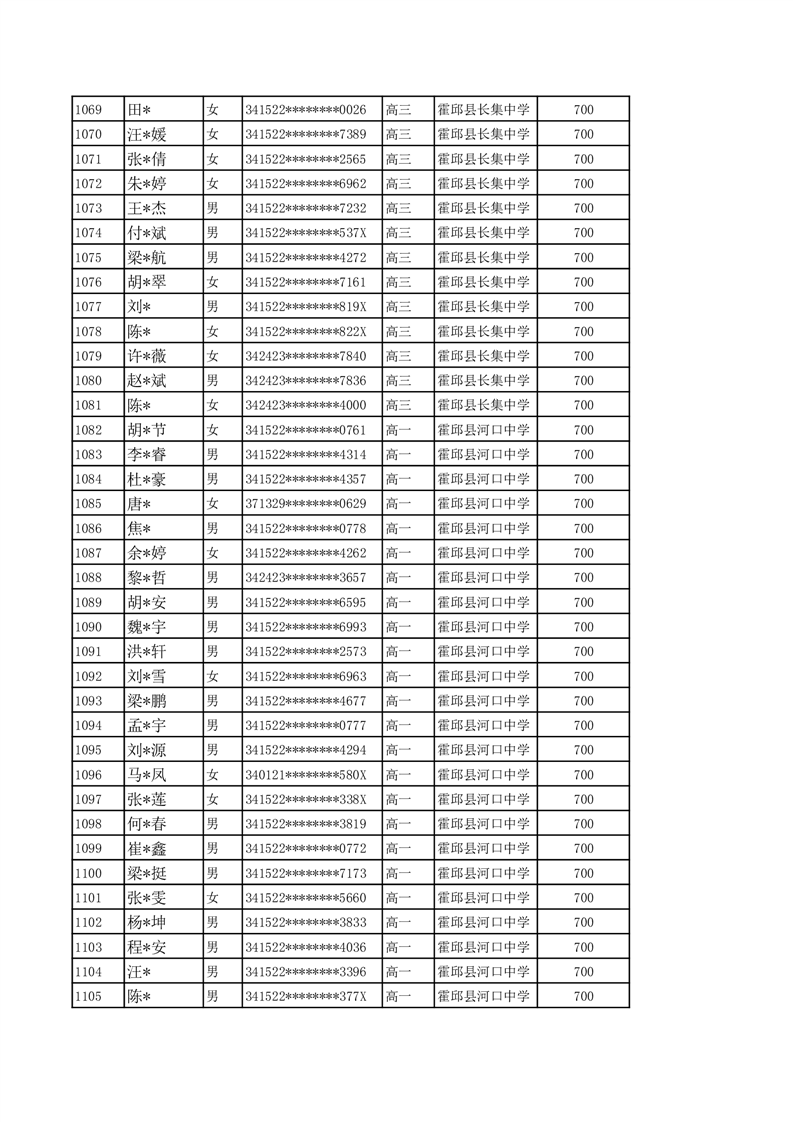 霍邱县2025年秋学期普通高中免学杂费名单公示(1888人)