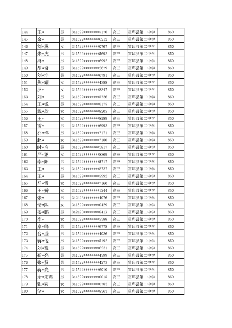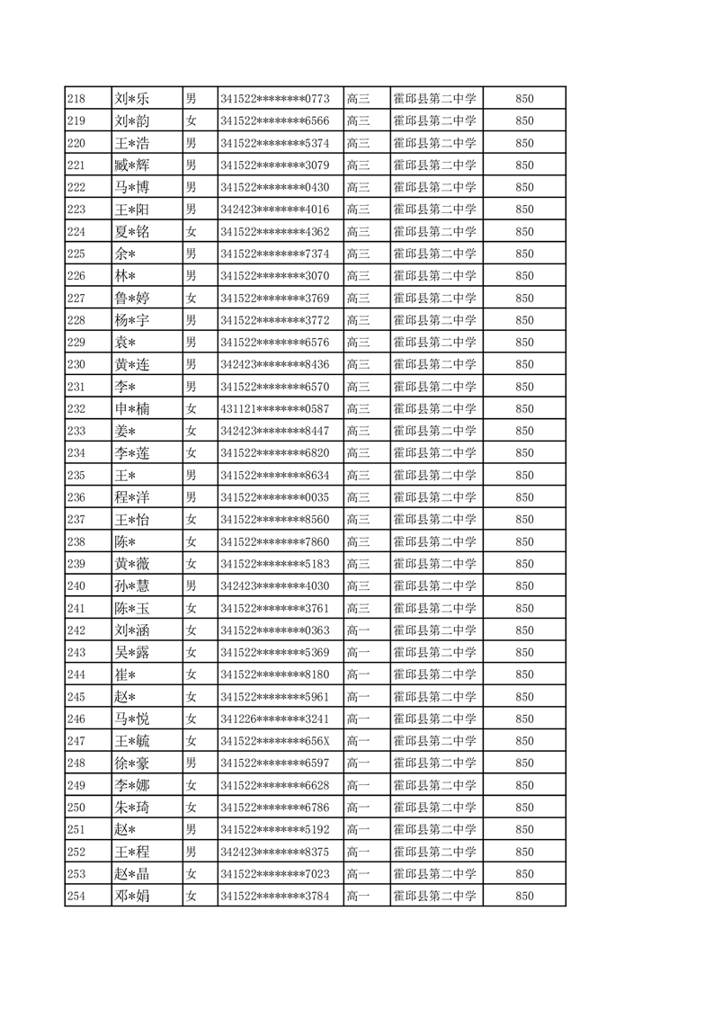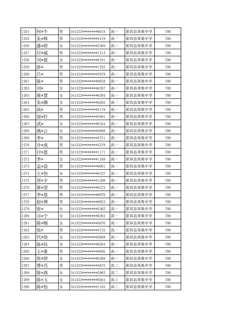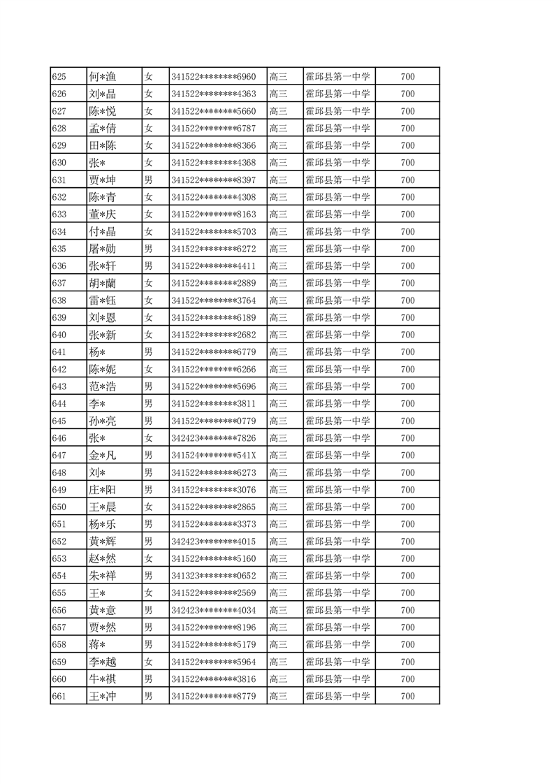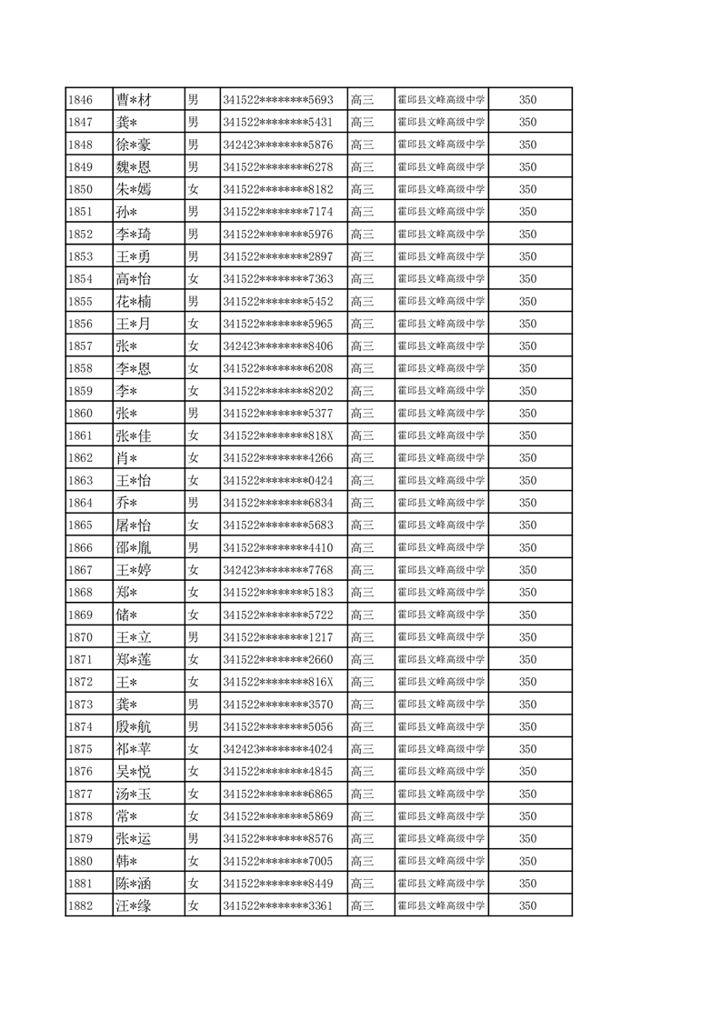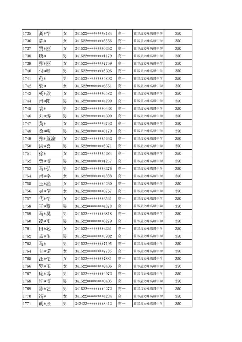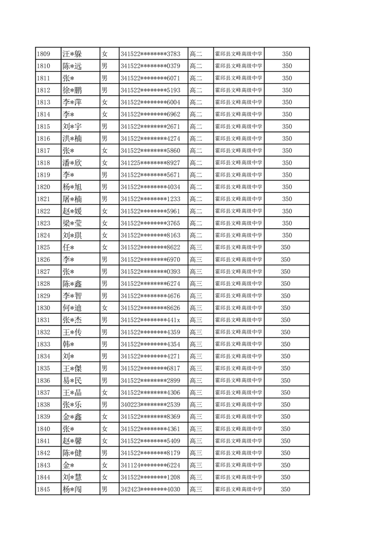 霍邱县2025年秋学期普通高中免学杂费名单公示(1888人)