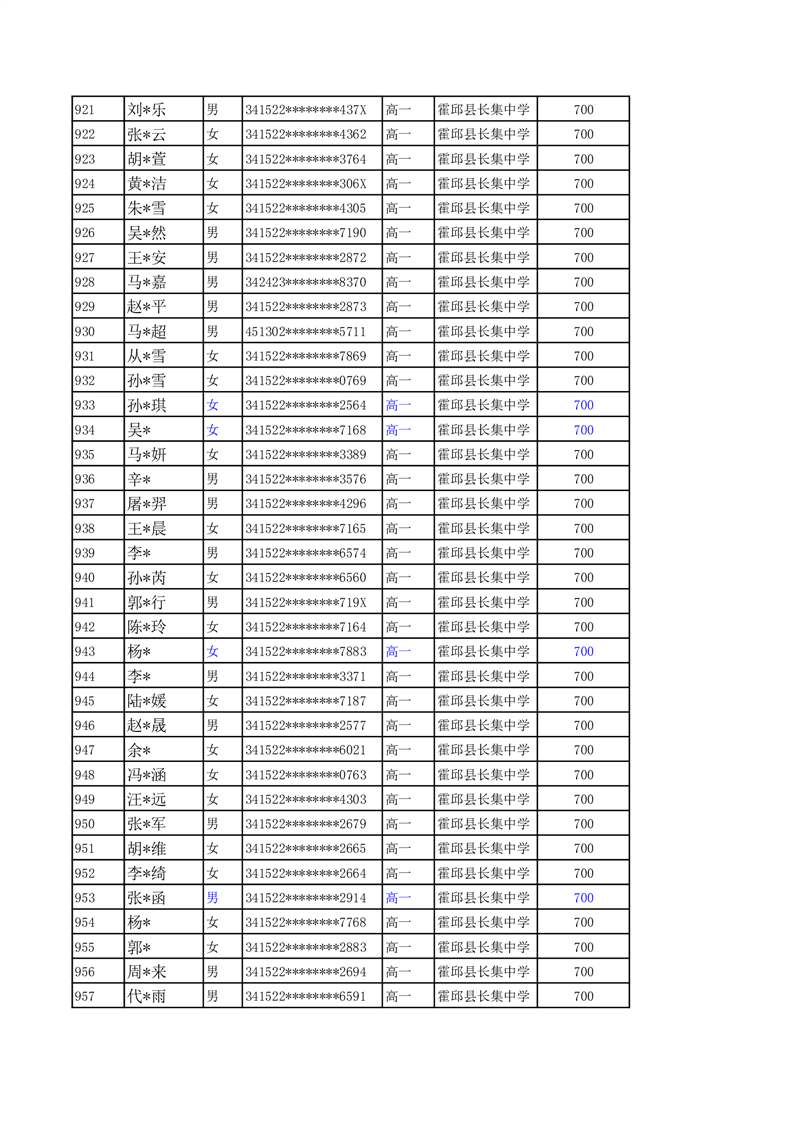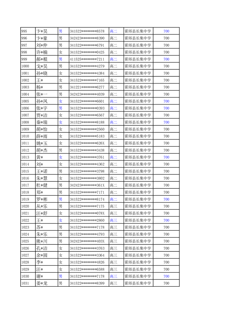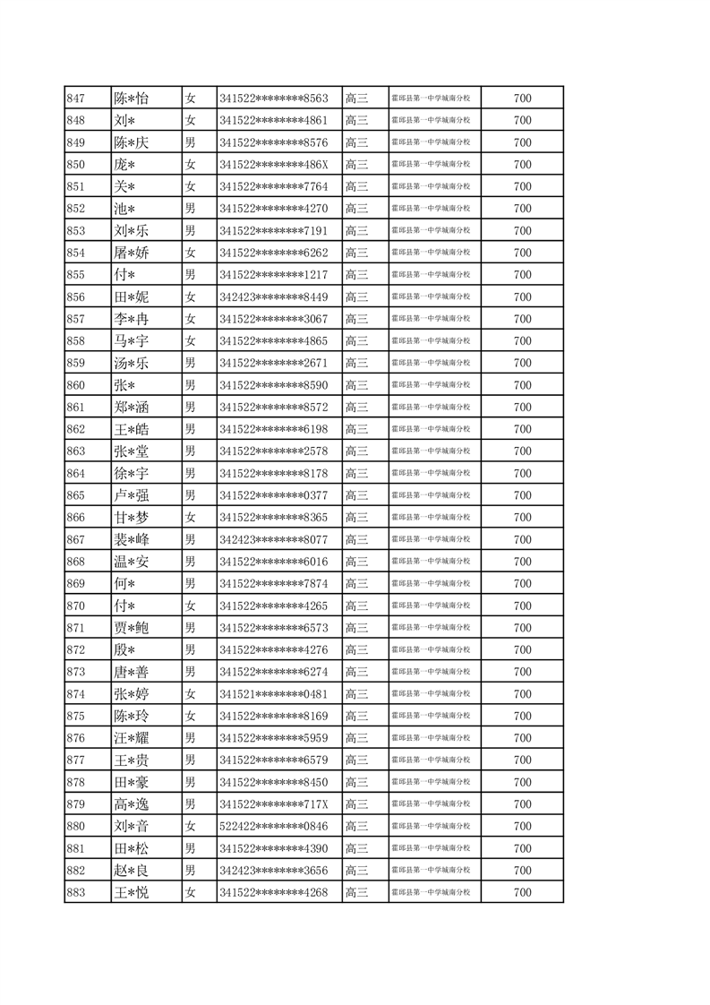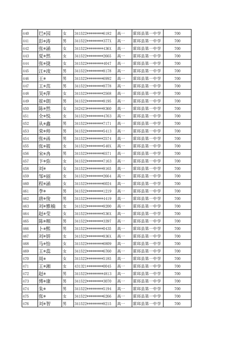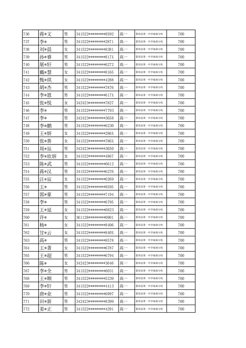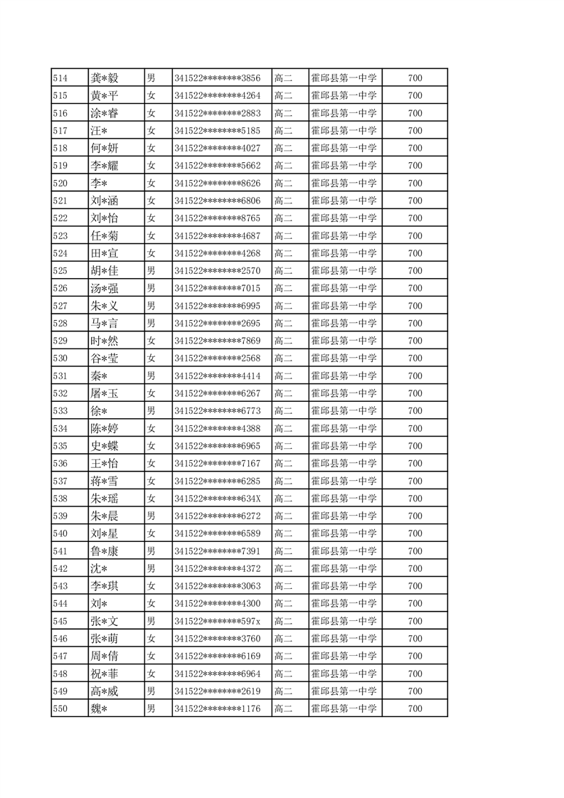 霍邱县2025年秋学期普通高中免学杂费名单公示(1888人)