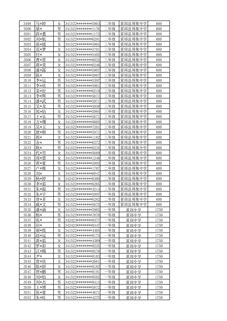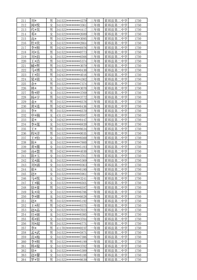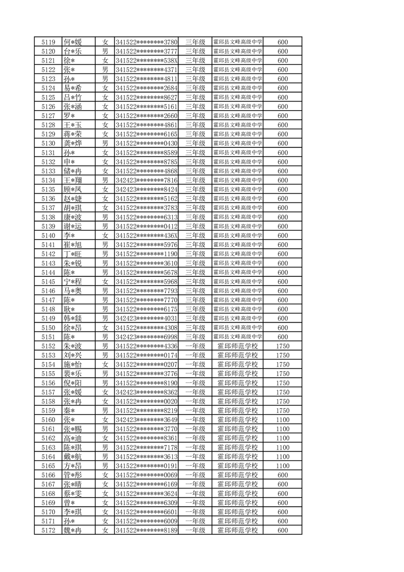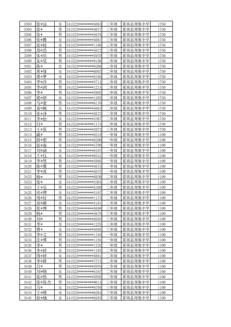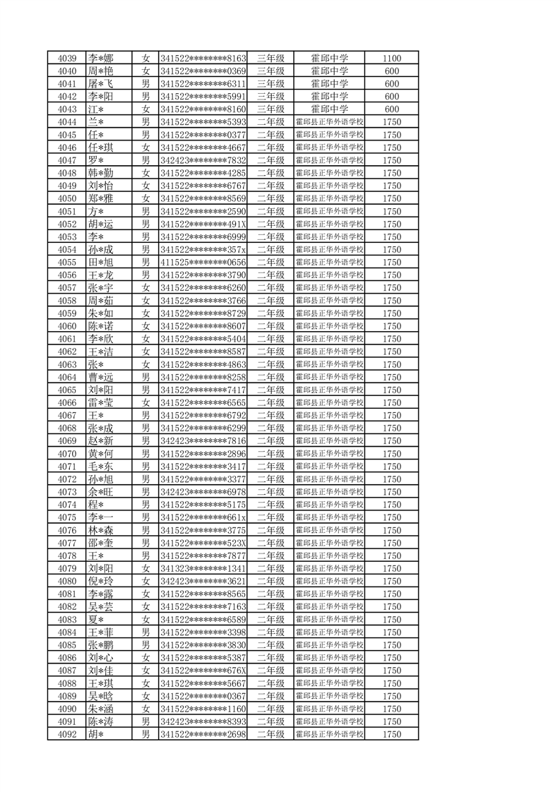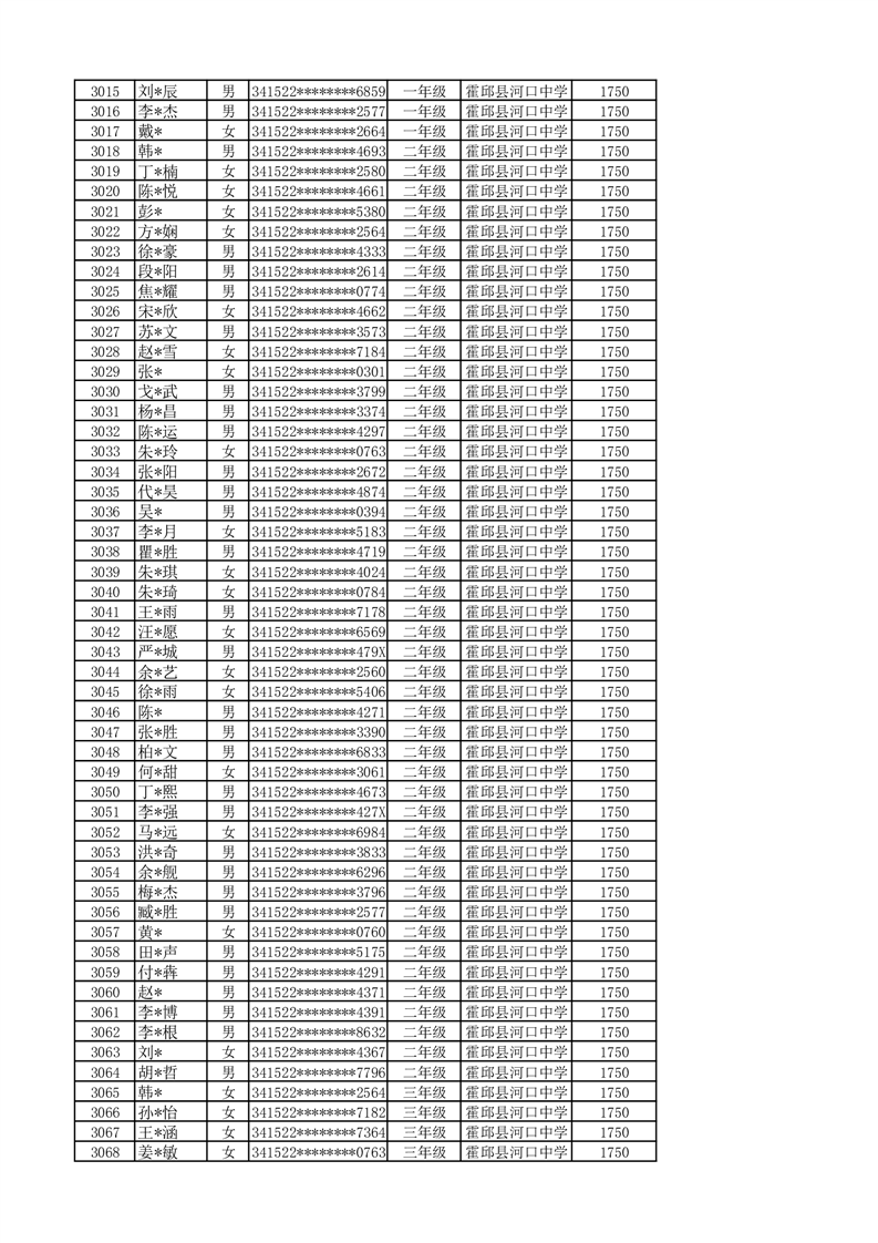 霍邱县2025年秋学期普通高中国家助学金资助名单公示(5177人)