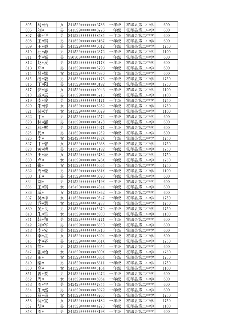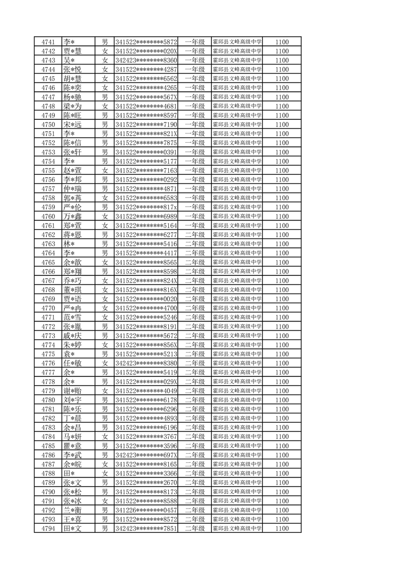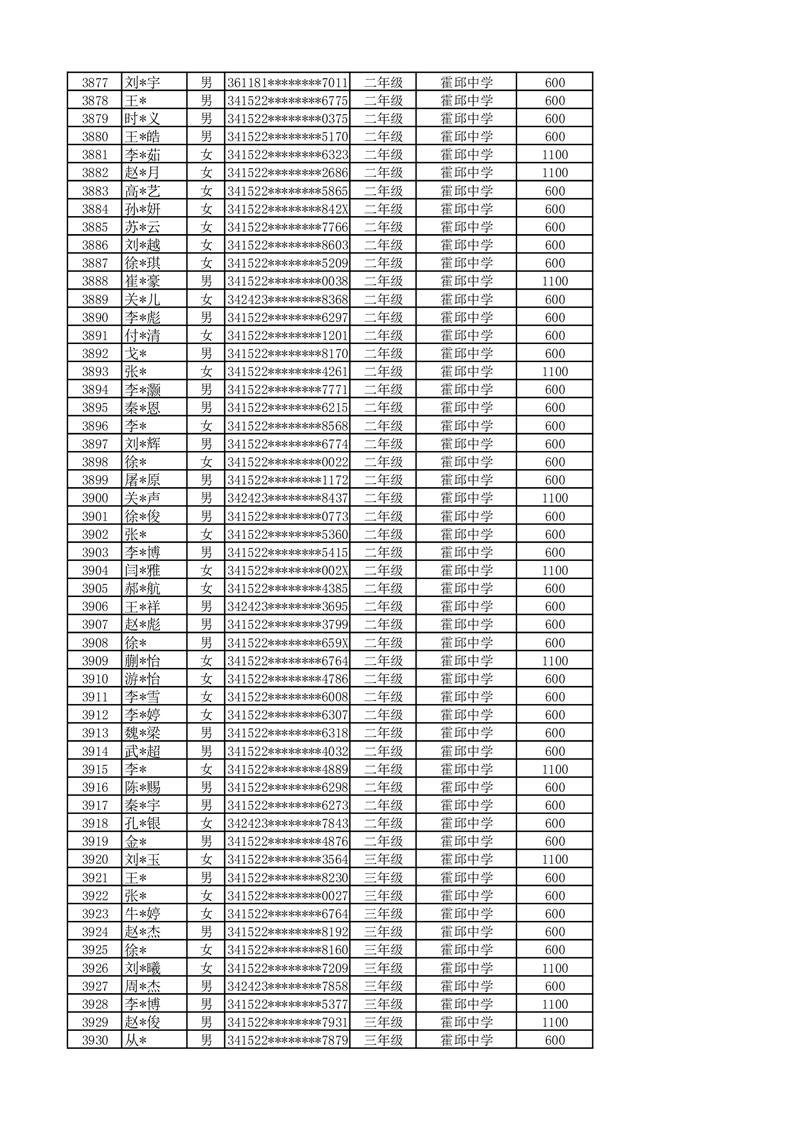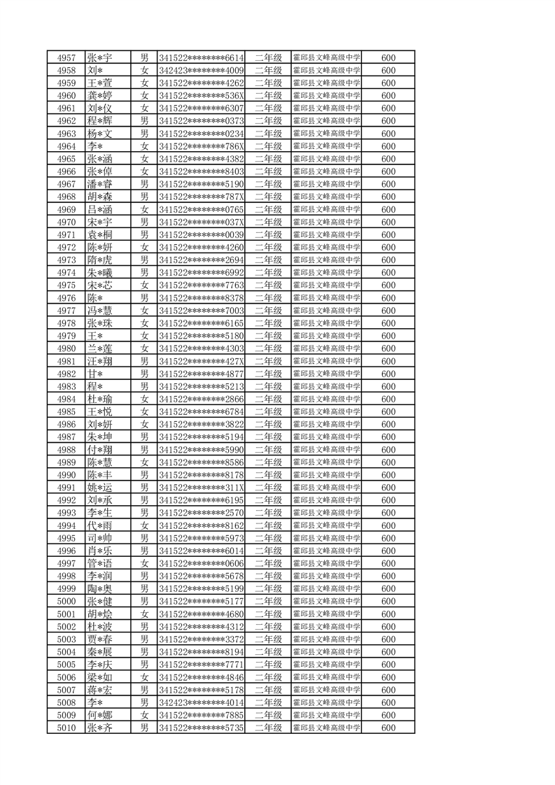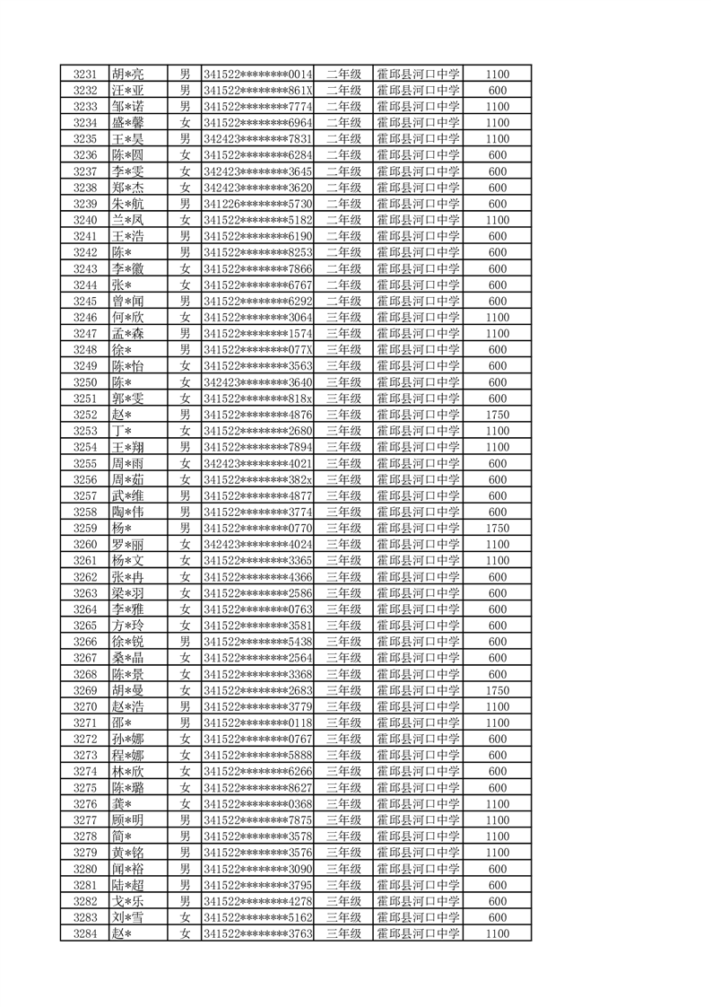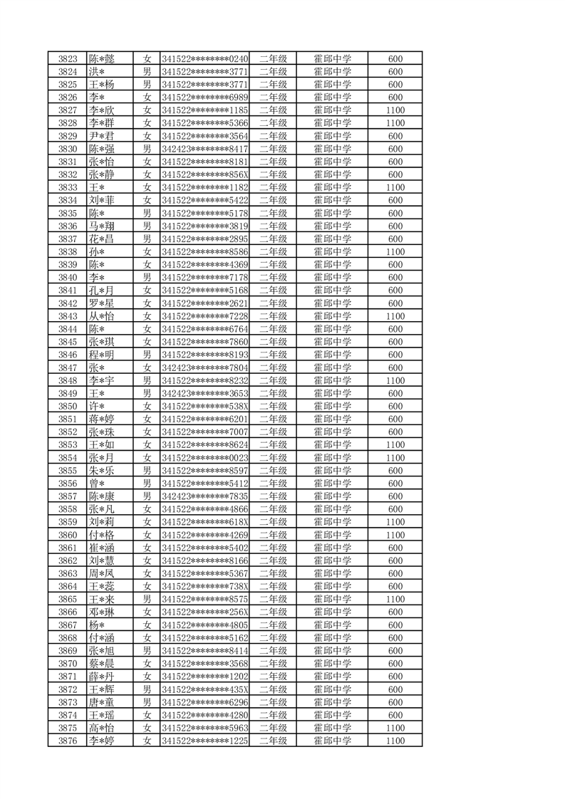 霍邱县2025年秋学期普通高中国家助学金资助名单公示(5177人)