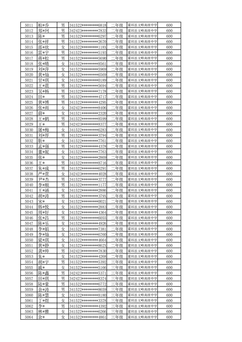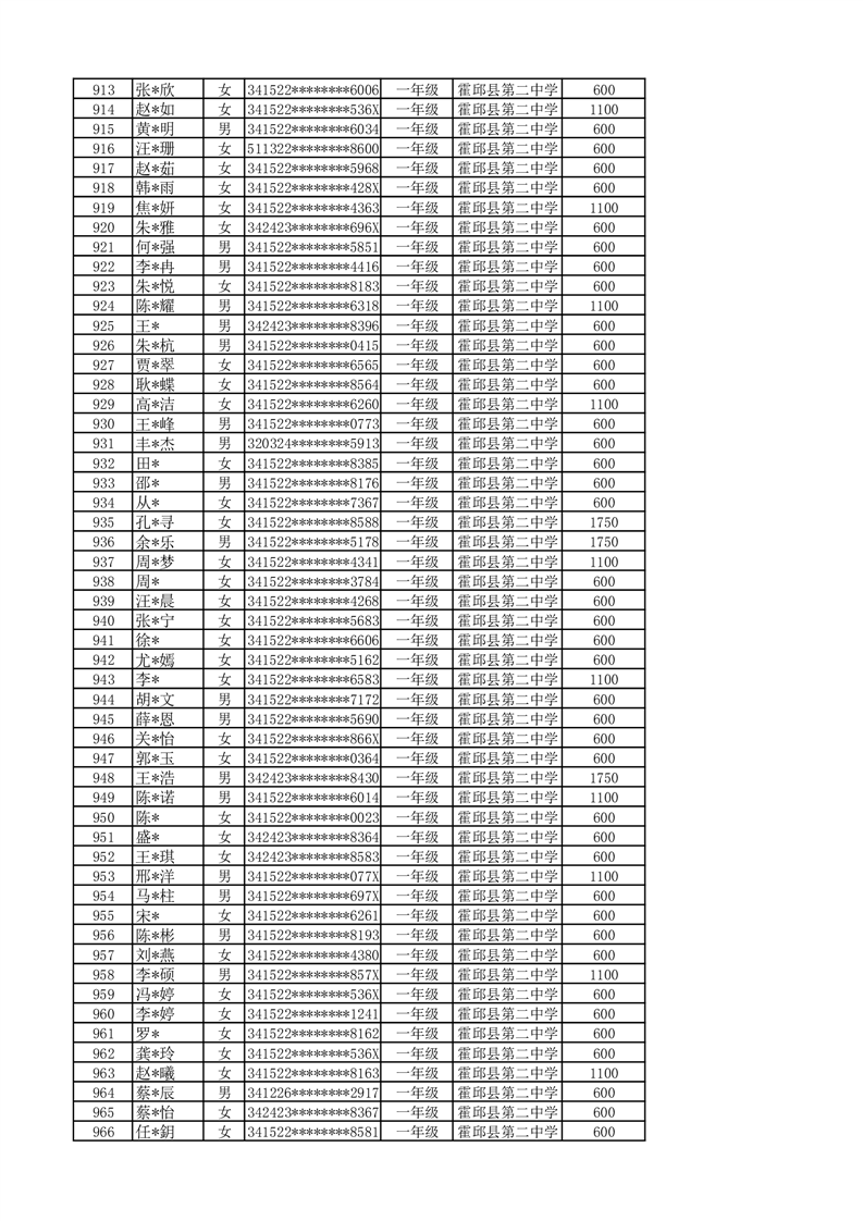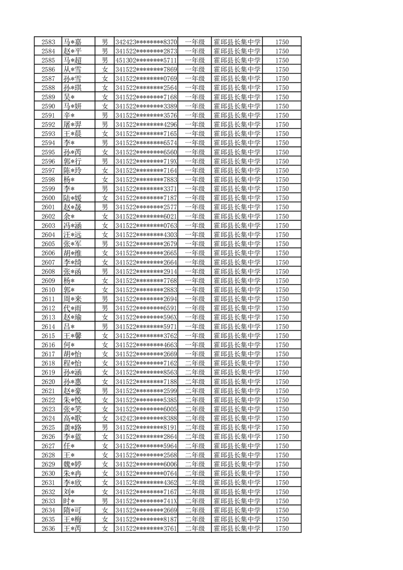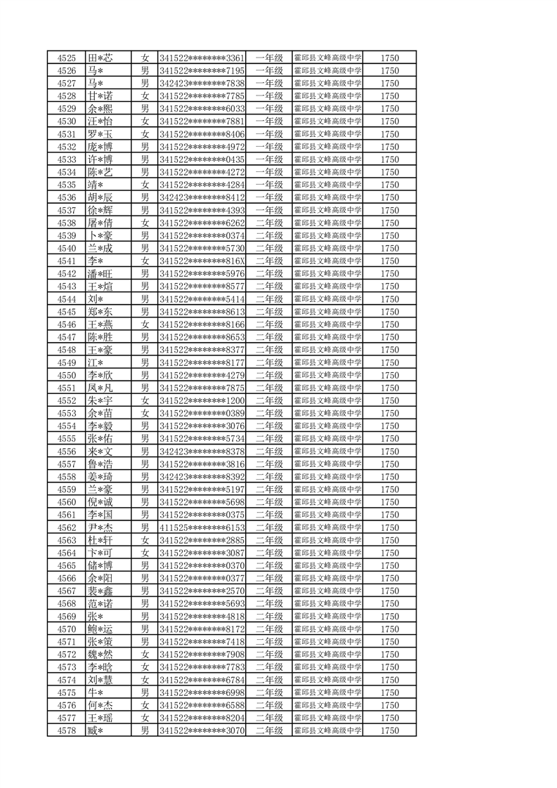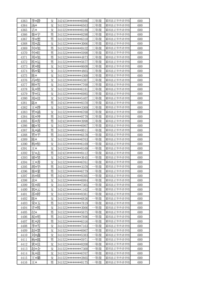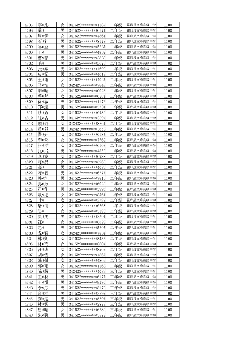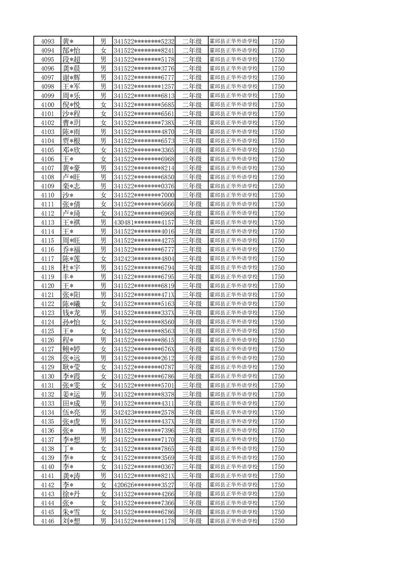 霍邱县2025年秋学期普通高中国家助学金资助名单公示(5177人)