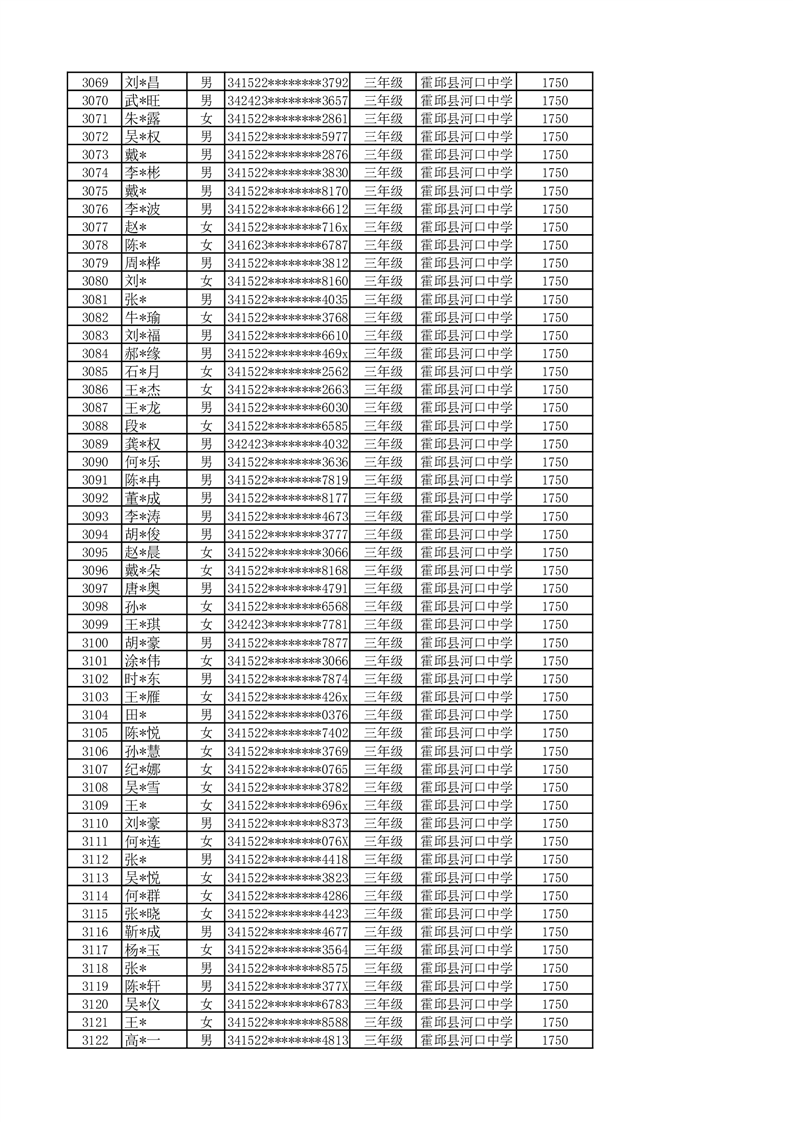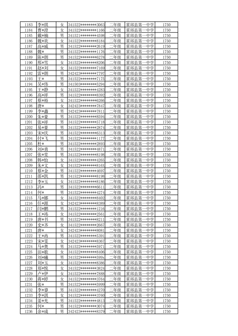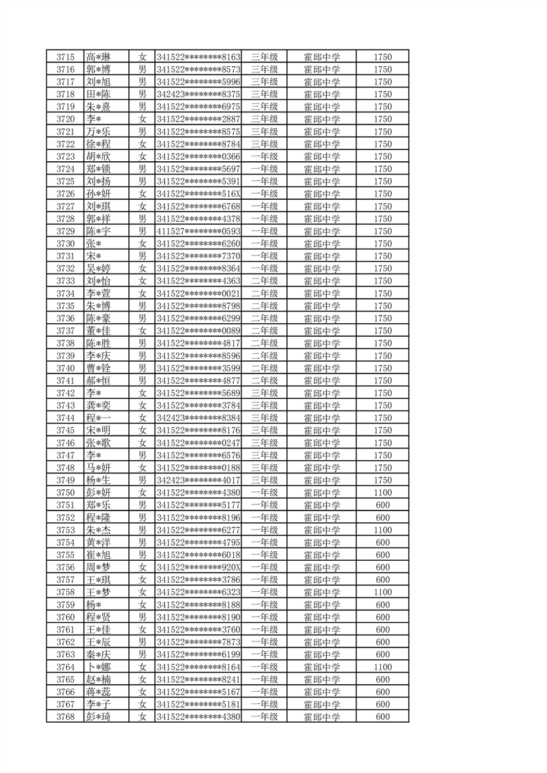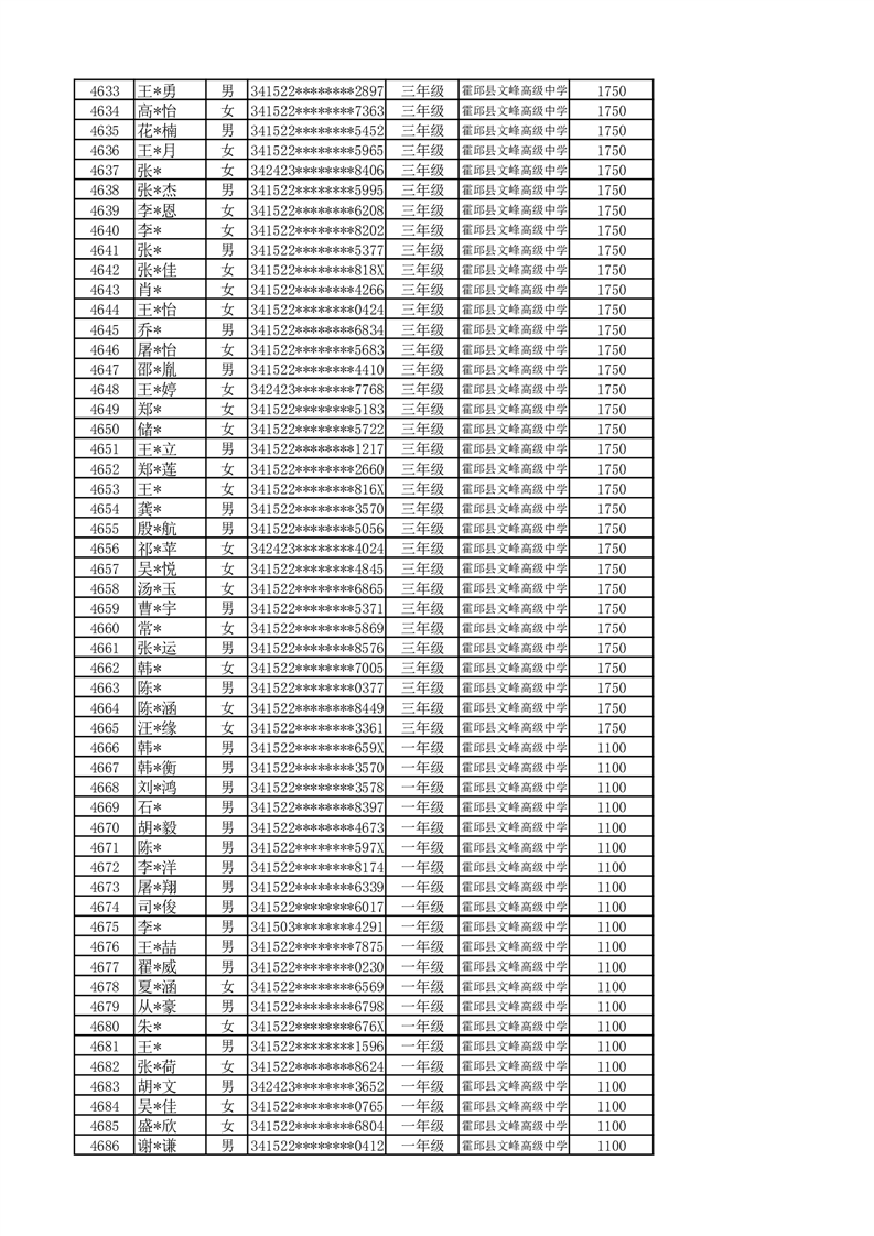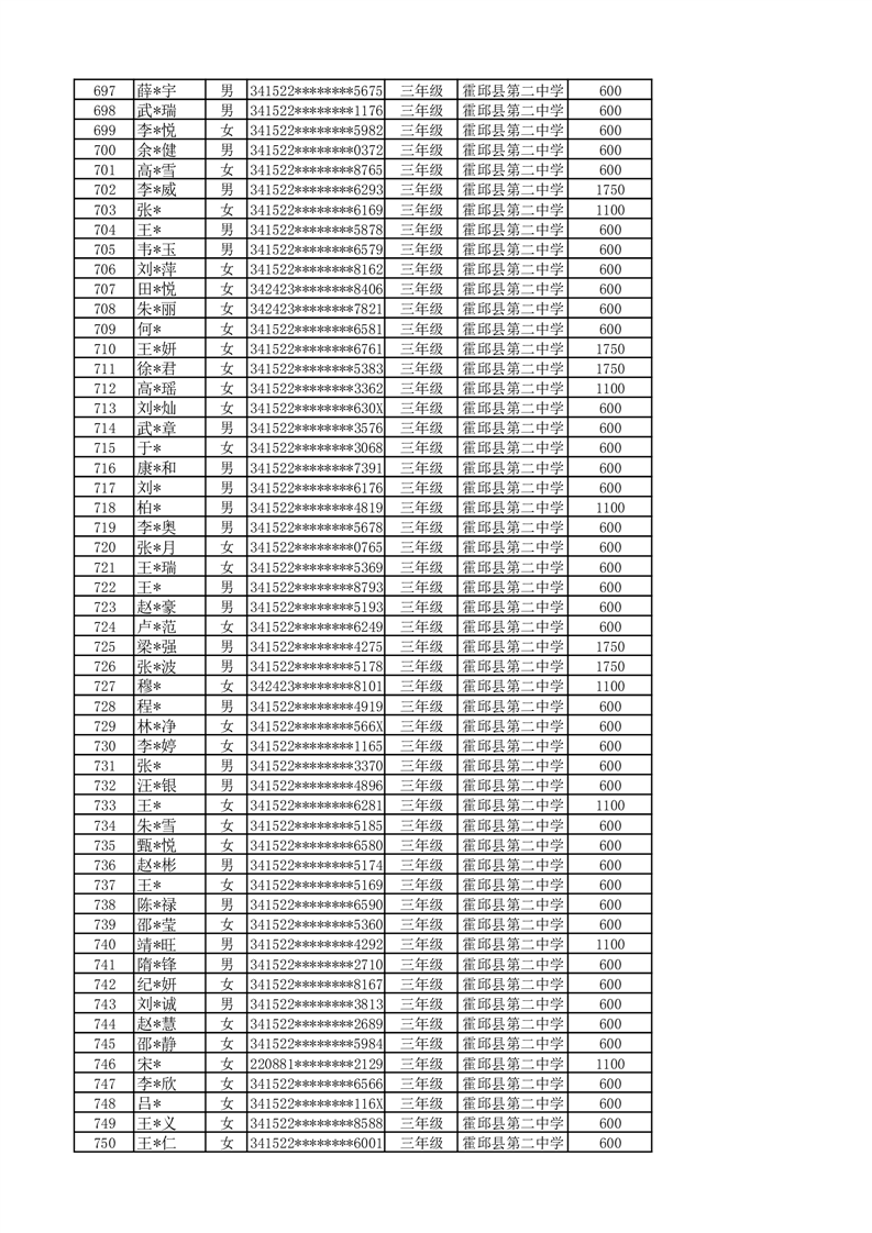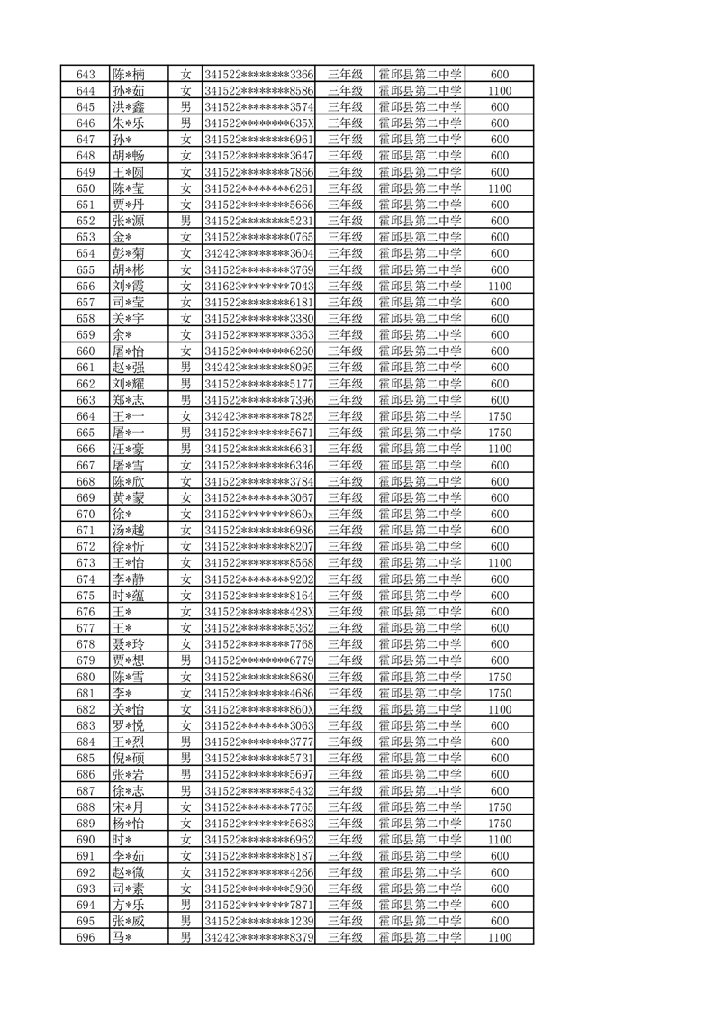 霍邱县2025年秋学期普通高中国家助学金资助名单公示(5177人)