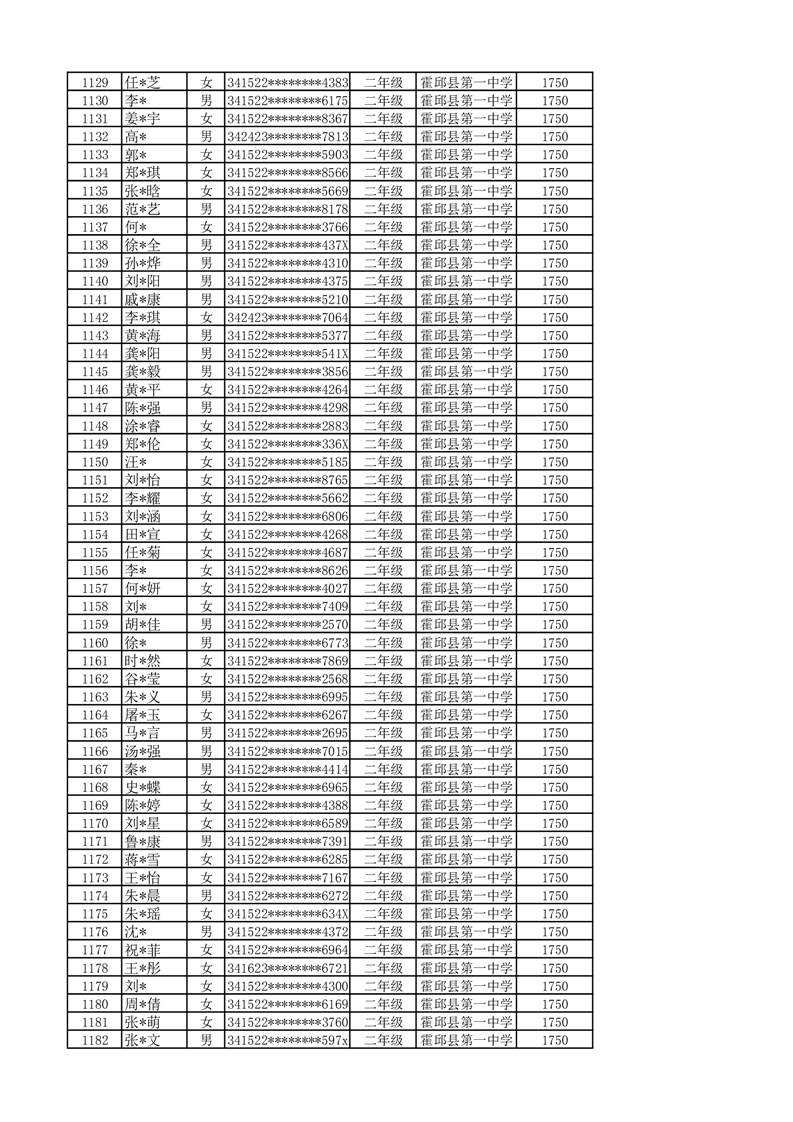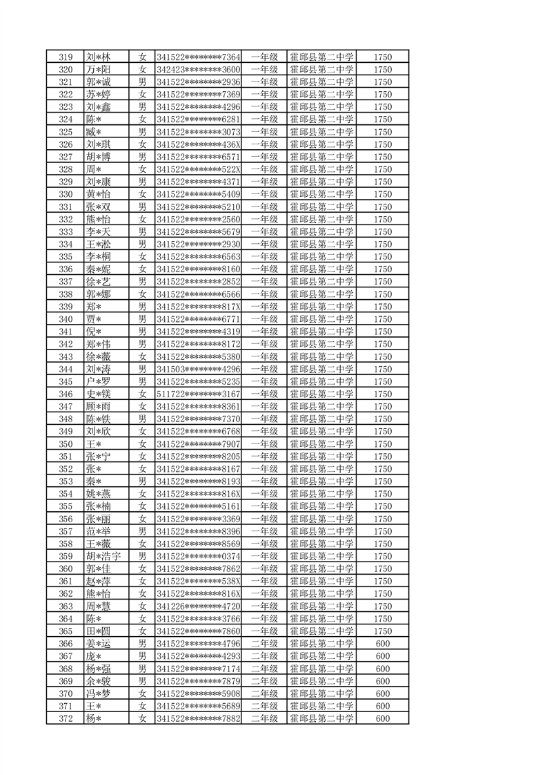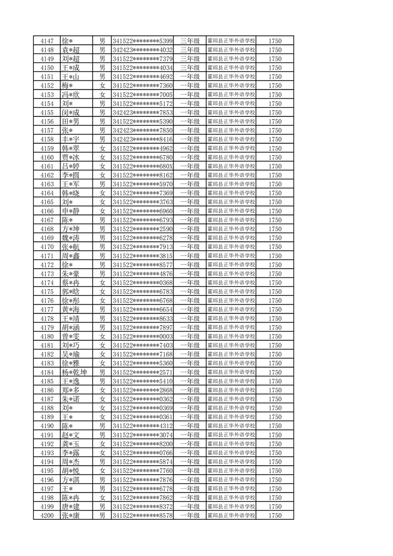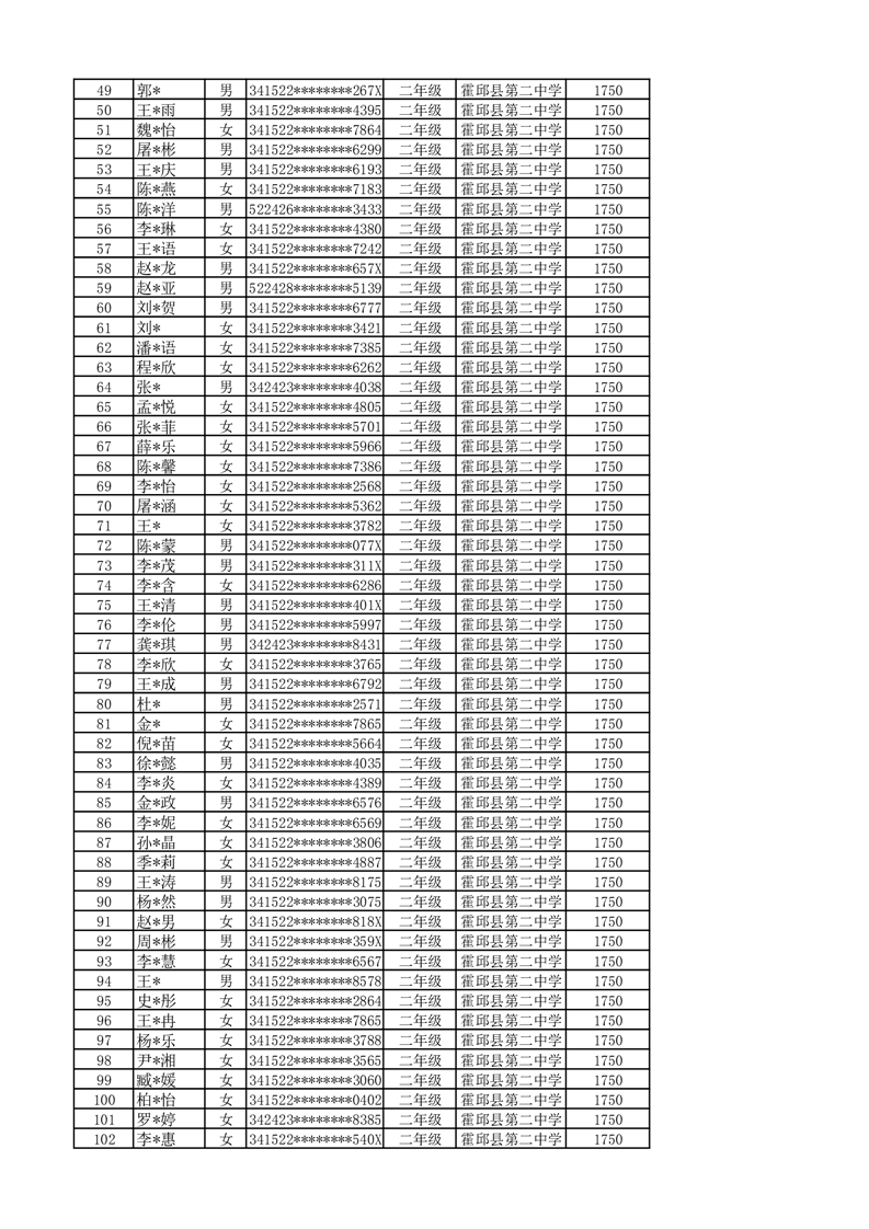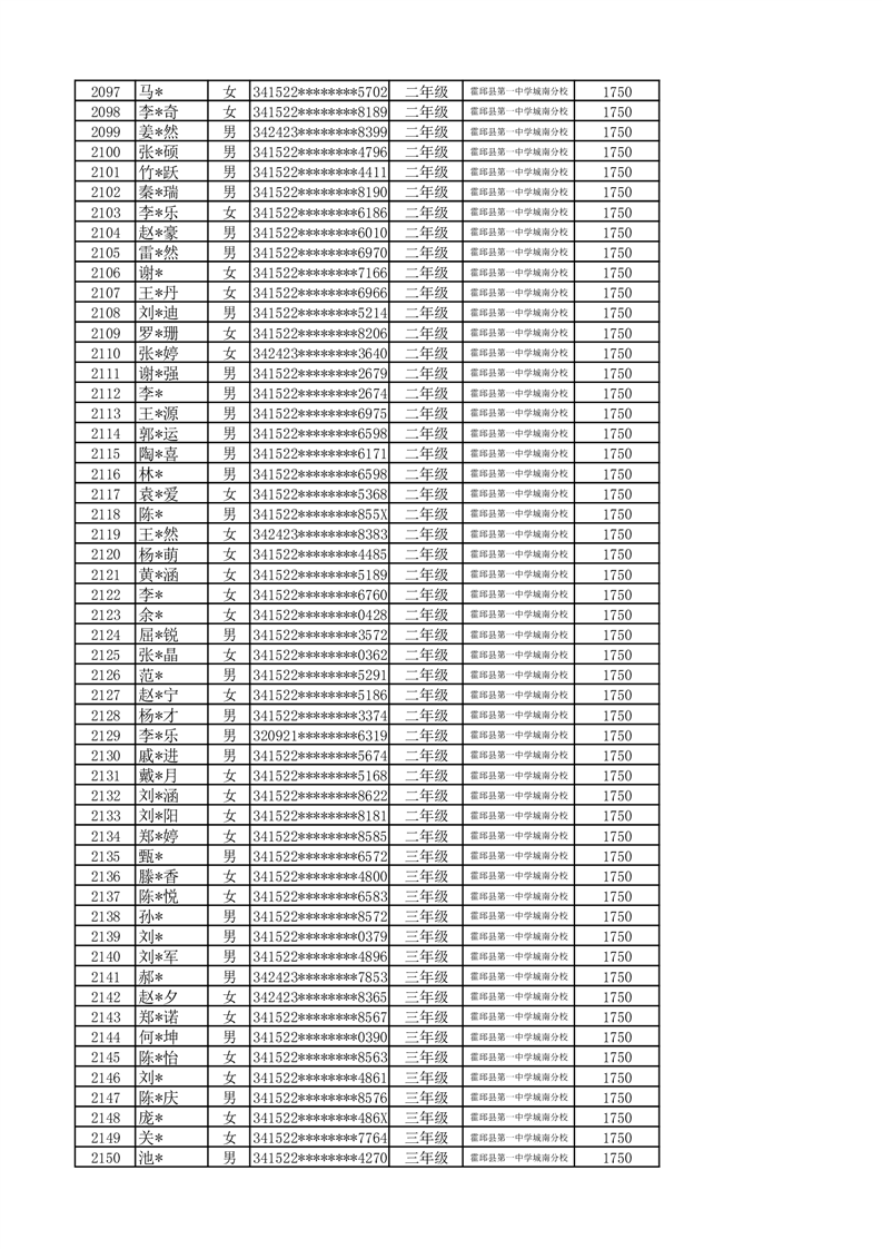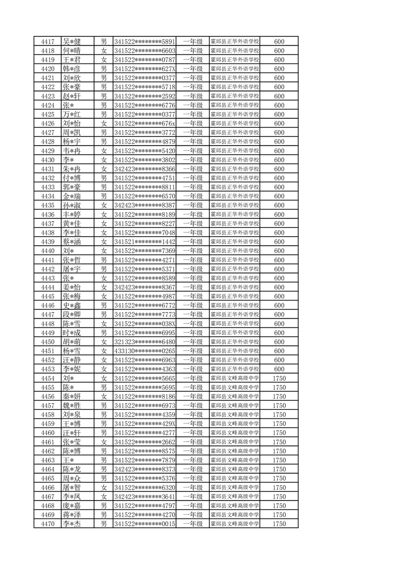 霍邱县2025年秋学期普通高中国家助学金资助名单公示(5177人)