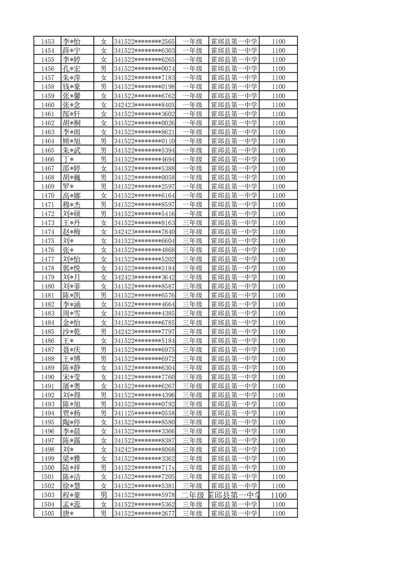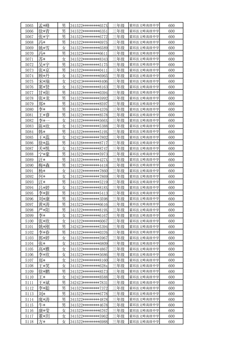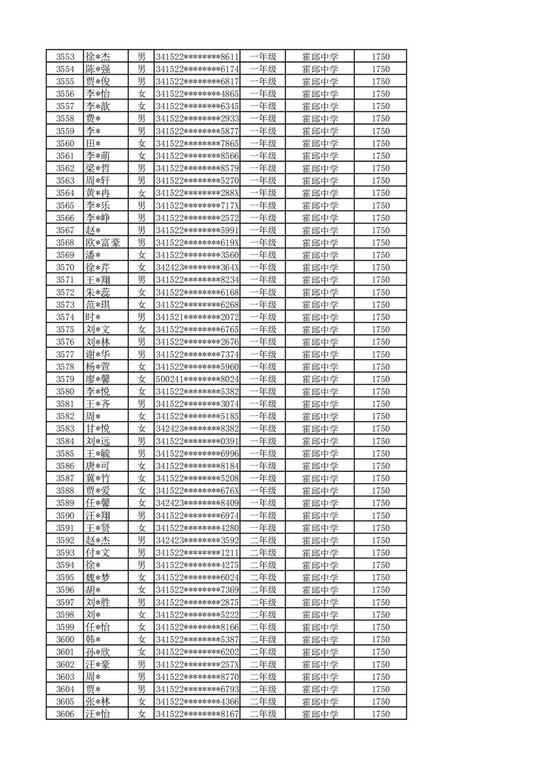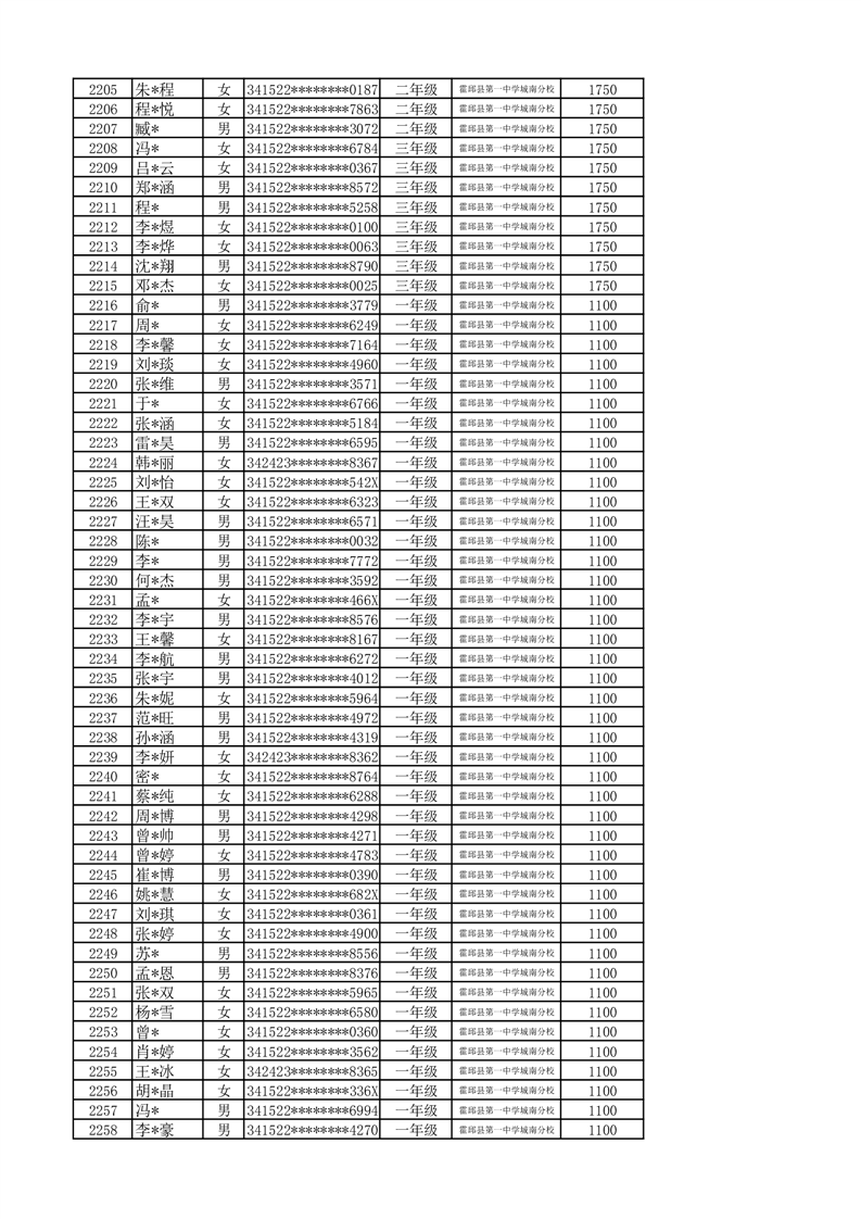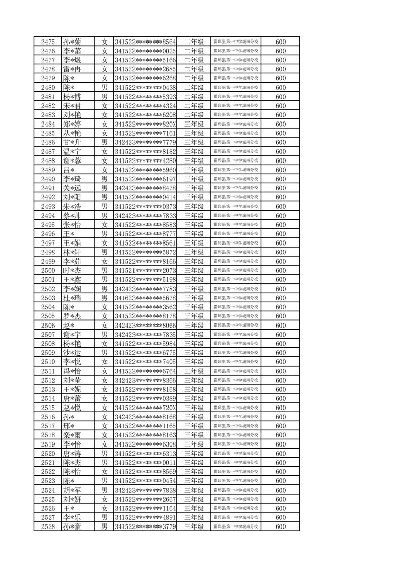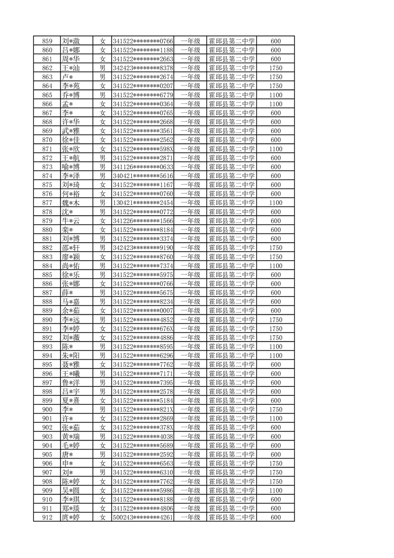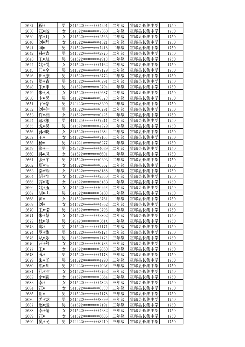 霍邱县2025年秋学期普通高中国家助学金资助名单公示(5177人)