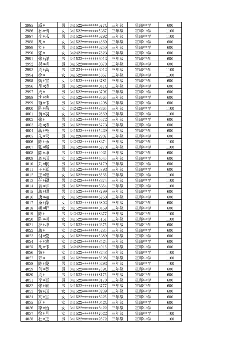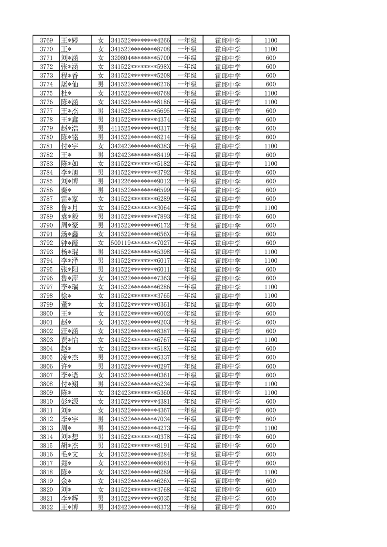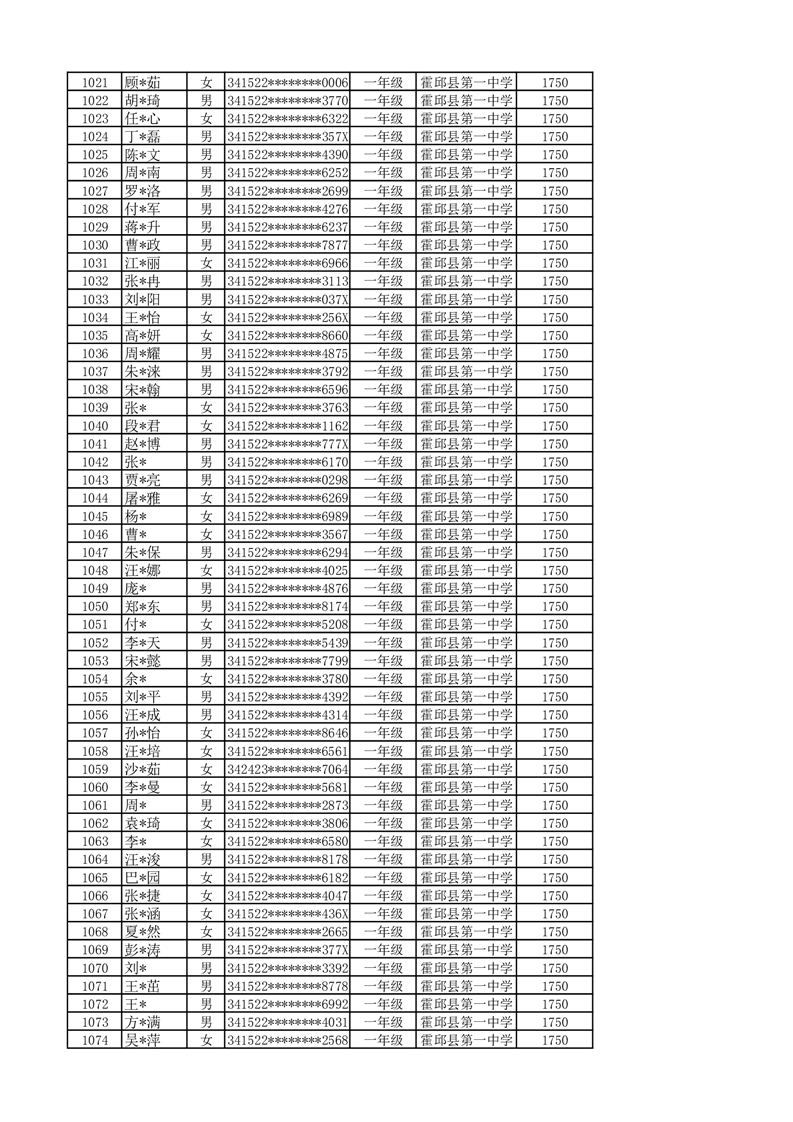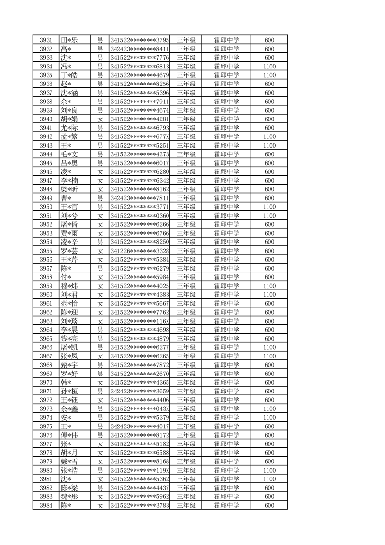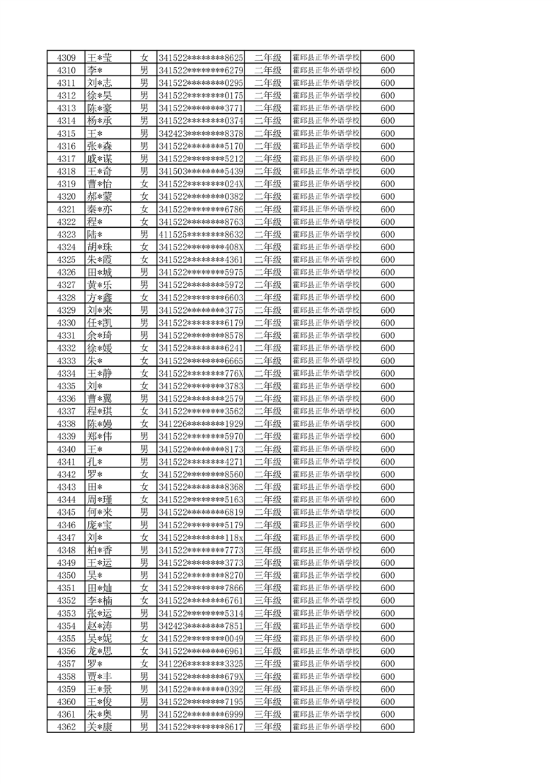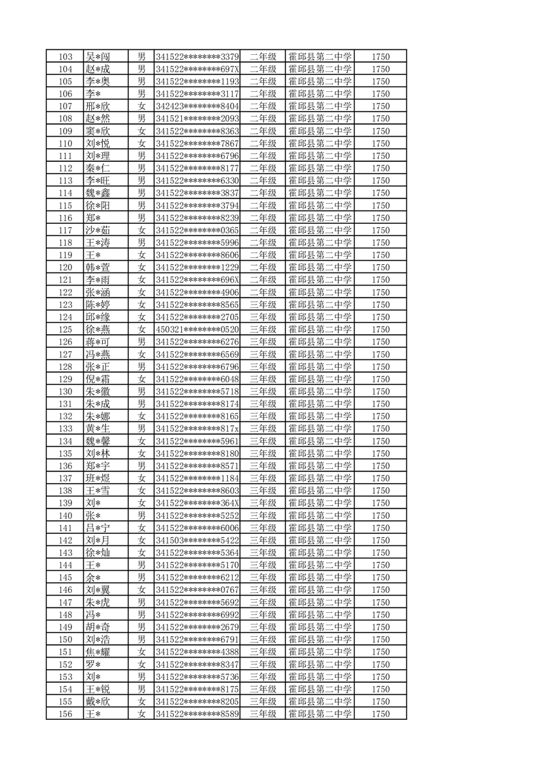 霍邱县2025年秋学期普通高中国家助学金资助名单公示(5177人)