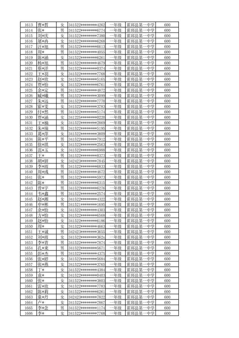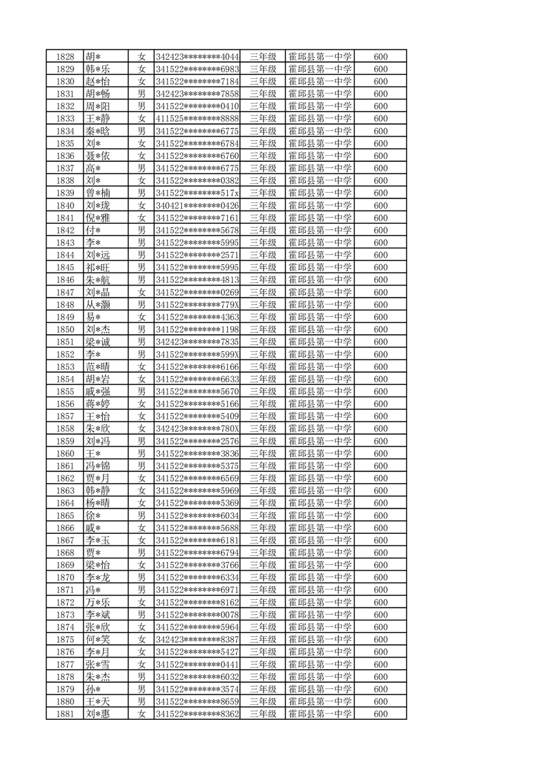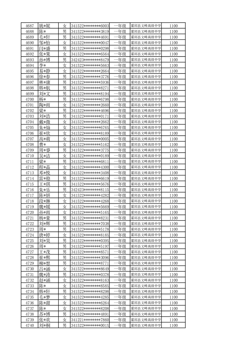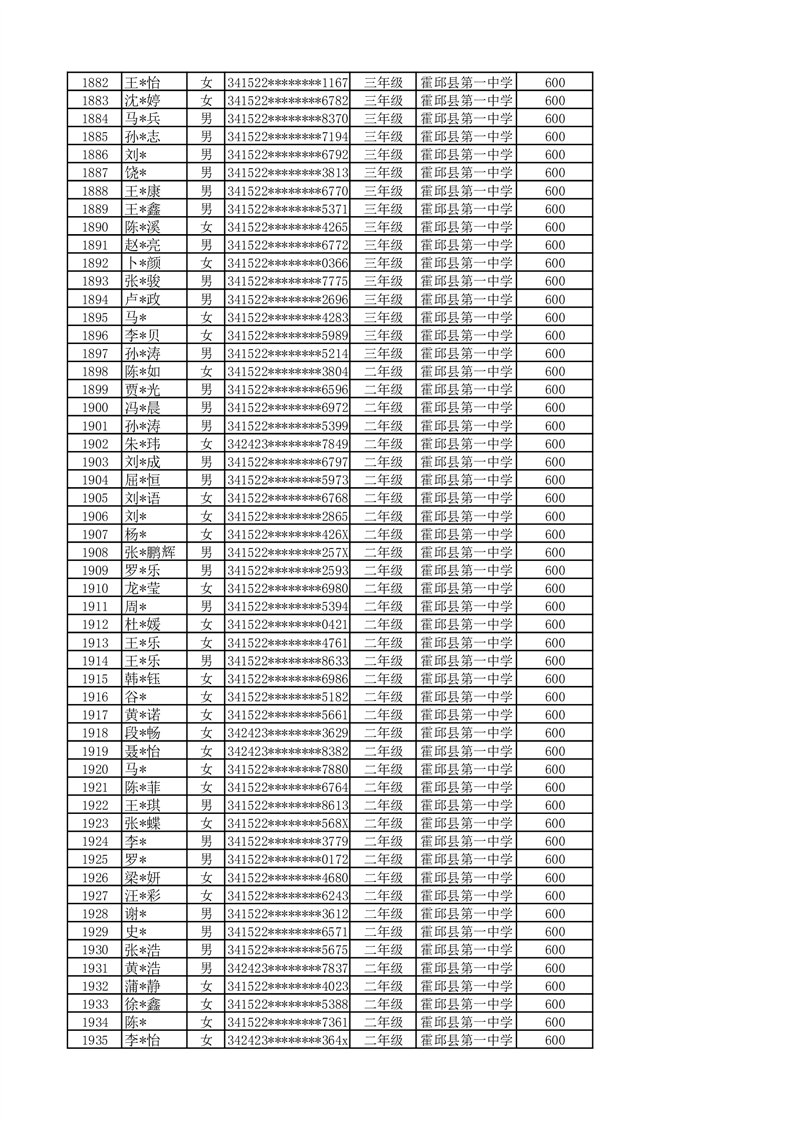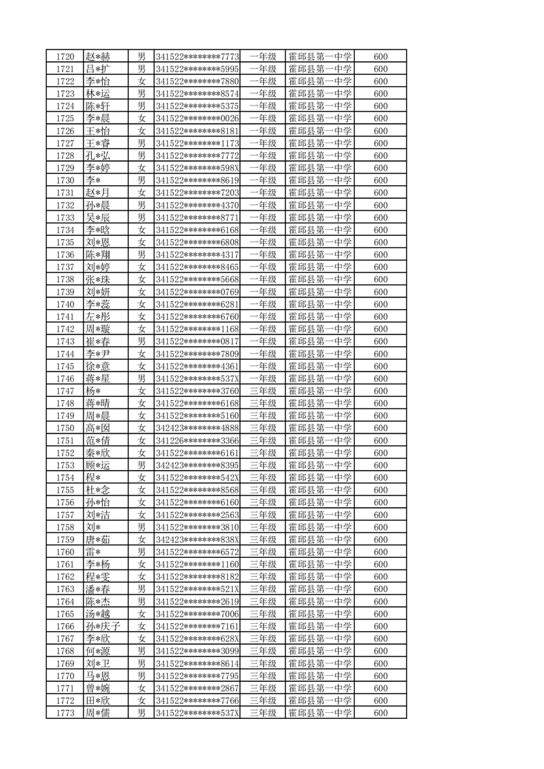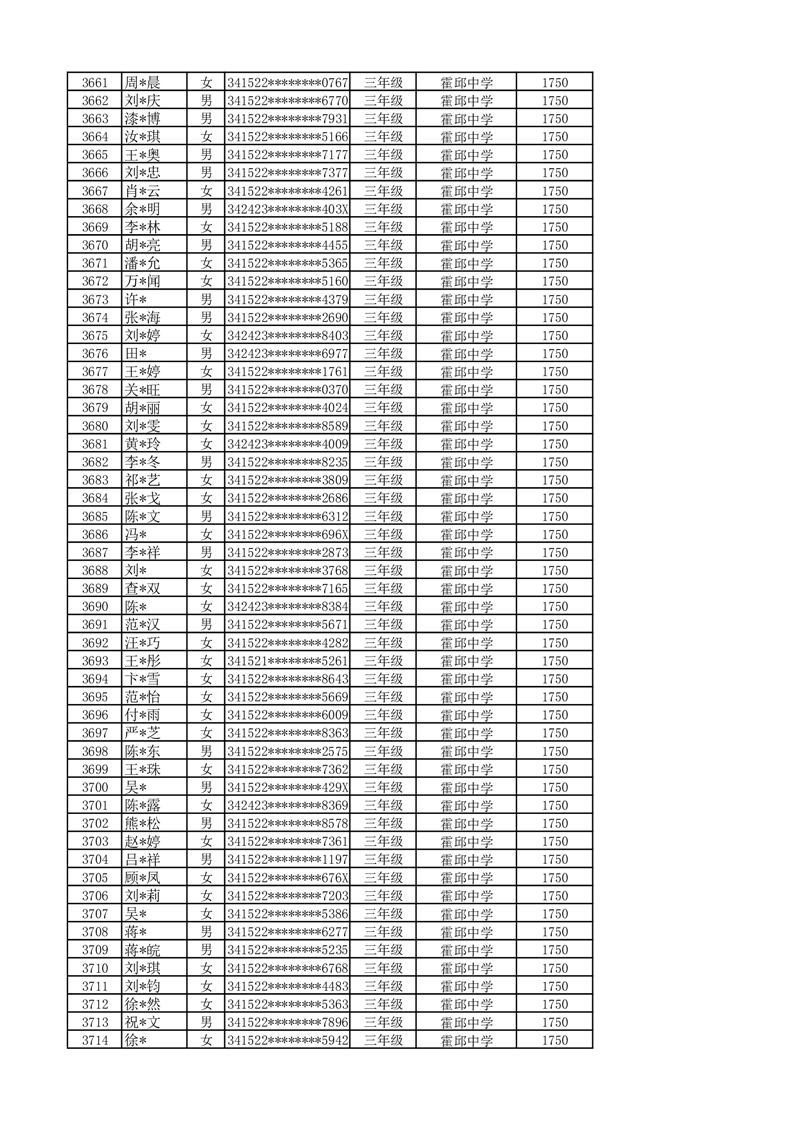 霍邱县2025年秋学期普通高中国家助学金资助名单公示(5177人)