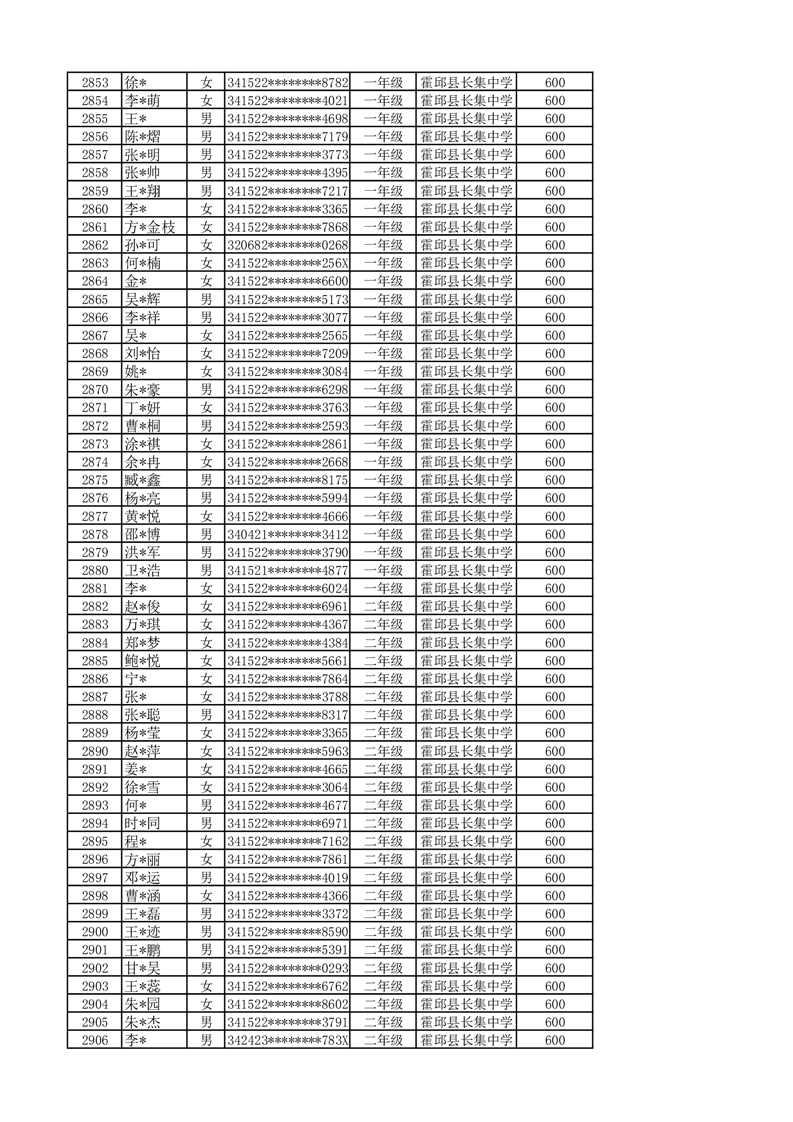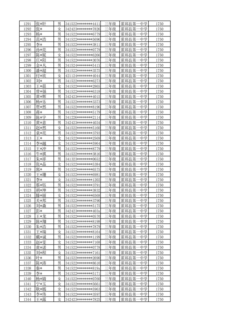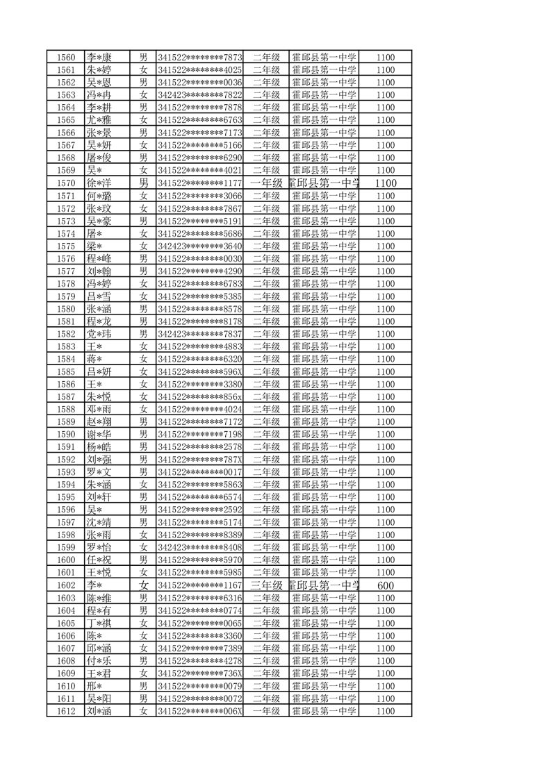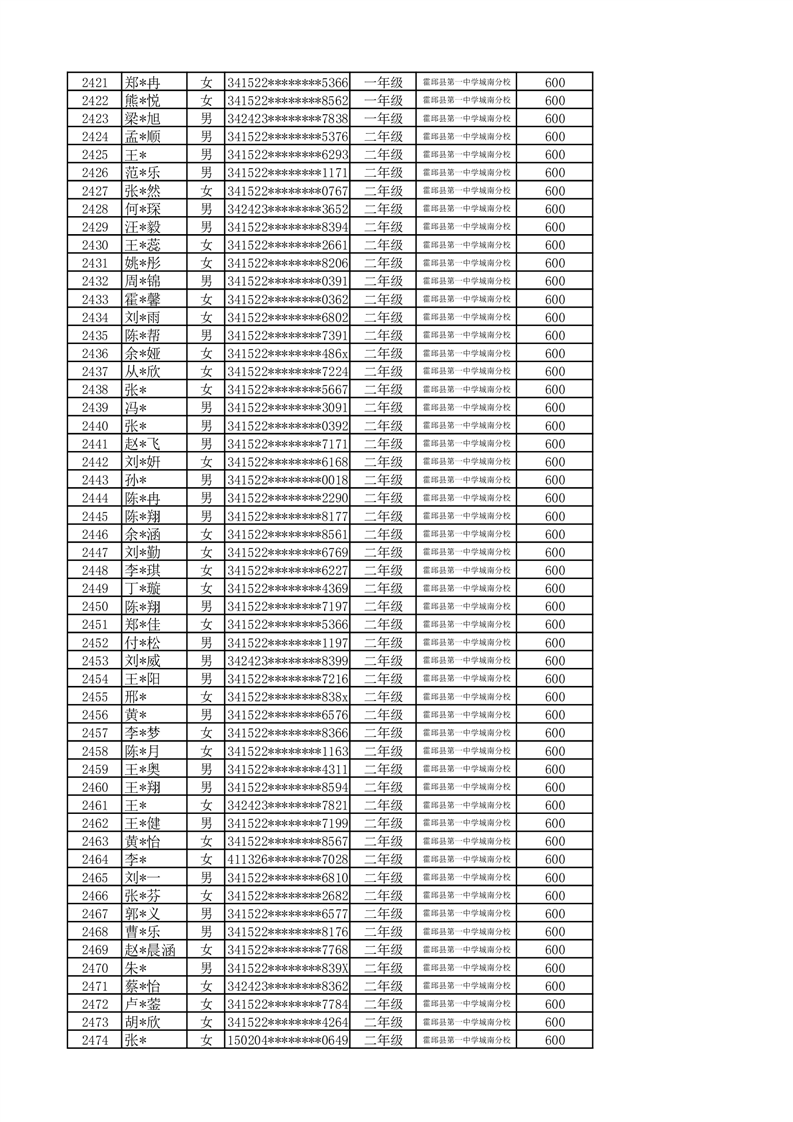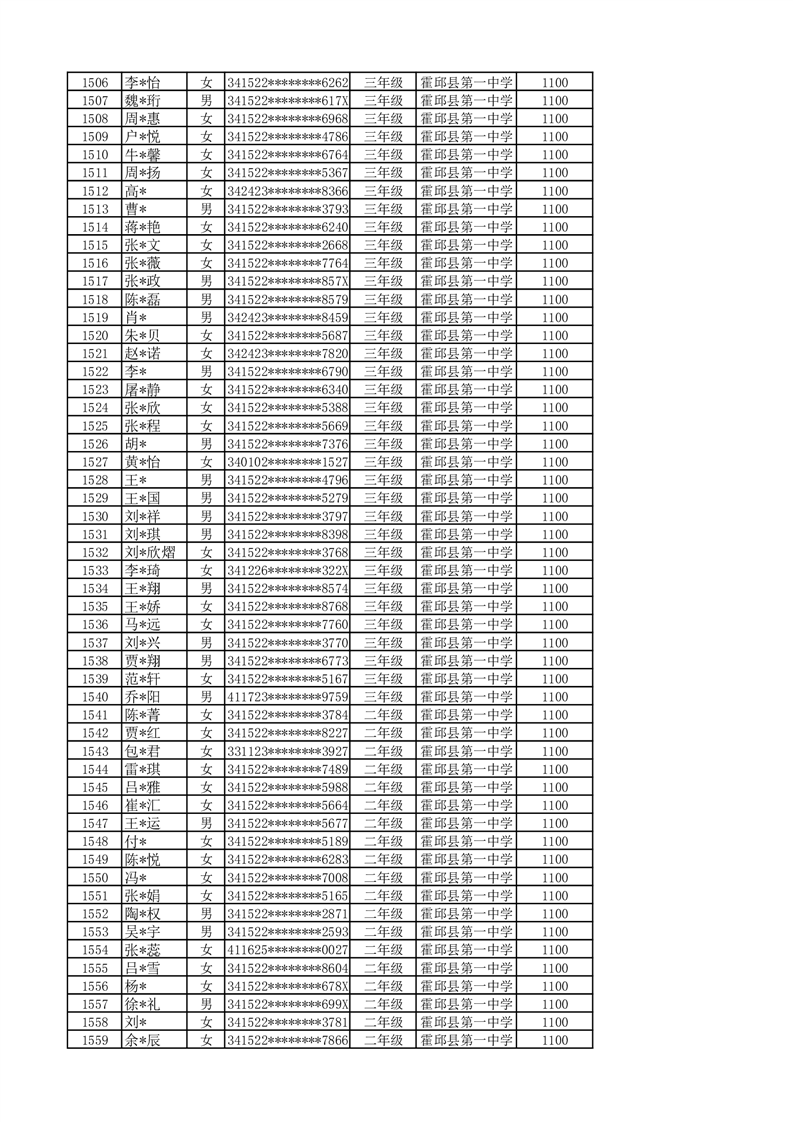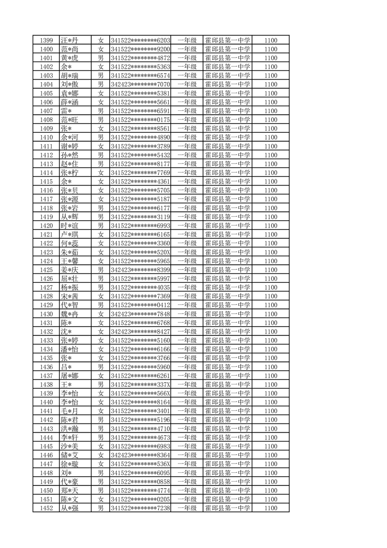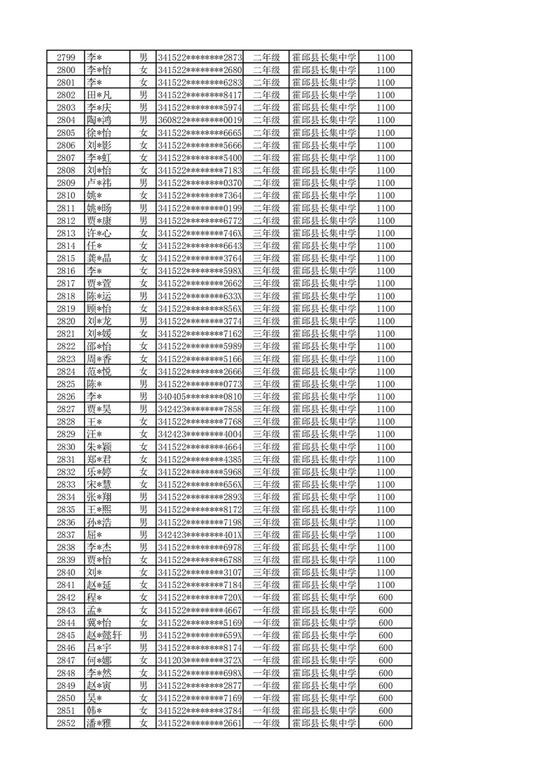 霍邱县2025年秋学期普通高中国家助学金资助名单公示(5177人)