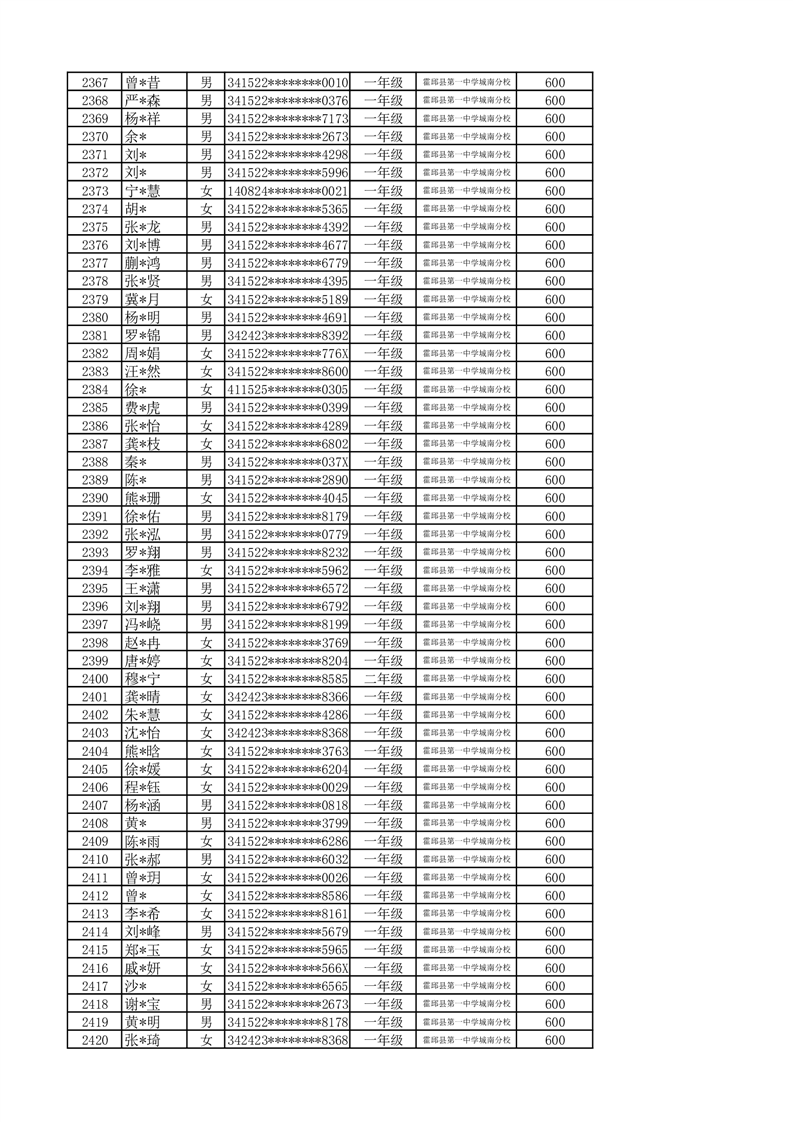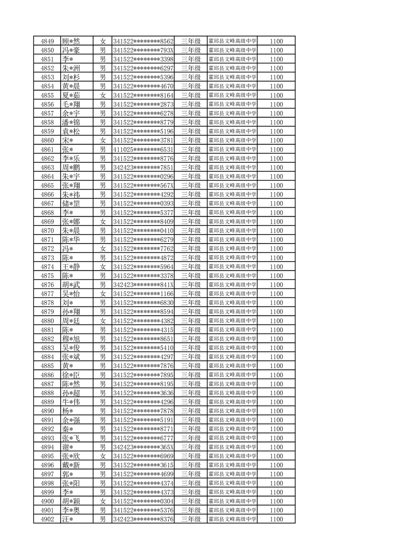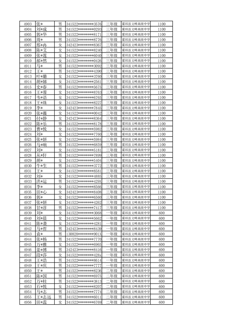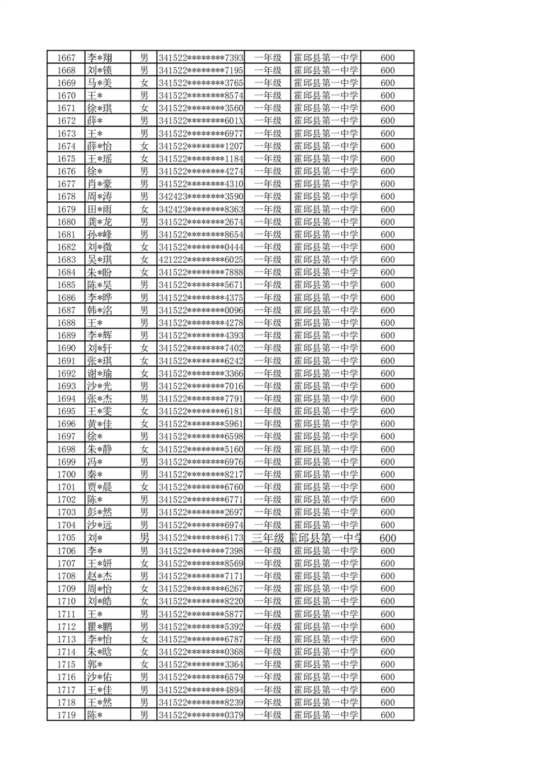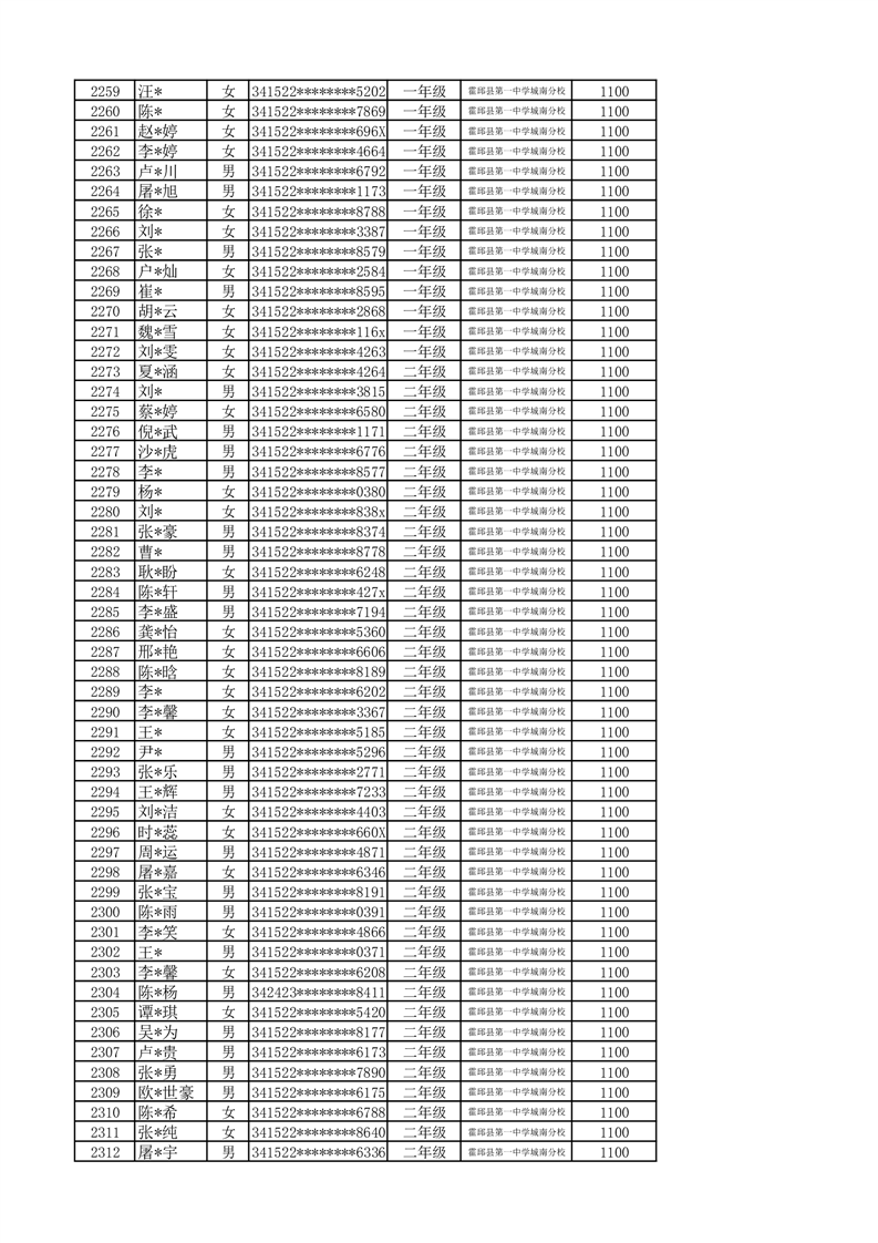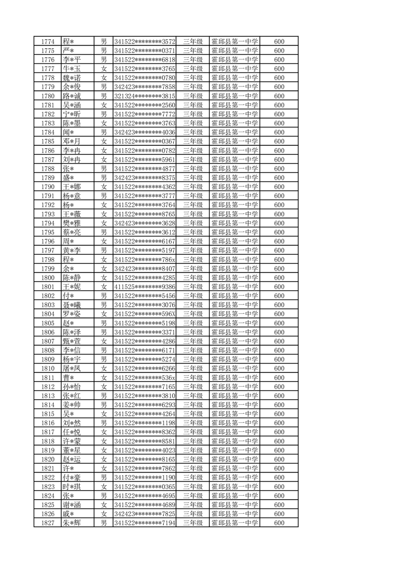 霍邱县2025年秋学期普通高中国家助学金资助名单公示(5177人)