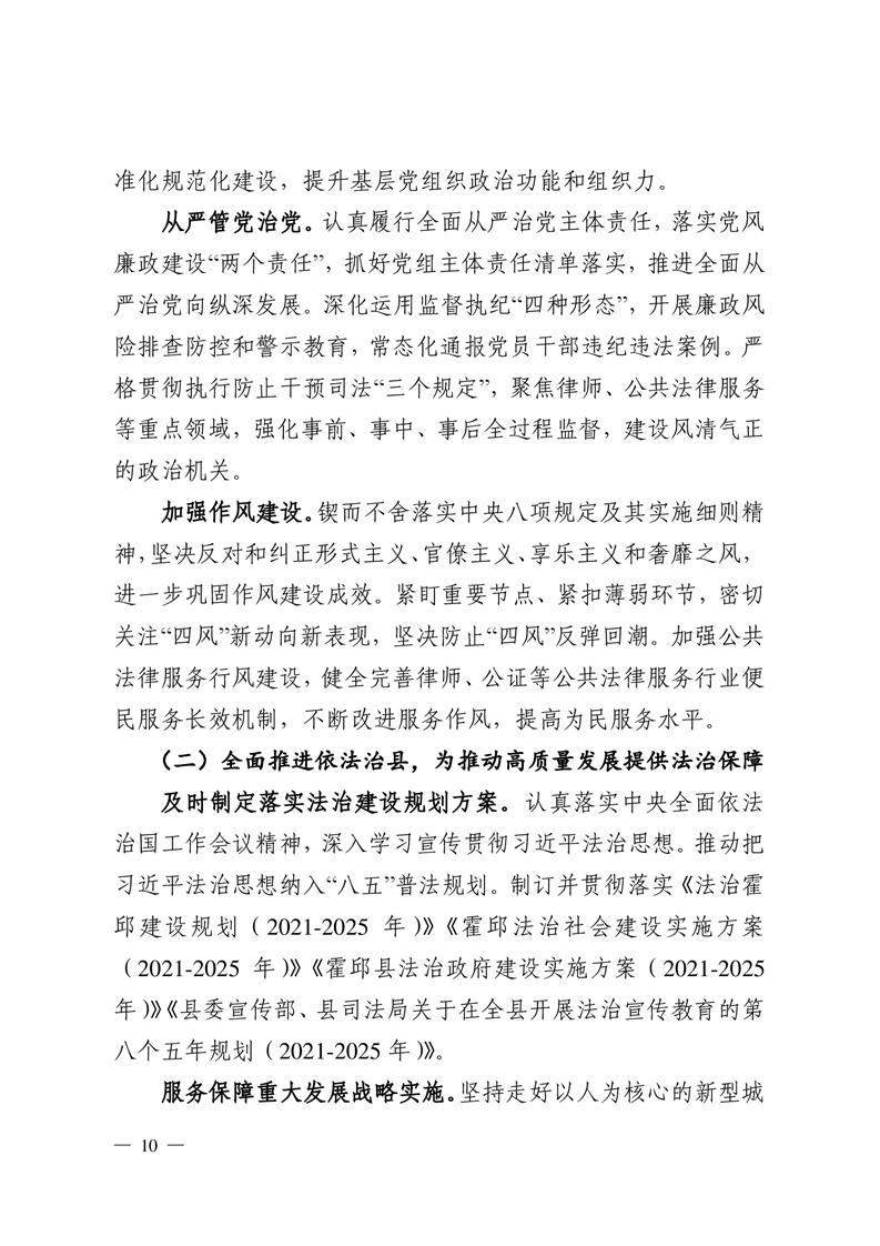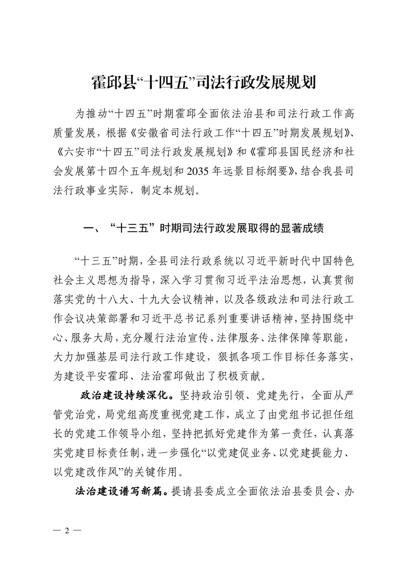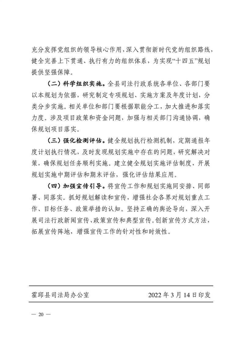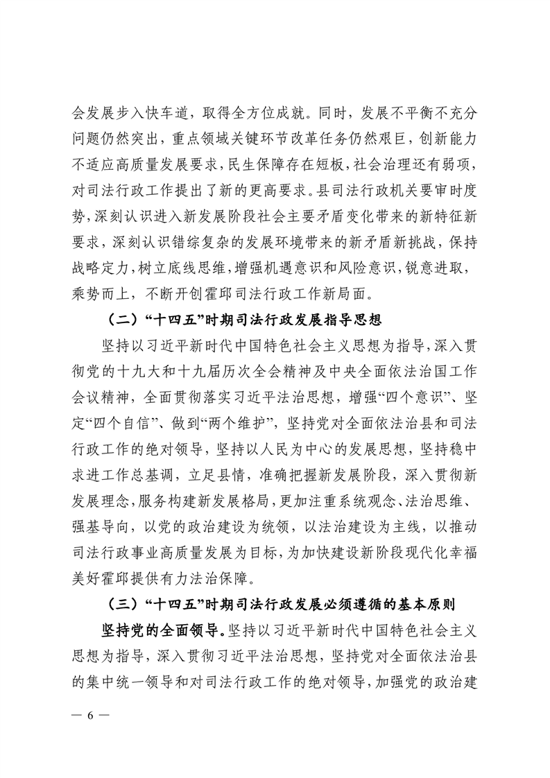 关于印发《霍邱县“十四五”司法行政发展规划》的通知