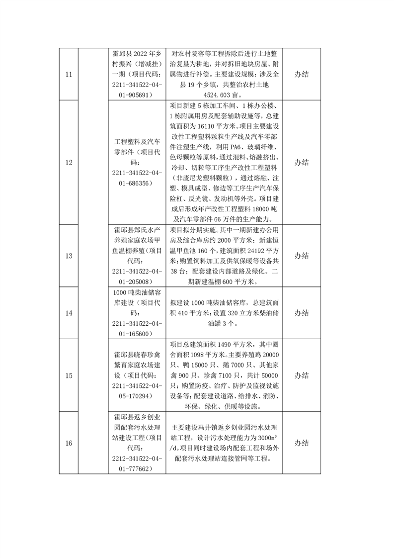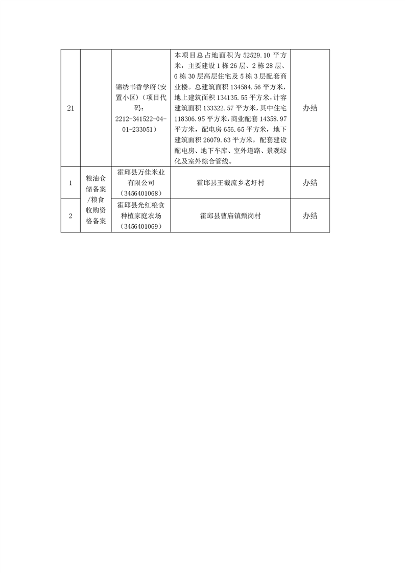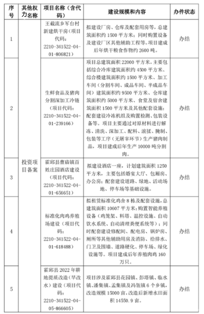 霍邱县发展和改革委员会2022年第四季度其他权力办理结果