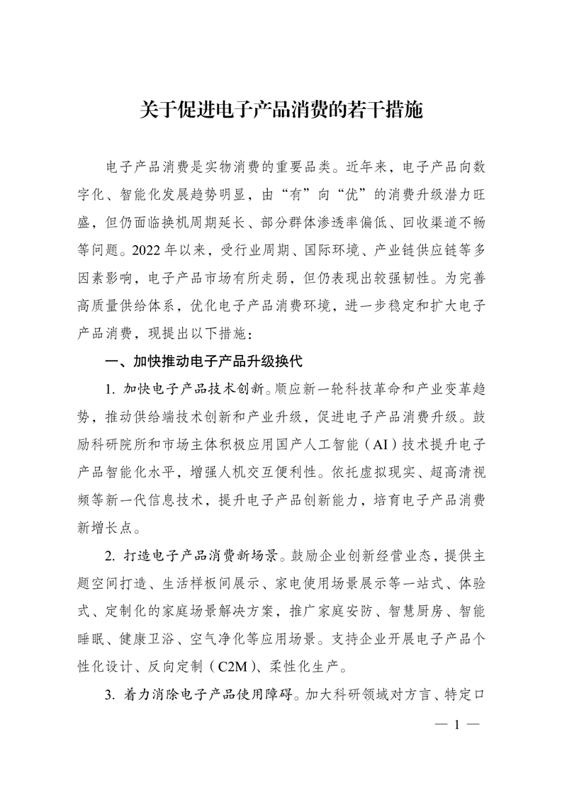 国家发展改革委等部门印发《关于促进电子产品消费的若干措施》的通知