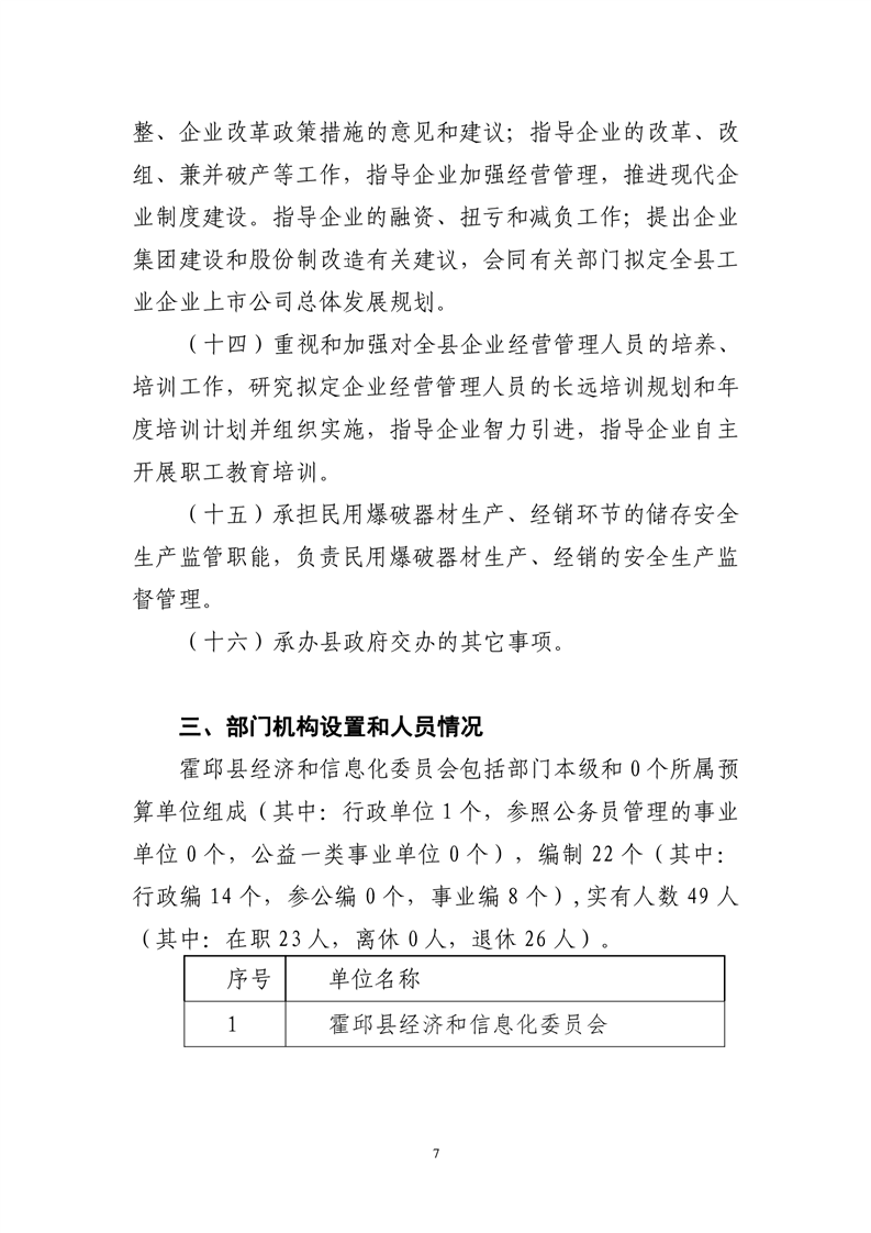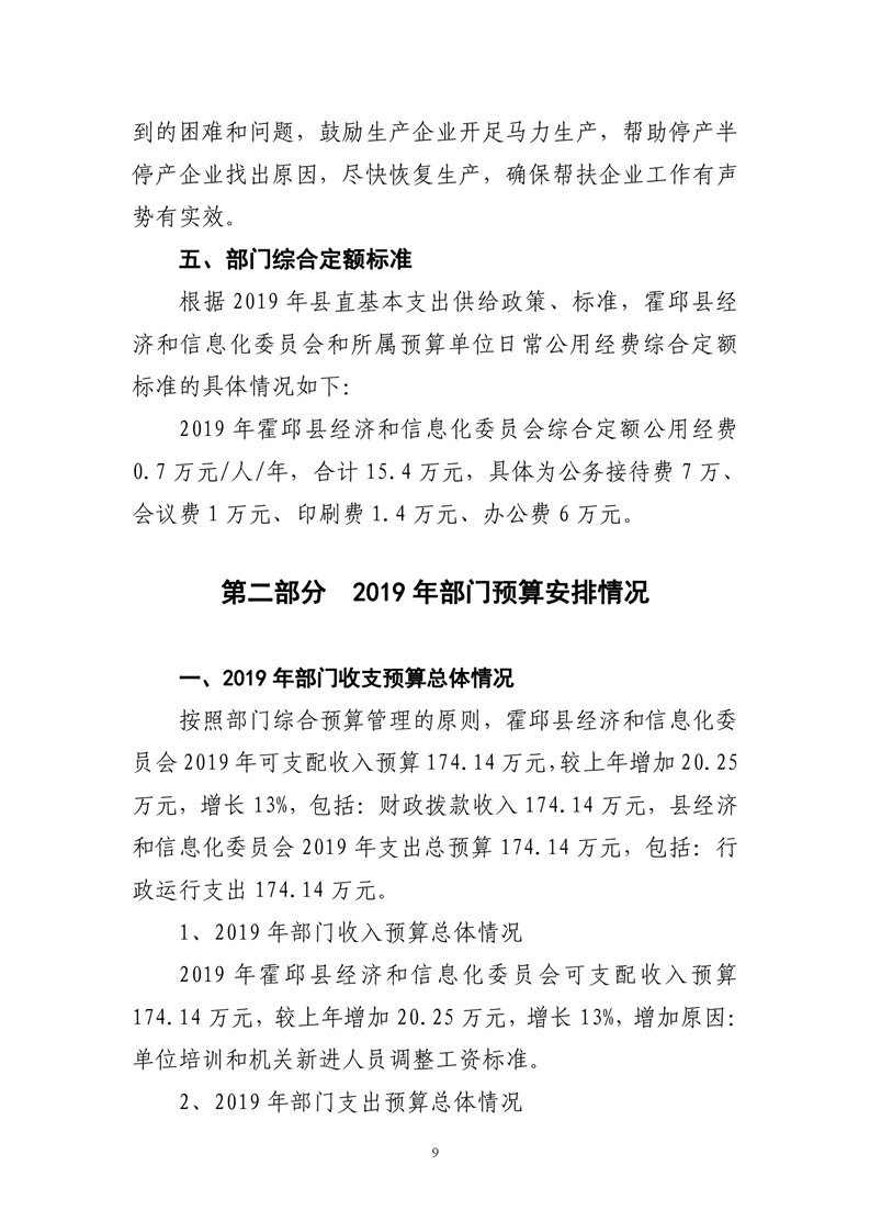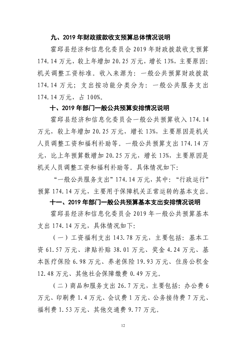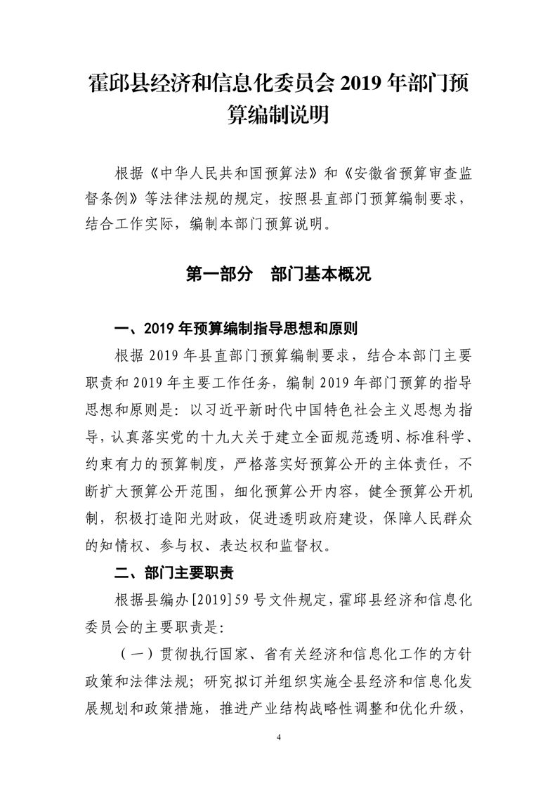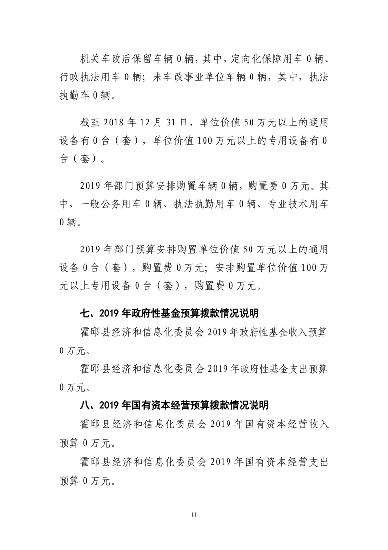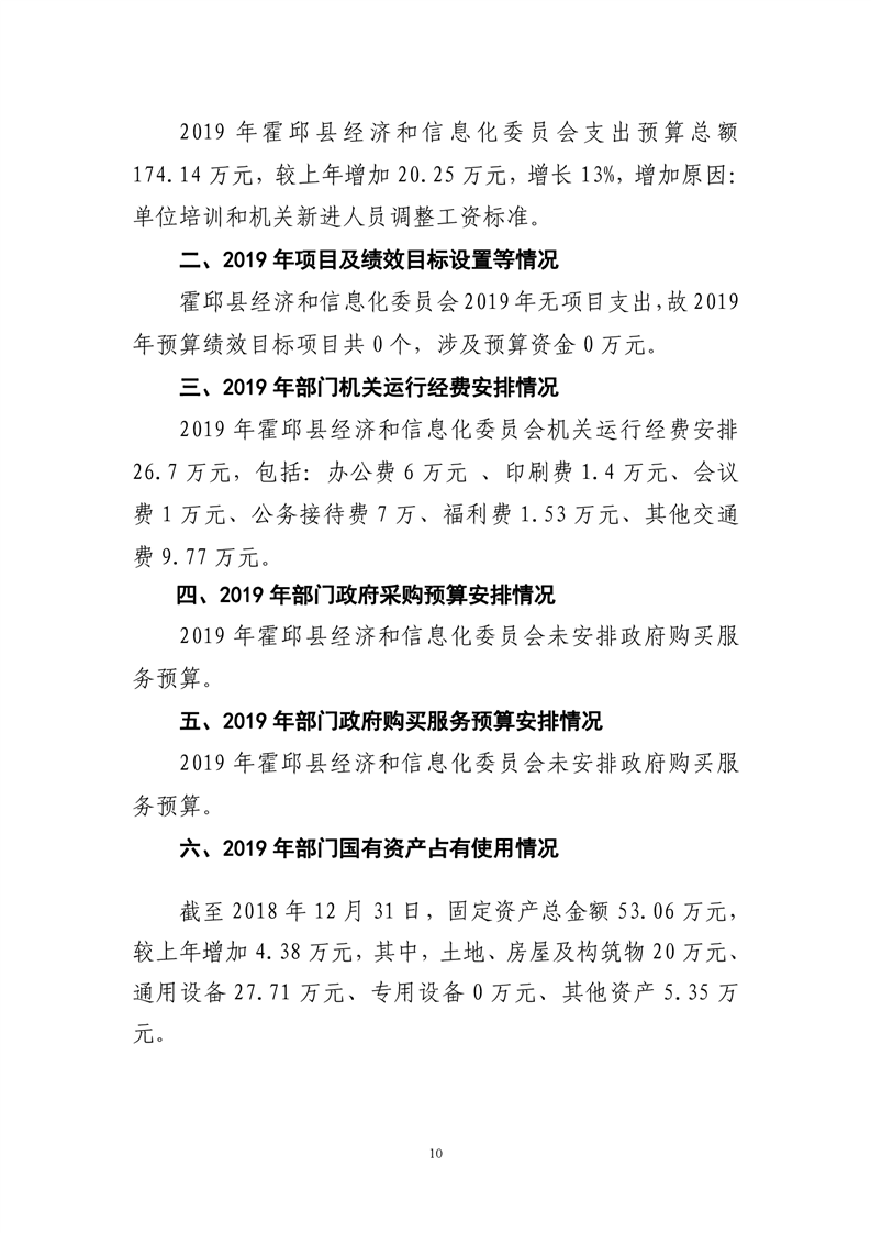 霍邱县经济和信息化委员会2019年度部门预算