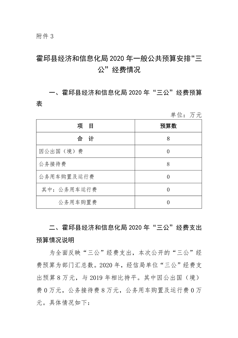 霍邱县经济和信息化局2020年“三公”经费预算公开