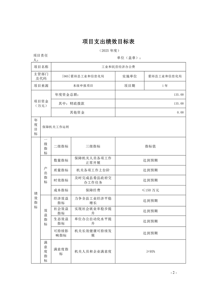 霍邱县工业和信息化局2025年项目支出绩效目标