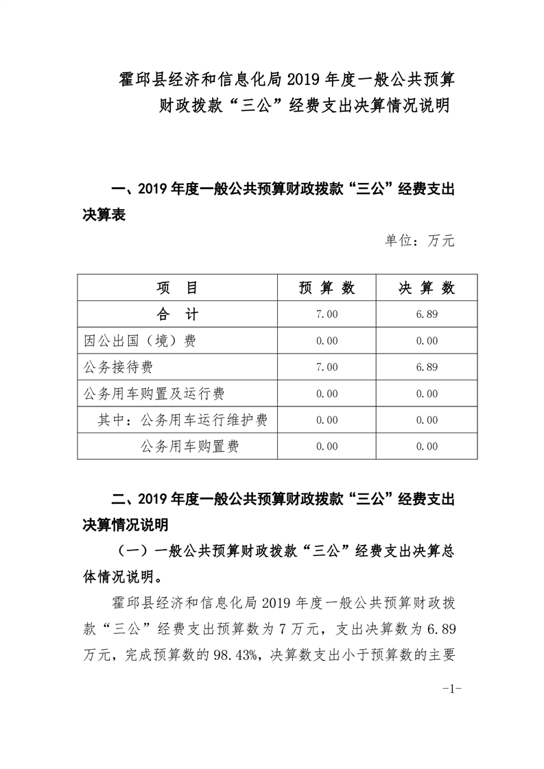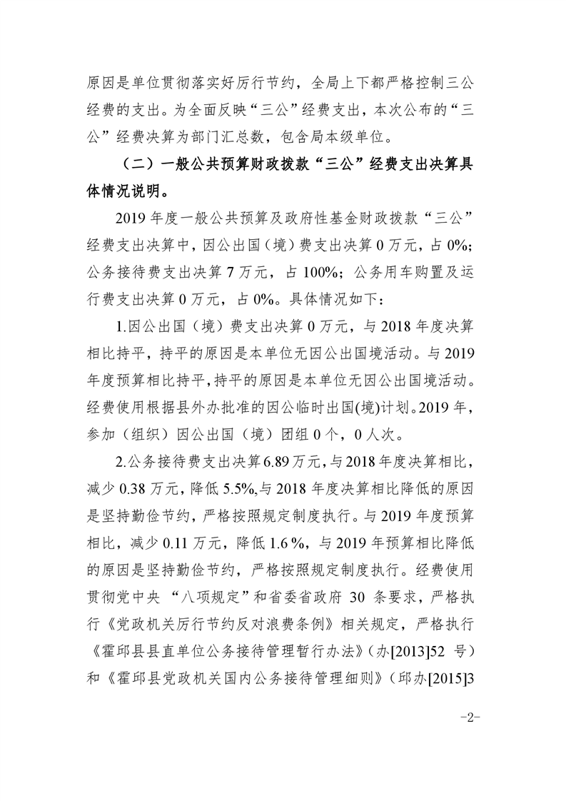 霍邱县经信局2019年度一般公共预算财政拨款“三公”经费支出决算情况说明