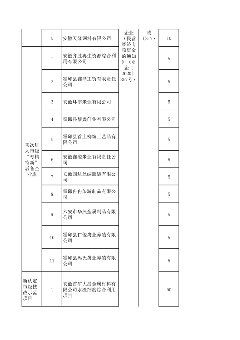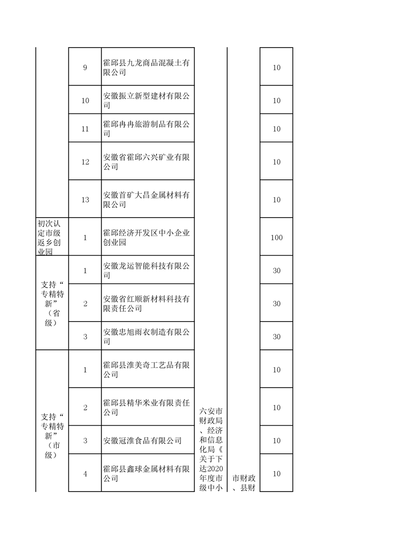 2020年度市级中小企业(民营经济)专项资金分配结果
