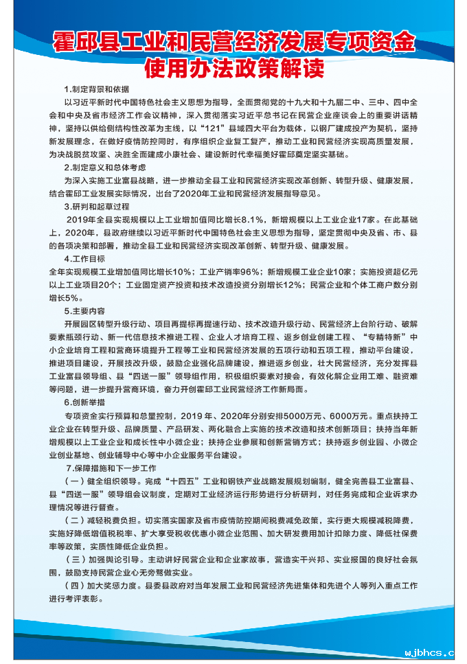 霍邱县工业和民营经济发展专项资金使用办法政策图片解读