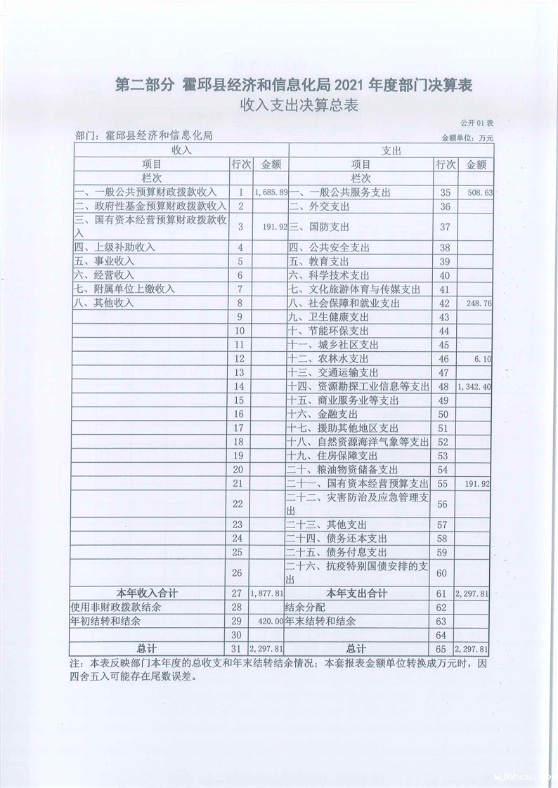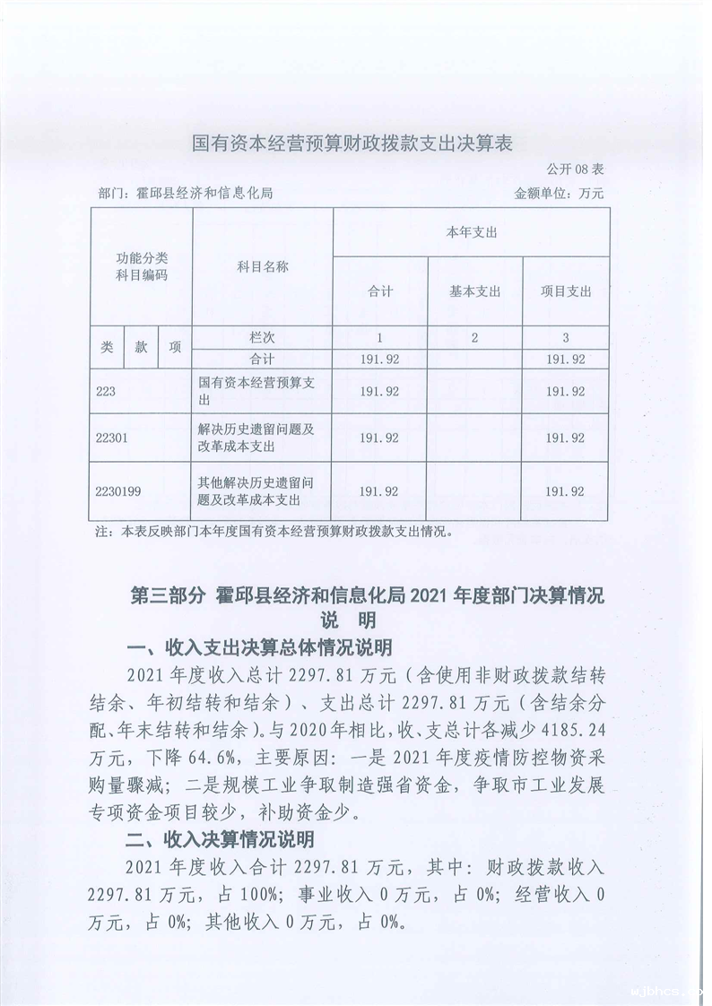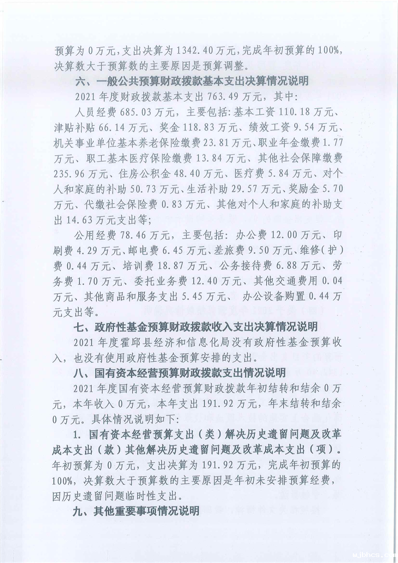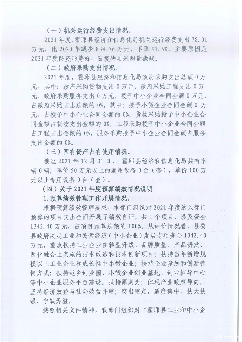 霍邱县经济和信息化局2021年度一般公共预算财政拨款“三公”经费支出决算