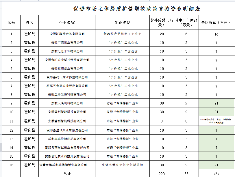 关于下达促进市场主体提质扩量增效政策支持资金分配结果