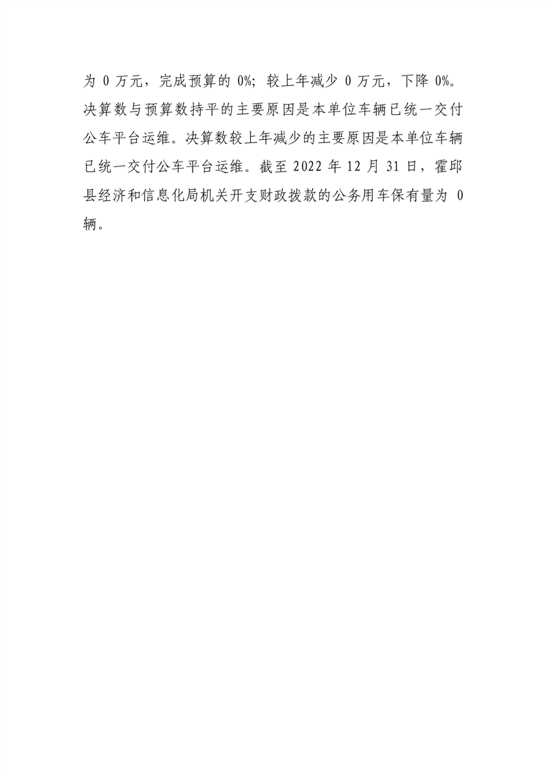 霍邱县经济和信息化局2022年度一般公共预算财政拨款“三公”经费支出决算情况