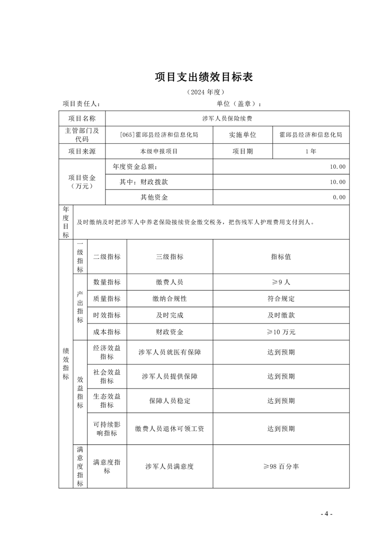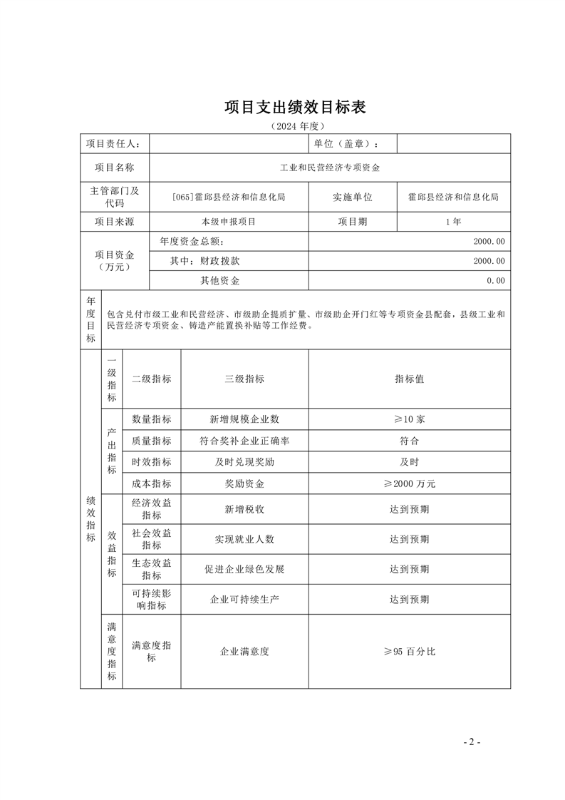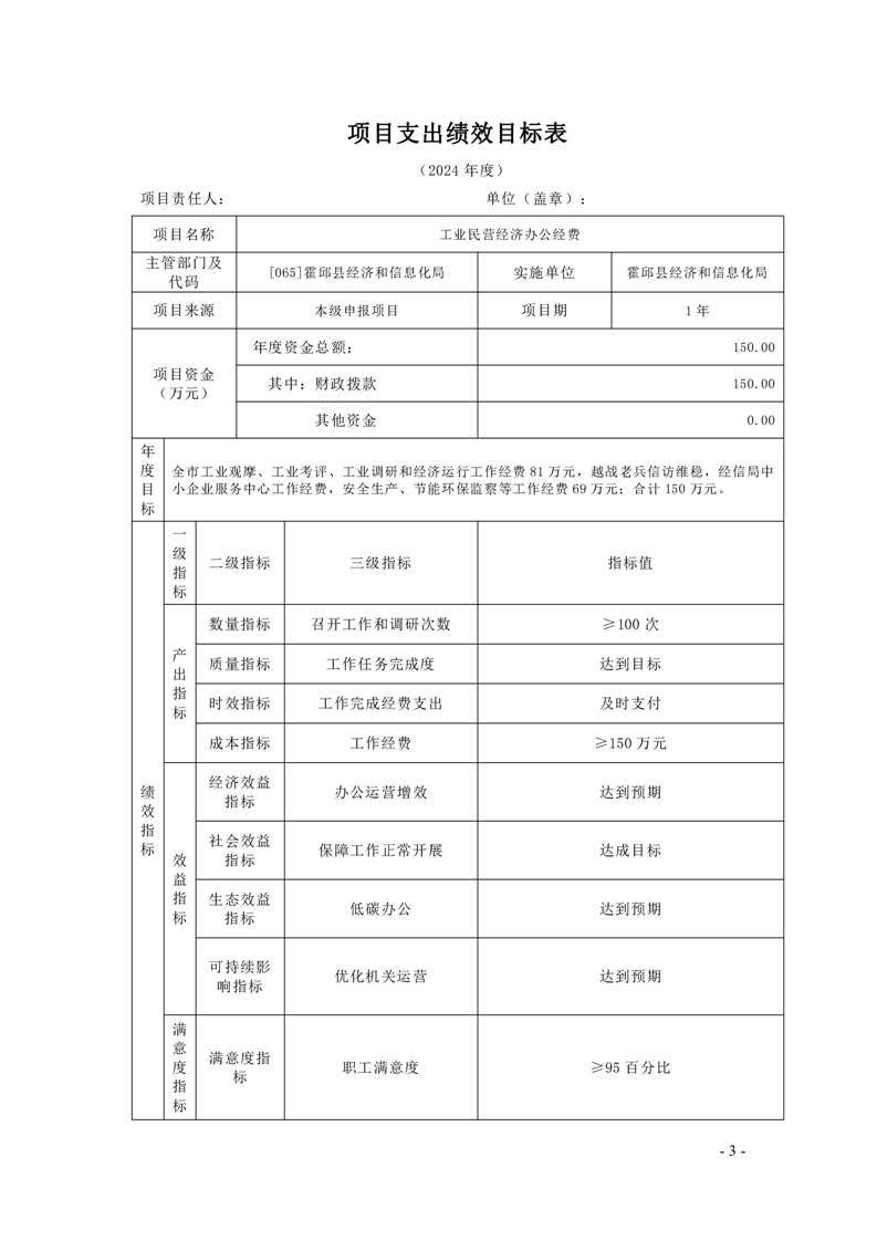 霍邱县经济和信息化局2024年度项目支出绩效目标