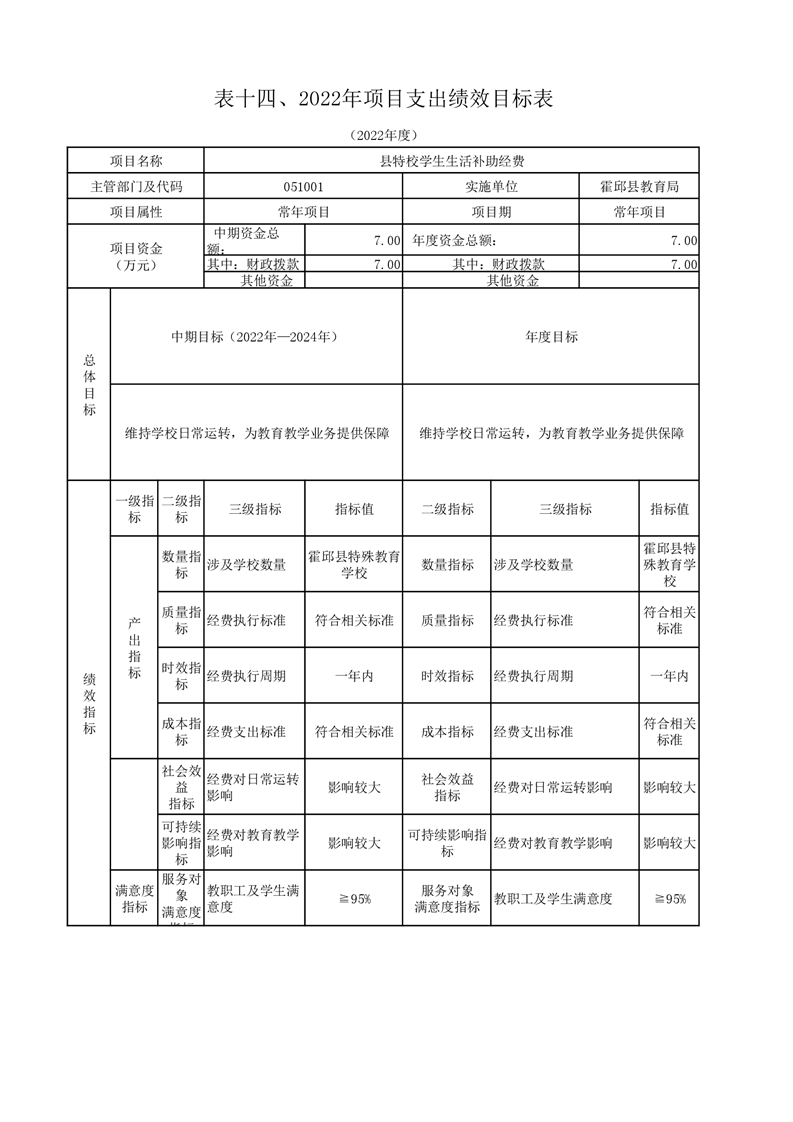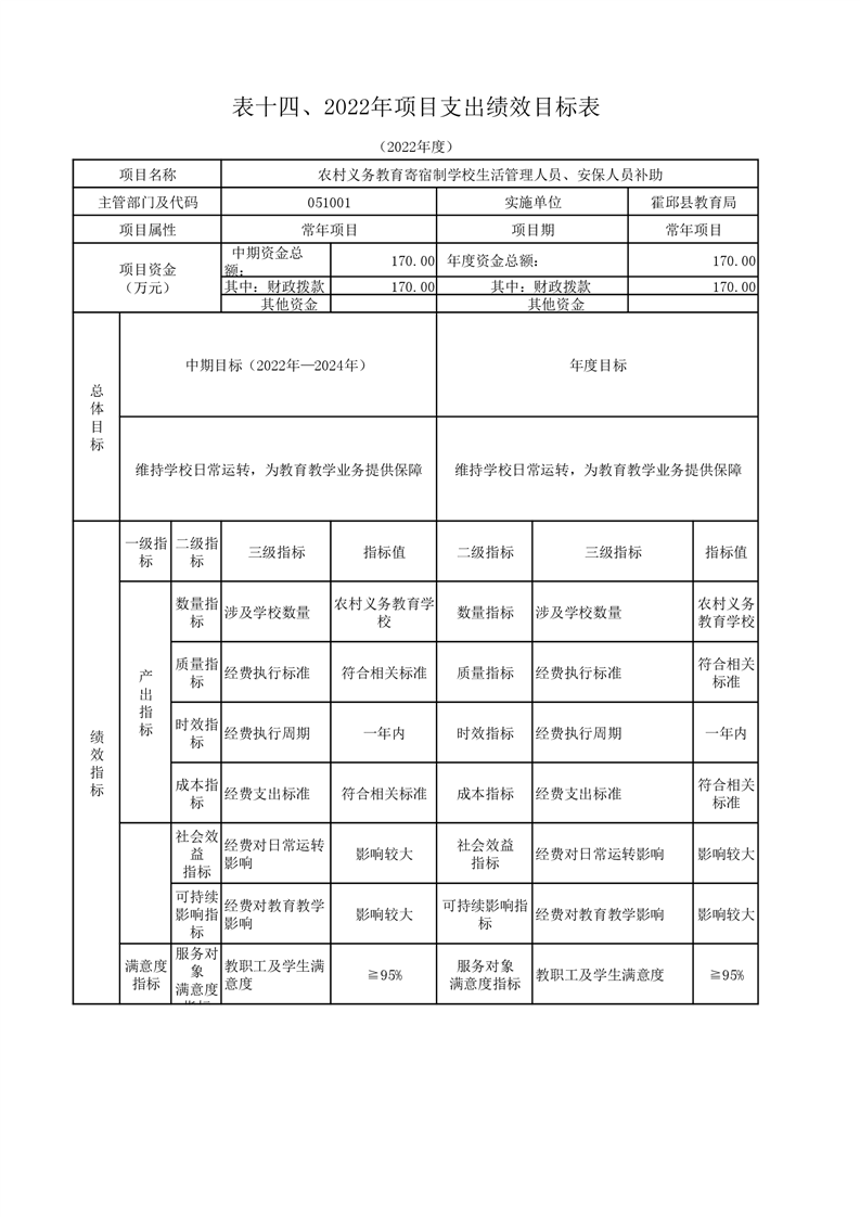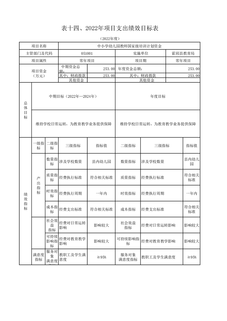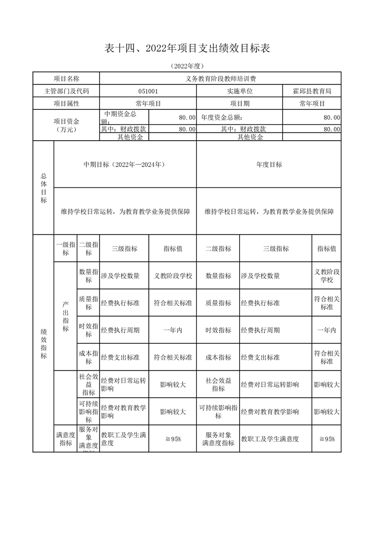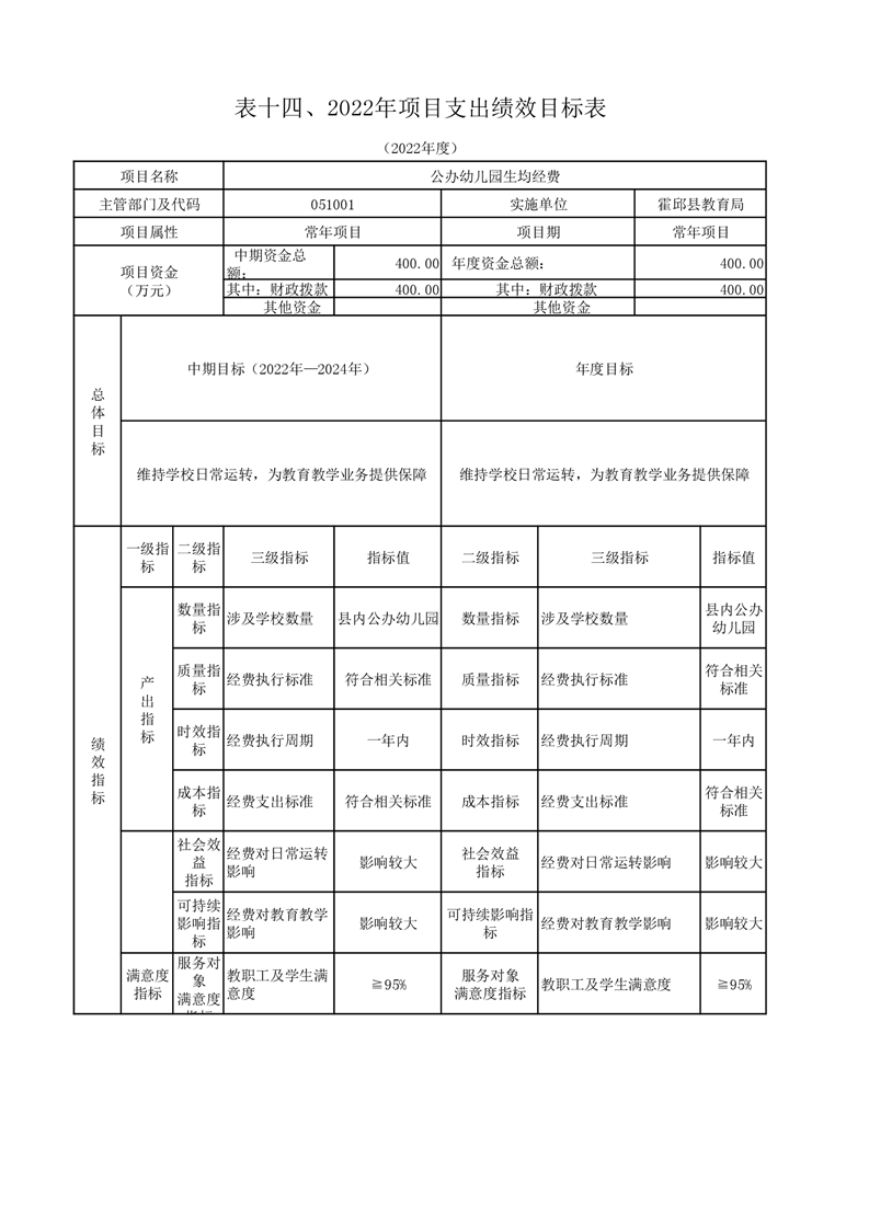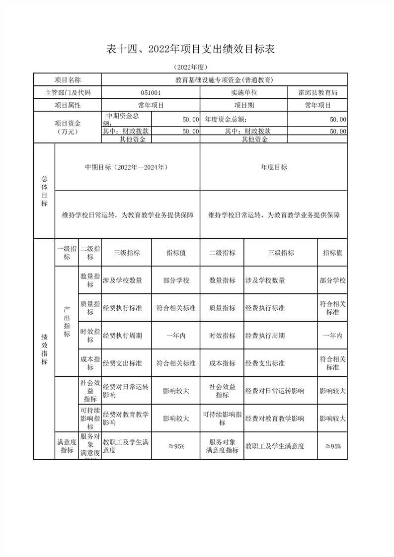 霍邱县教育局2022年项目支出绩效目标表.xls