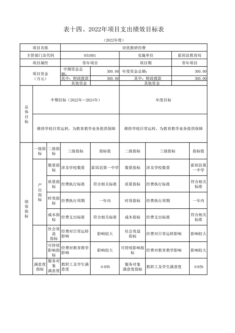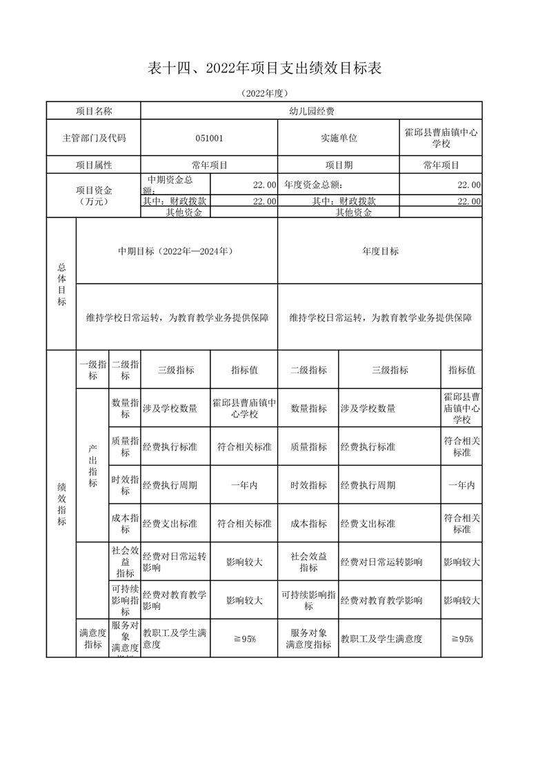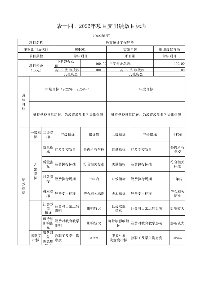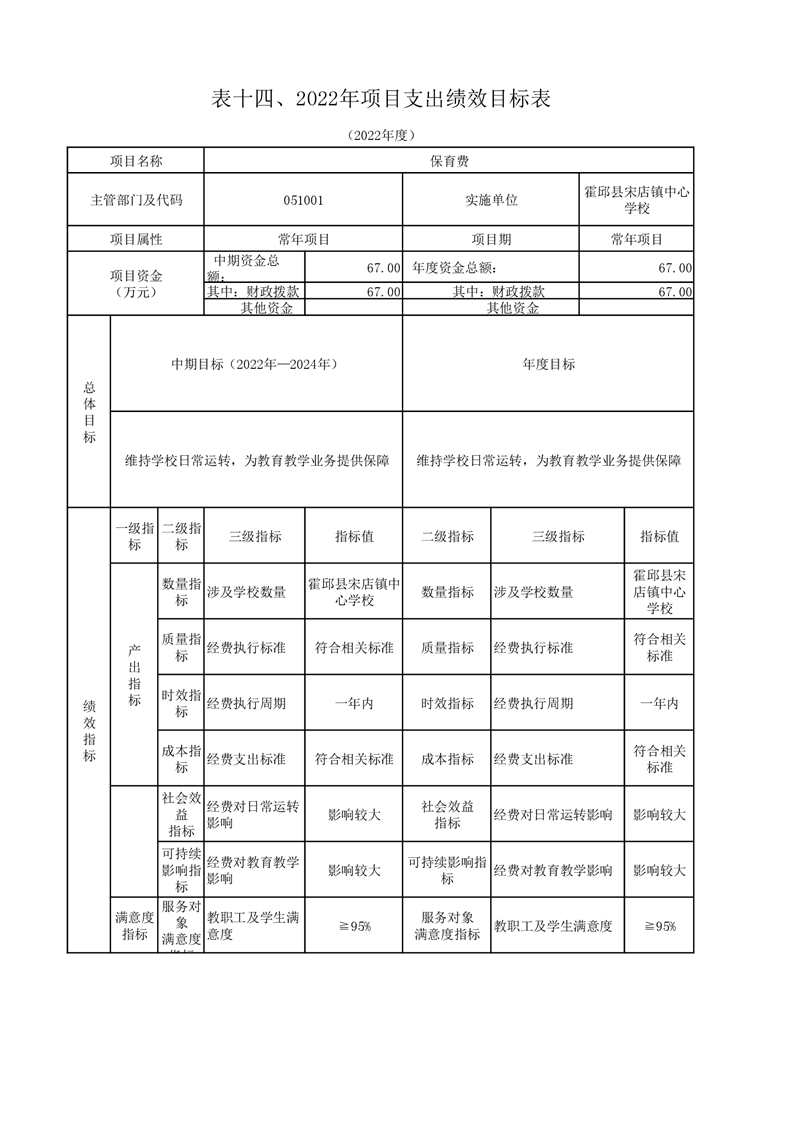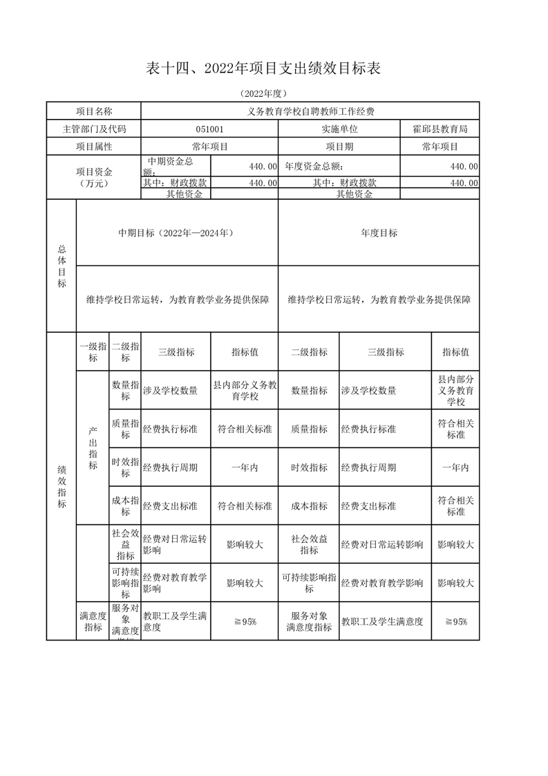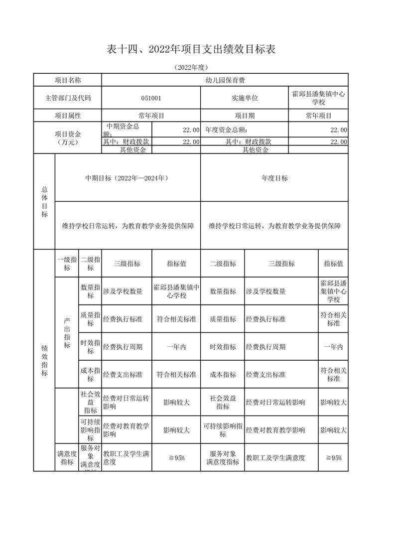霍邱县教育系统2022年项目支出绩效目标表(各校)