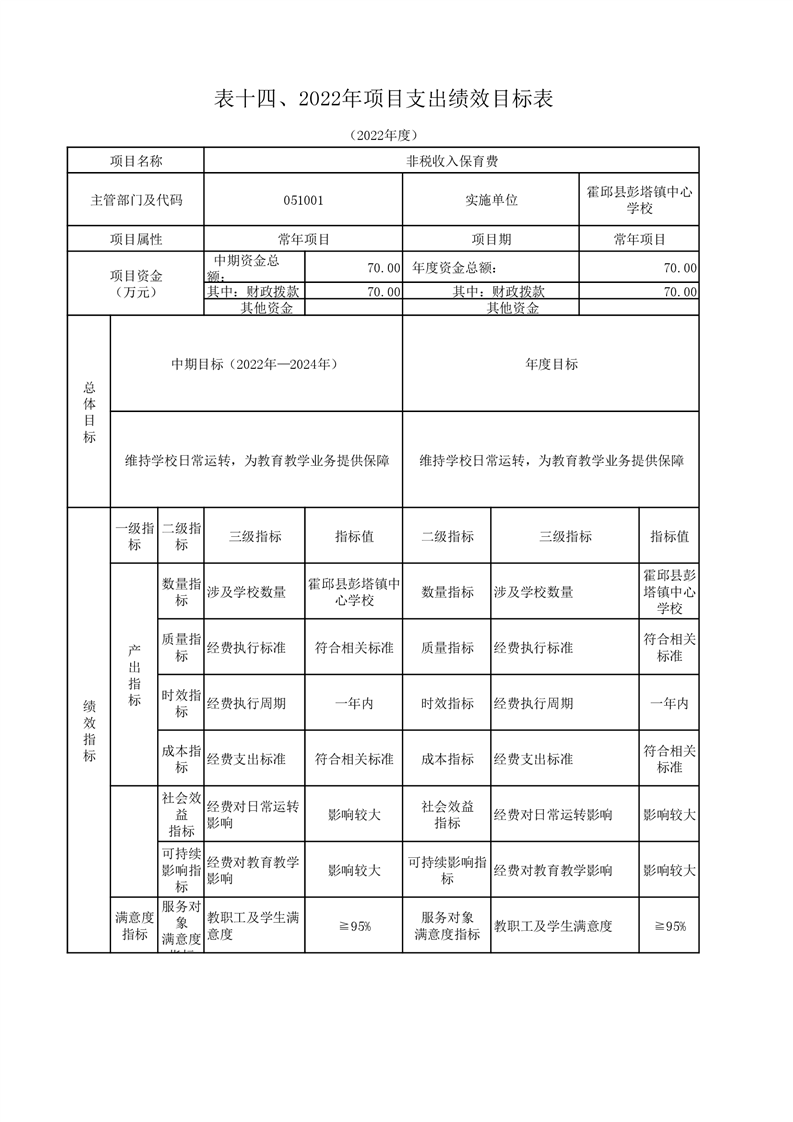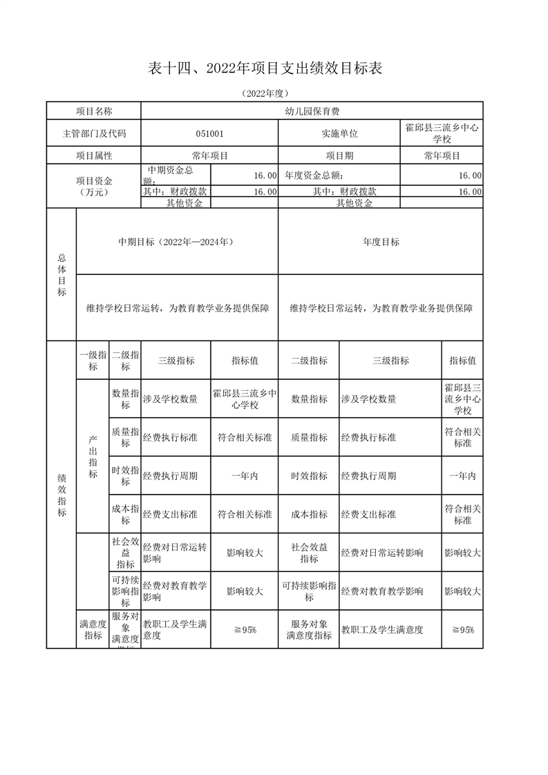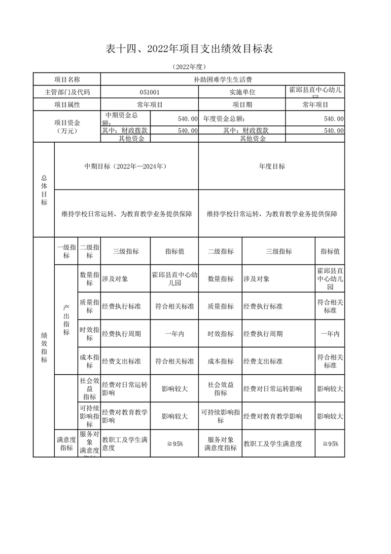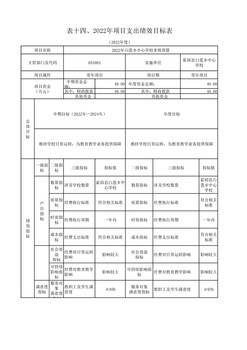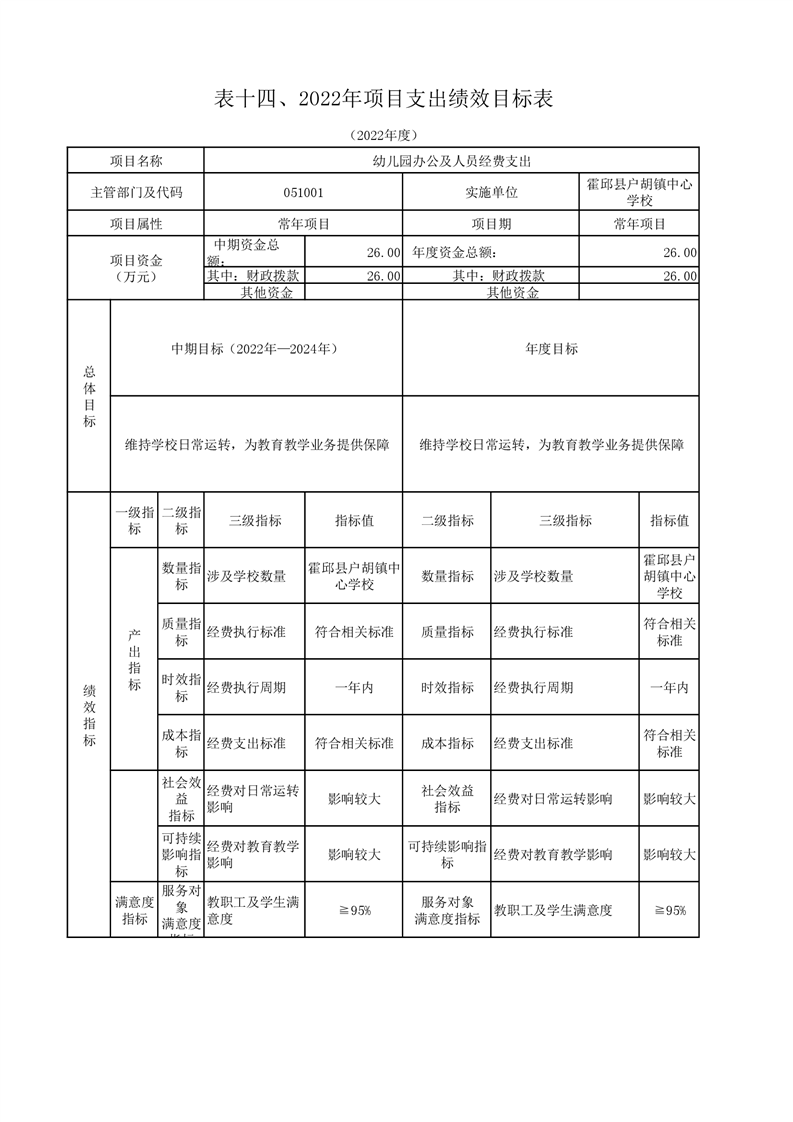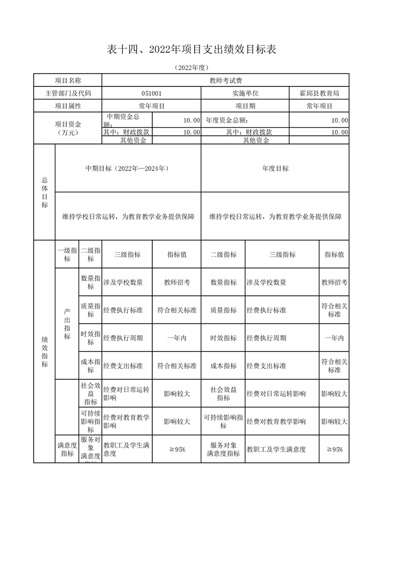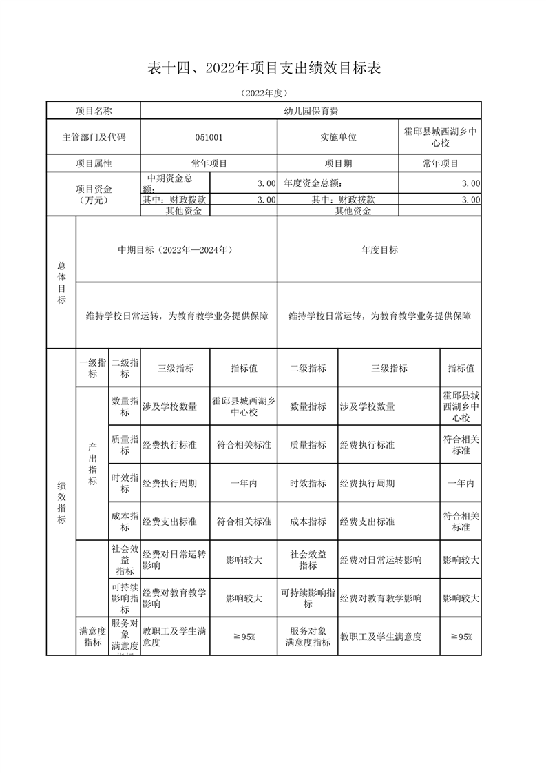 霍邱县教育系统2022年项目支出绩效目标表(各校)