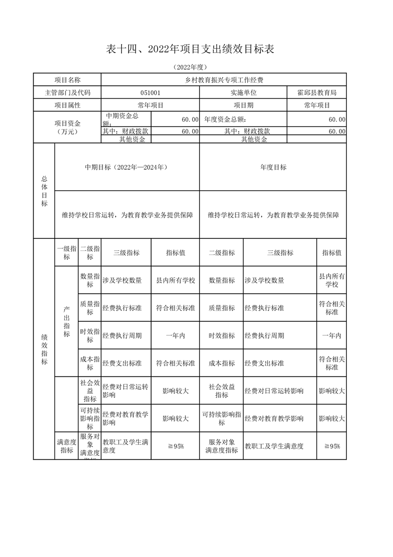 霍邱县教育局2022年项目支出绩效目标表(各校).xls