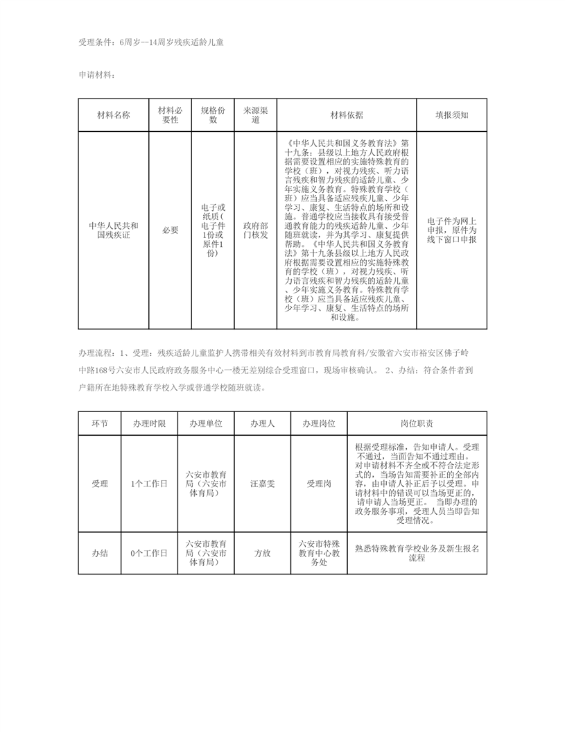 【办理流程】残疾适龄儿童、少年义务教育入学服务办理条件及流程