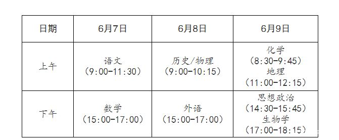 注:统一高考科目的考试安排以教育部公布内容为准,如有调整,我省选考科目的考试安排将相应调整。