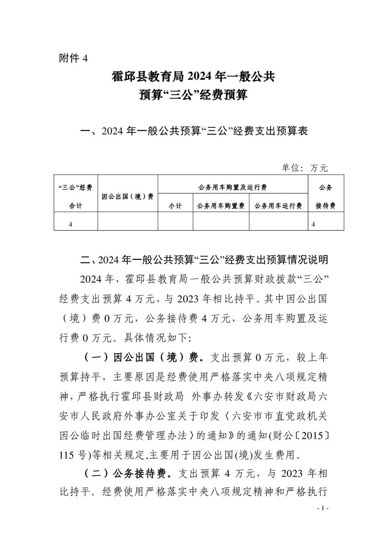 霍邱县教育局单位2024年度一般公共预算财政拨款“三公”经费支出预算(部门)