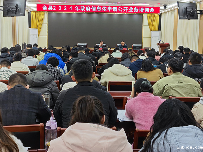 2024年11月28日,全县2024年度政府信息依申请公开业务培训会在县政府全体会议室召开,县电子政务中心主任王传刚出席会议并讲话。会议由县电子政务中心副主任汪力力主持,教育局办公室主任及政务公开业务经办人员参加会议。