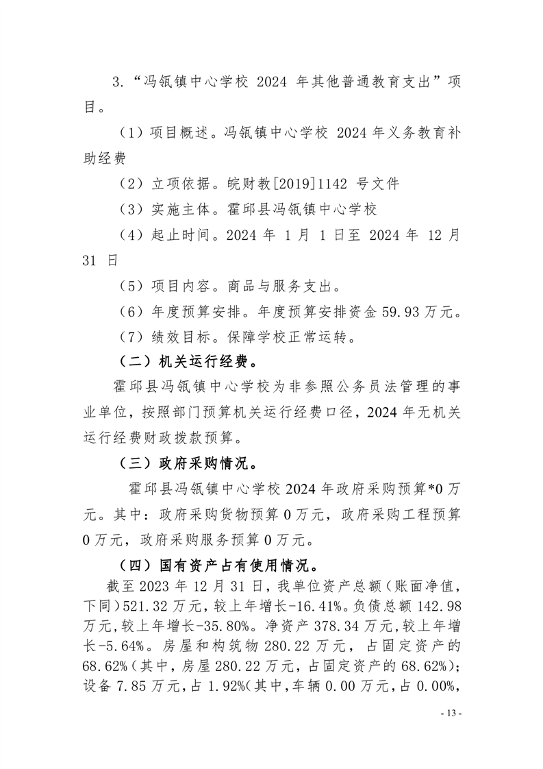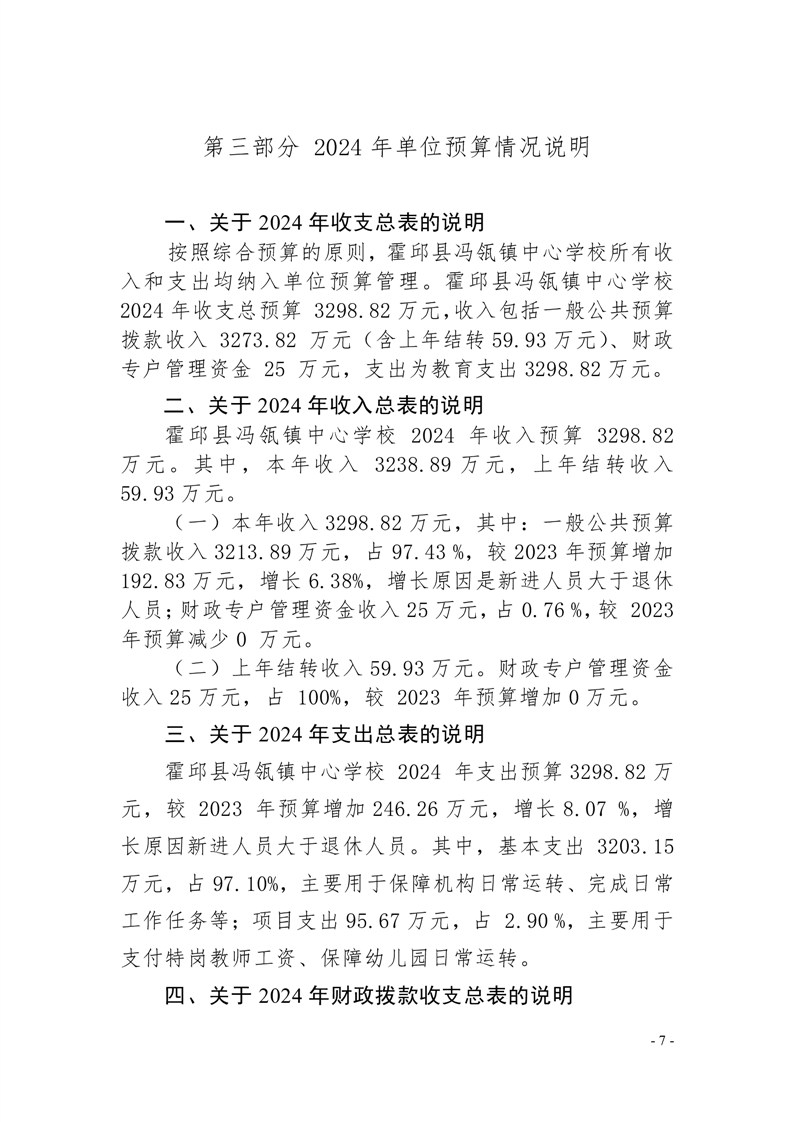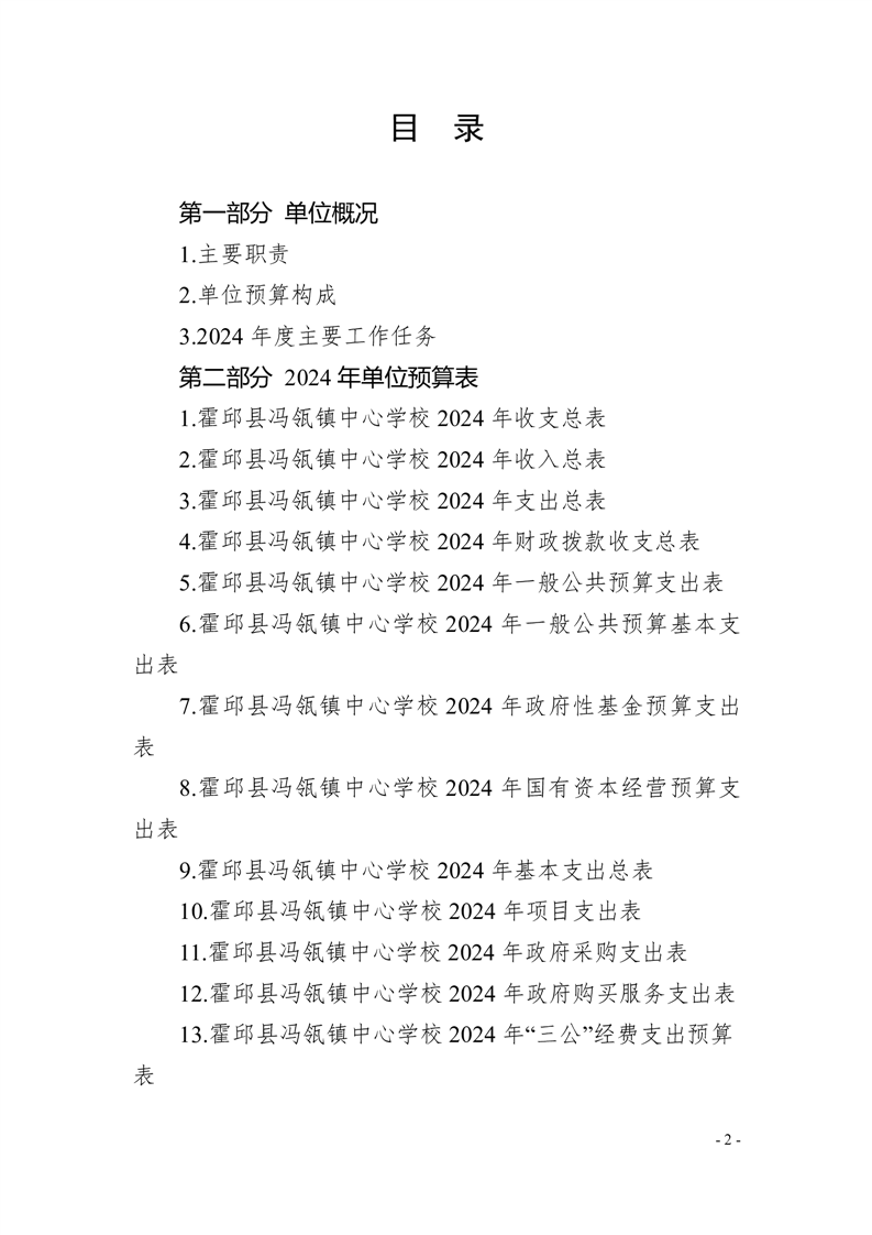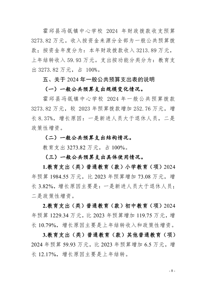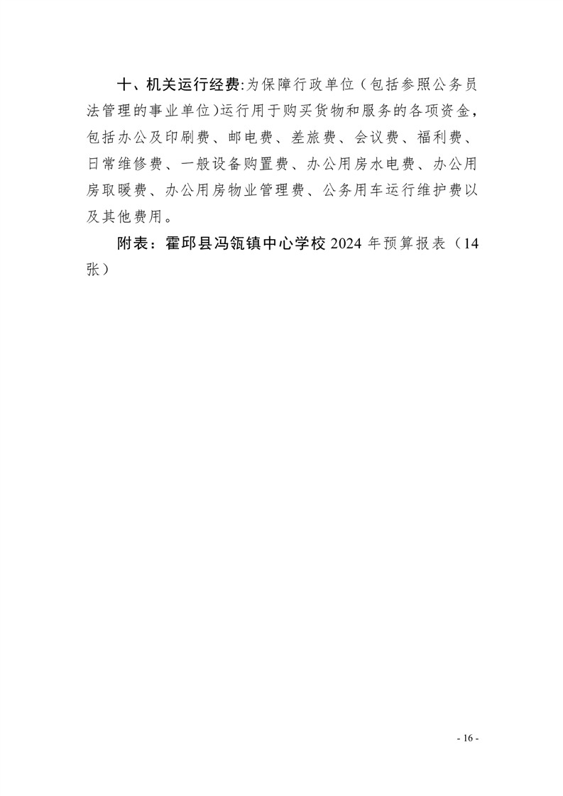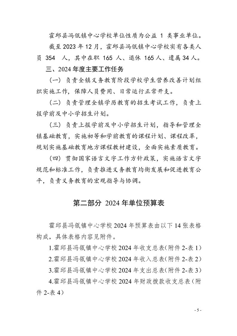 霍邱县冯瓴镇中心学校2024年部门单位预算公开