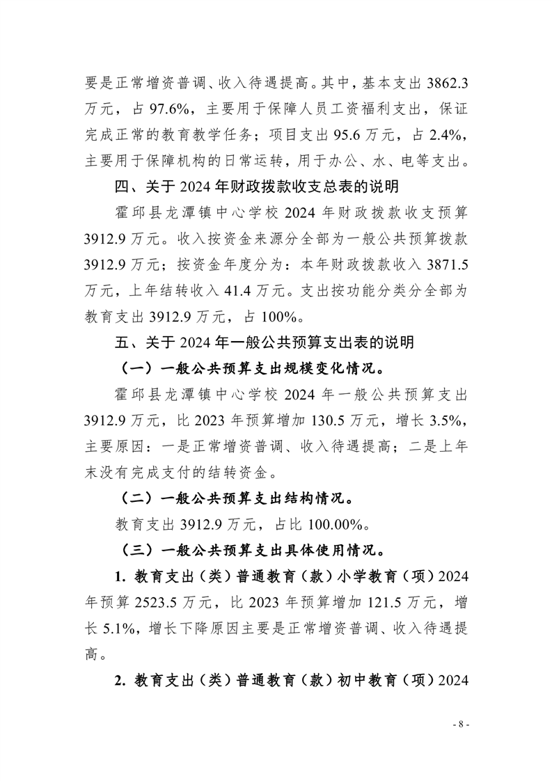 霍邱县龙潭镇中心学校2024年单位预算公开