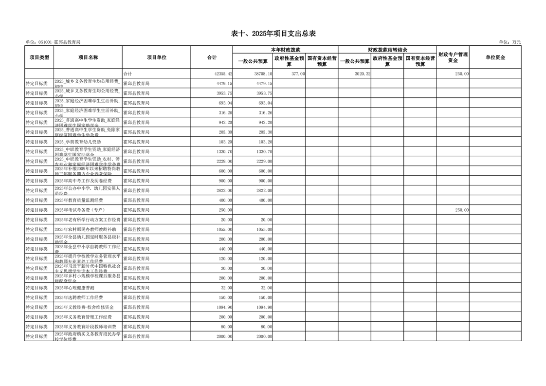 霍邱县教育局2025年部门预算公开