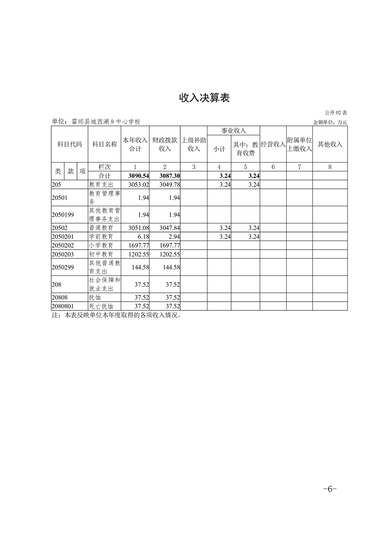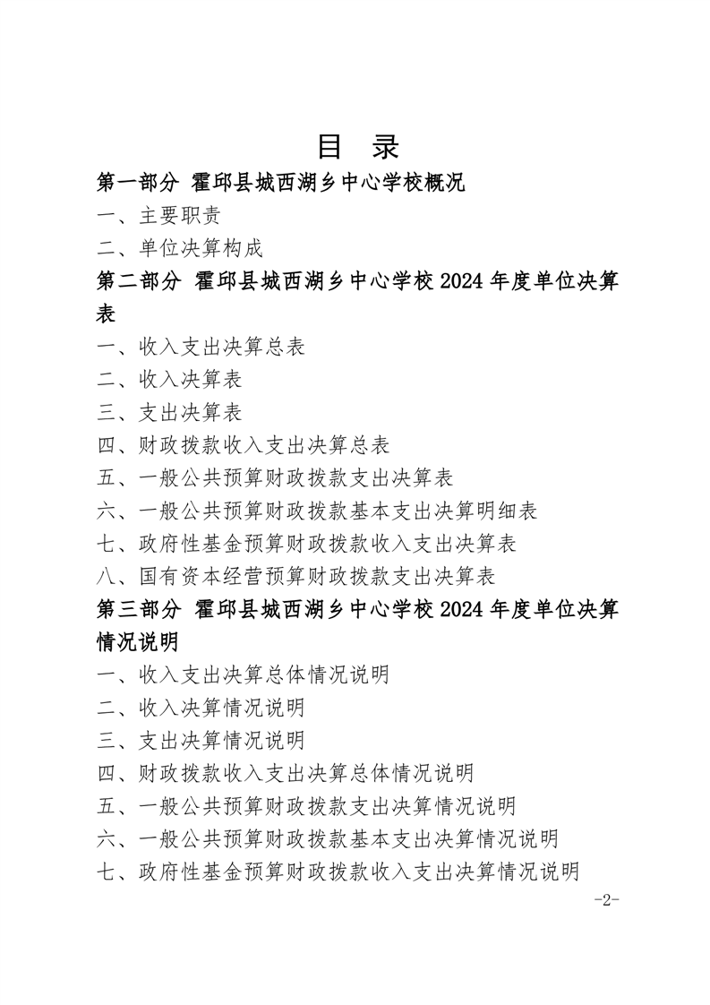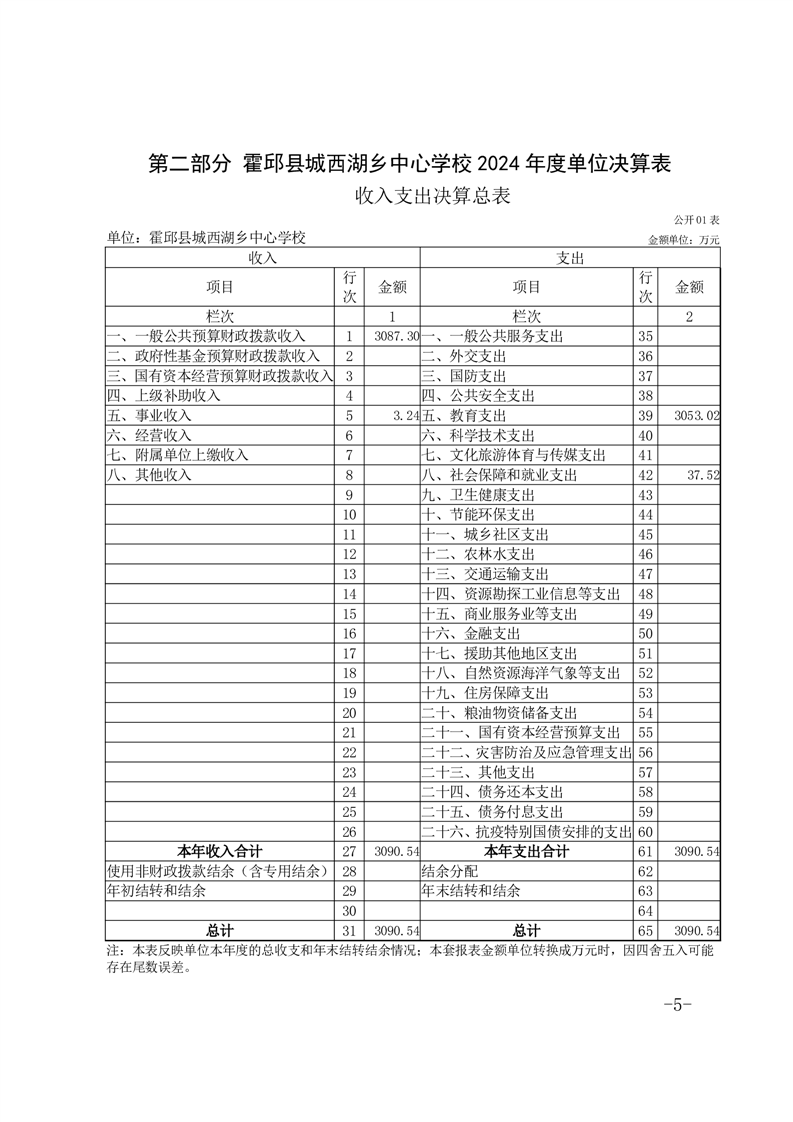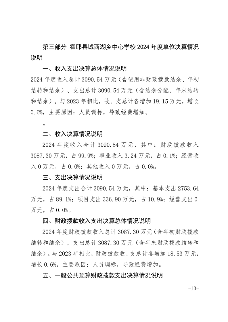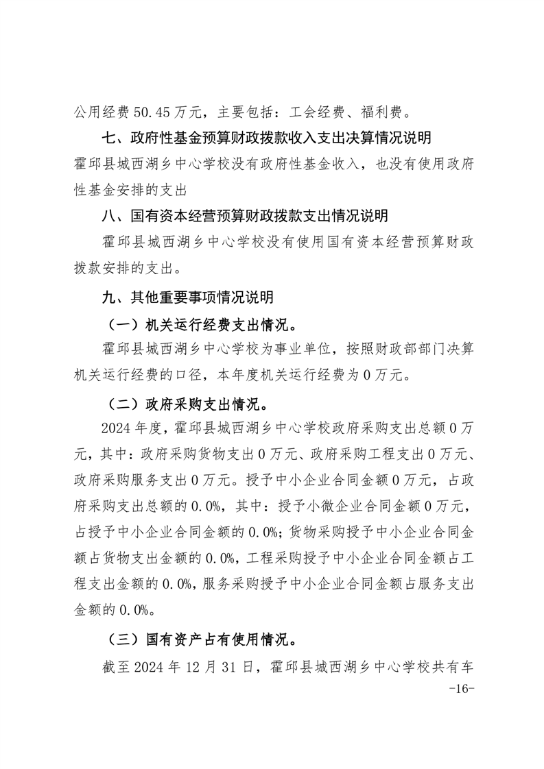 霍邱县城西湖乡中心学校 2024 年度单位决算