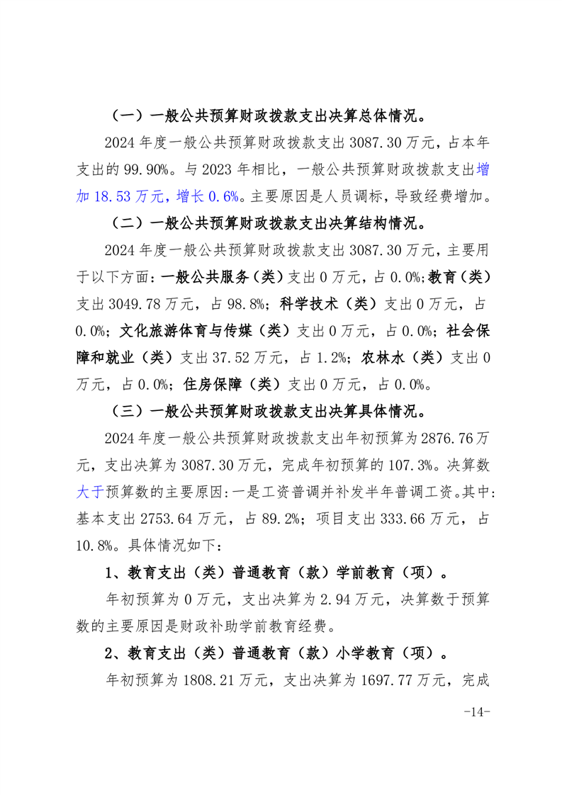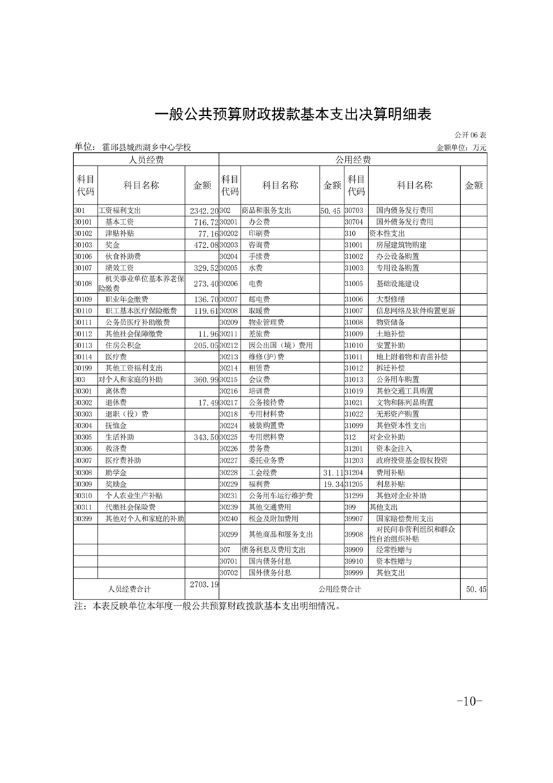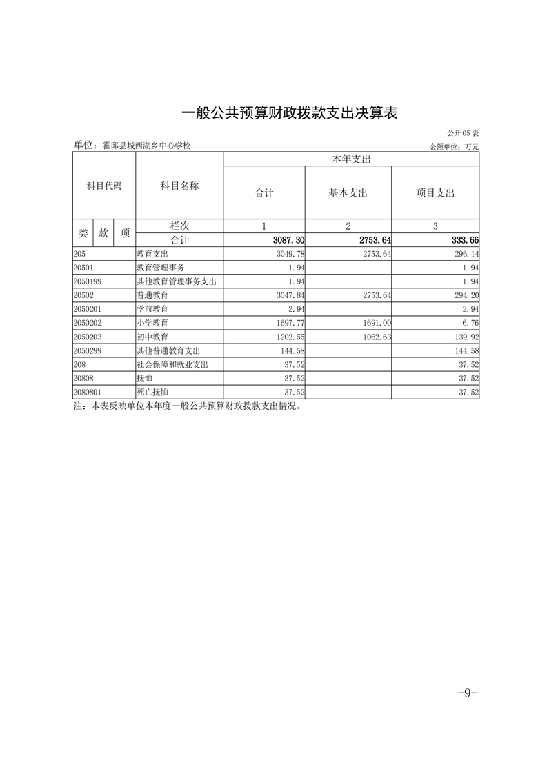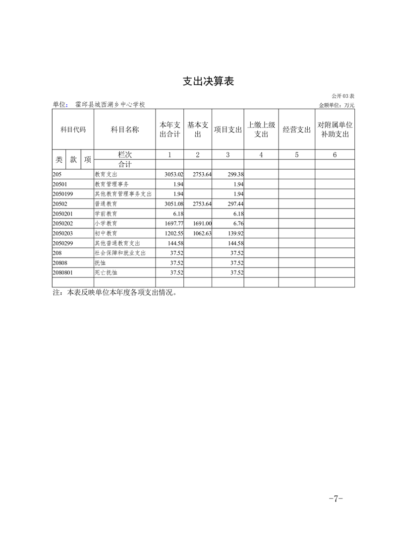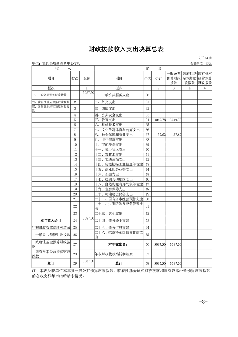 霍邱县城西湖乡中心学校 2024 年度单位决算